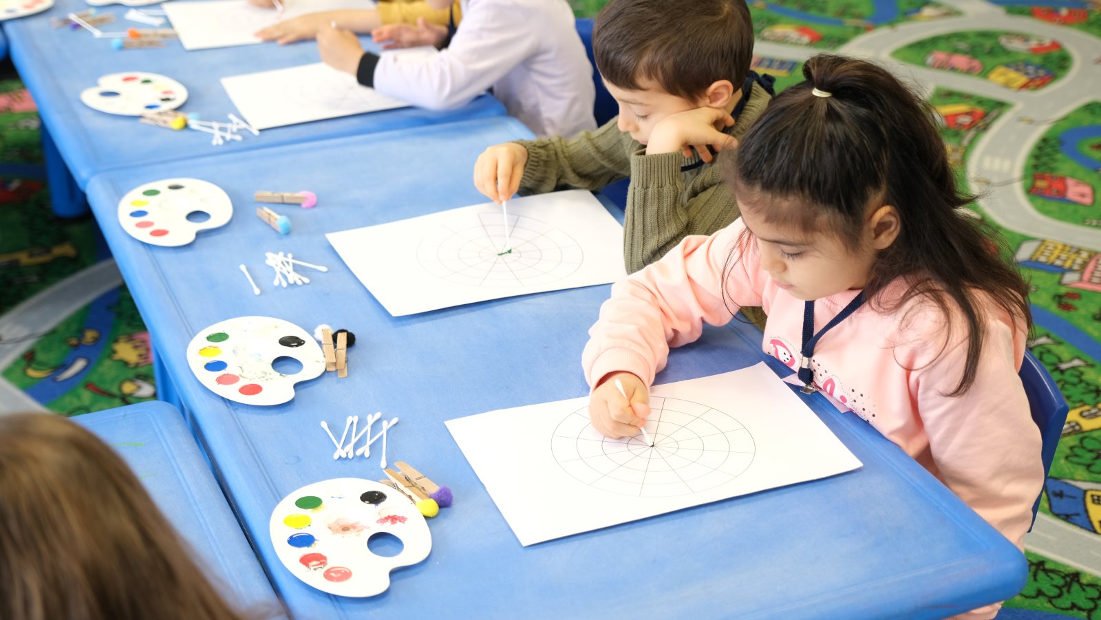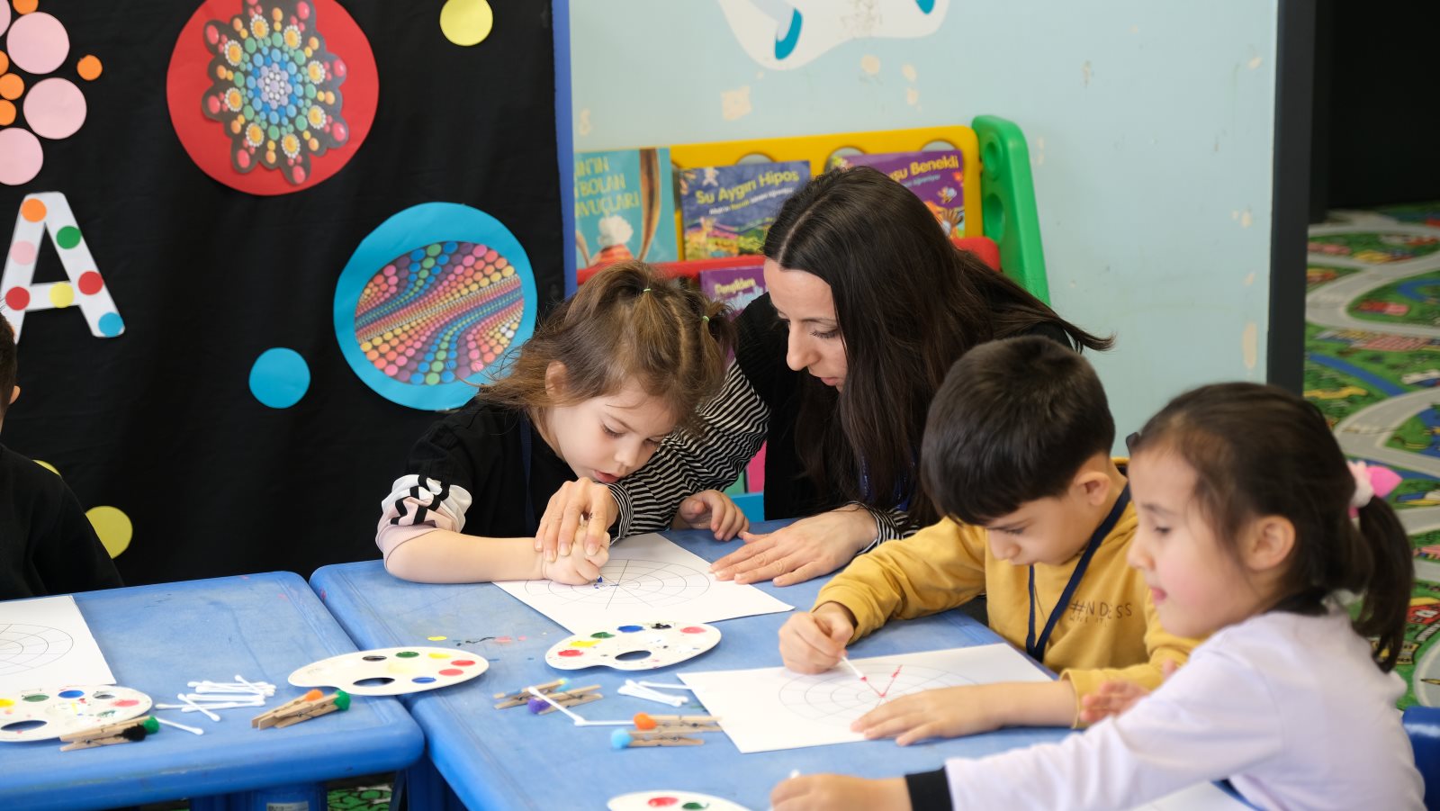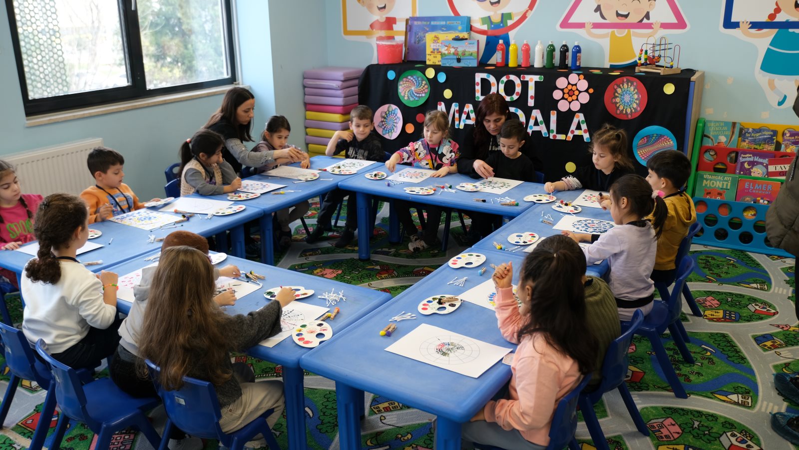 Bursa’da Ana Kucağı Okul Öncesi Eğitim Merkezleri başta olmak üzere eğitime değer katan yatırımları bir bir hayata geçiren Büyükşehir Belediyesi, çocukları yarıyıl tatilinde de yalnız bırakmadı. 4-6 yaş aralığındaki çocuklar için yarıyıl tatilinde Ana Kucağı Çocuk Eğitim Merkezlerinde özel etkinlikler düzenlendi. Çocukların yaratıcılıklarını geliştirmek, öğrenme süreçlerini desteklemek ve sosyal becerilerini artırmak amacıyla düzenlenen atölye çalışmaları, miniklere eğlenceli bir öğrenme deneyimi yaşattı. Hafta boyunca Ana Kucağı Çocuk Eğitim Merkezleri'nde gerçekleştirilen etkinlikler arasında Vatan Ana Kucağı'nda Renkli Kuklalar Çalışması, Alacahırka Ana Kucağı'nda Kar Deneyi ve Kar Küresi yapımı, Hocataşkın Ana Kucağı'nda Tohum Topu Yapımı, Mudanya Ana Kucağı'nda Dot Mandala, Emek Ana Kucağı'nda Adımın Baş Harfi Tasarım Çalışması ve Muradiye El Yazmaları Müzesi'nde Kudüs’ün Renkleri atölye çalışmaları büyük ilgi gördü.