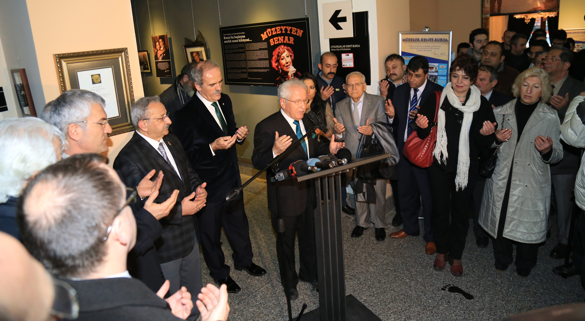 Usta sanatçı Müzeyyen Senar’ın dualarla anıldığı serginin açılışını, Bursa Büyükşehir Belediye Başkanı Recep Altepe ve Bursaspor Kulübü Başkanı Recep Bölükbaşı ile Türk Sanat Müziği’nin usta sanatçıları Erdinç Çelikkol ile Kutlu Payaslı yaptı. Büyükşehir Belediyesi bürokratları ile Büyükşehir Belediyesi Orkestrası sanatçılarının da katıldığı serginin açılışına sanatseverler de yoğun ilgi gösterdi.