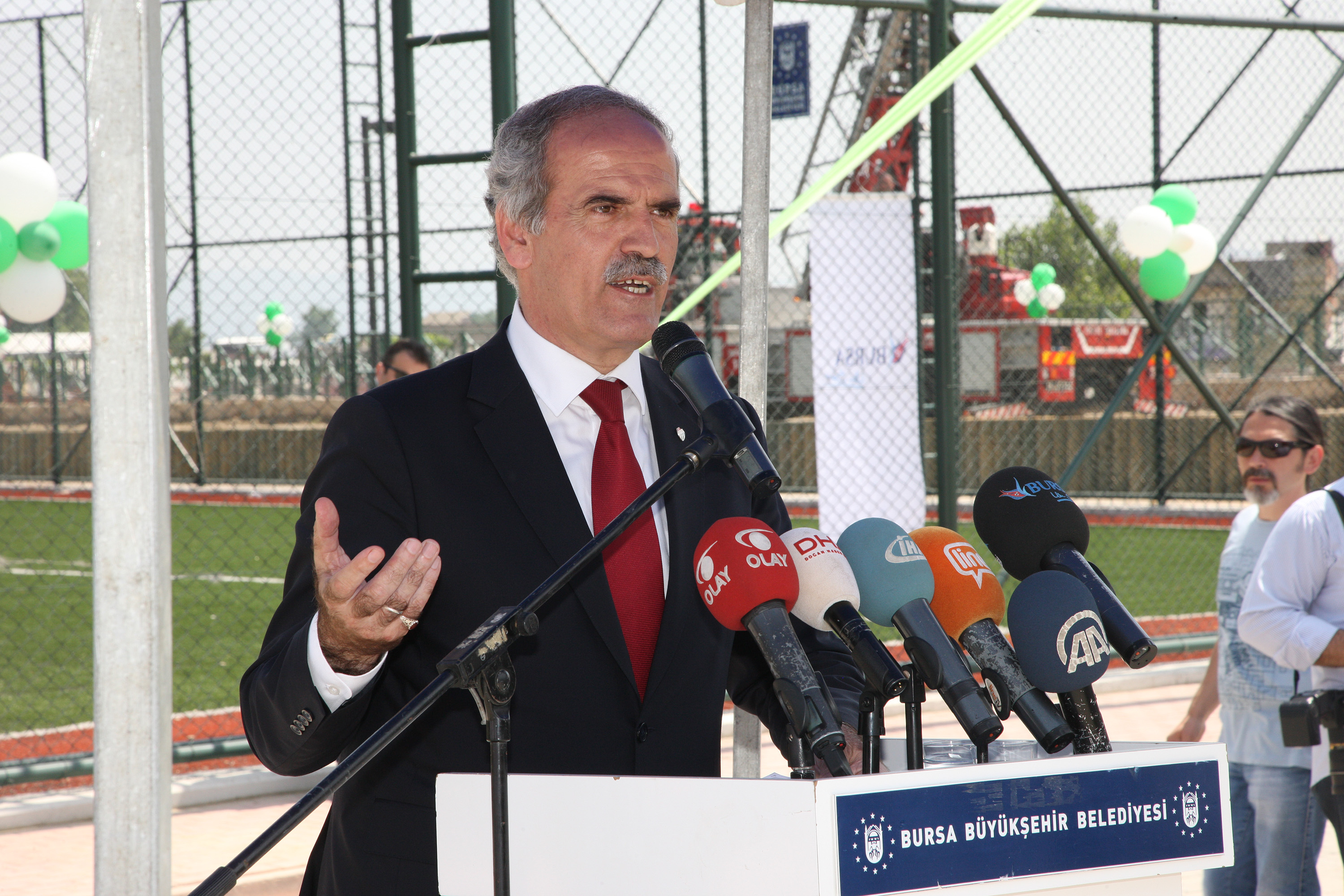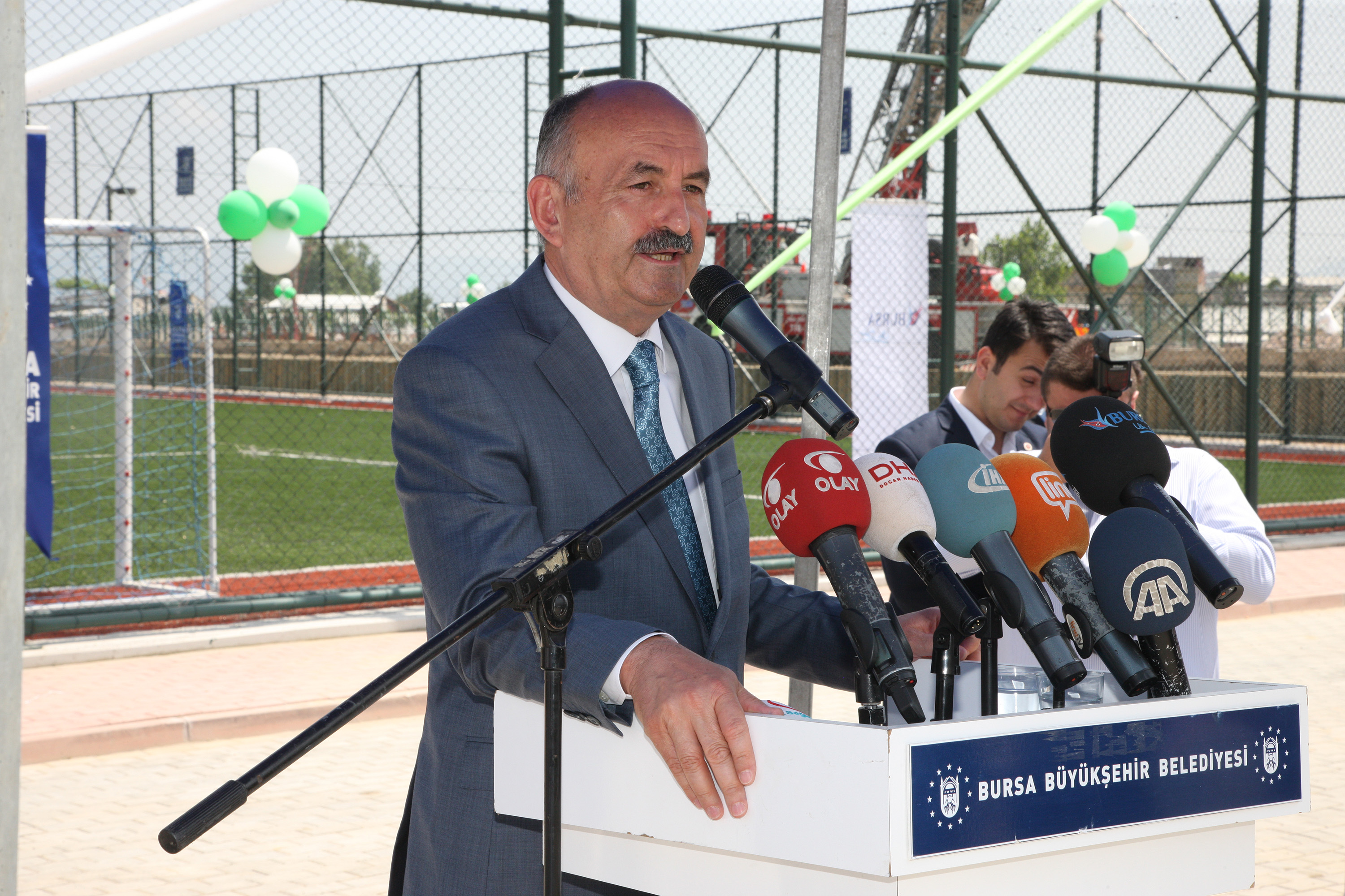 Sağlık Bakanı Mehmet Müezzinoğlu da Türkiye genelinde her 1 yaş gurubunda 1 milyon 250 bin çocuk olduğunu belirterek, Bursa’da da her yıl 45 bin çocuğun dünyaya geldiğini ve her 1 yaş grubunda 45 bin çocuk olduğunu hatırlattı. Türkiye’nin geleceği olan çocukların ruhen, fiziken ve sosyal olarak sağlıklı gelişmeleri için spor alanlarına, parklara ihtiyaç olduğunu dile getiren Bakan Müezzinoğlu, “Özellikle Büyükşehir Belediyemizi, kentin geleceği adına yaptığı spor tesisleri, yeşil alanlar, bilgi evleri gibi yatırımları nedeniyle kutluyorum. Çocuklarımızı evle okul arasına mahkum etmek doğru değil. Onların sağlıklı gelişmeleri için üçüncü doğru adreslere ihtiyaç var. Birinci doğru adres çocuğun evi, ailesi. İkinci doğru adres eğitim aldığı kreş, okul, kütüphane. Üçüncü doğru adres ise mahallesi, sokağı, spor alanları, parklar ve kültürel etkinlikler olmalı. Çocuklarımızı bu doğru adreslerde ne kadar meşgul edersek, uyuşturucu gibi kötü alışkanlıklardan koruruz. Eğer biz onlara bu ortamları sağlayamazsak, yanlış ve kötü adreslere yönelebilirler. Bursa’da 0-25 yaş arasında 1 milyon nüfus var. Biz bu grubu geleceğe ne kadar güçlü hazırlarsak, Türkiye’nin geleceği o kadar sağlıklı olacak” diye konuştu.