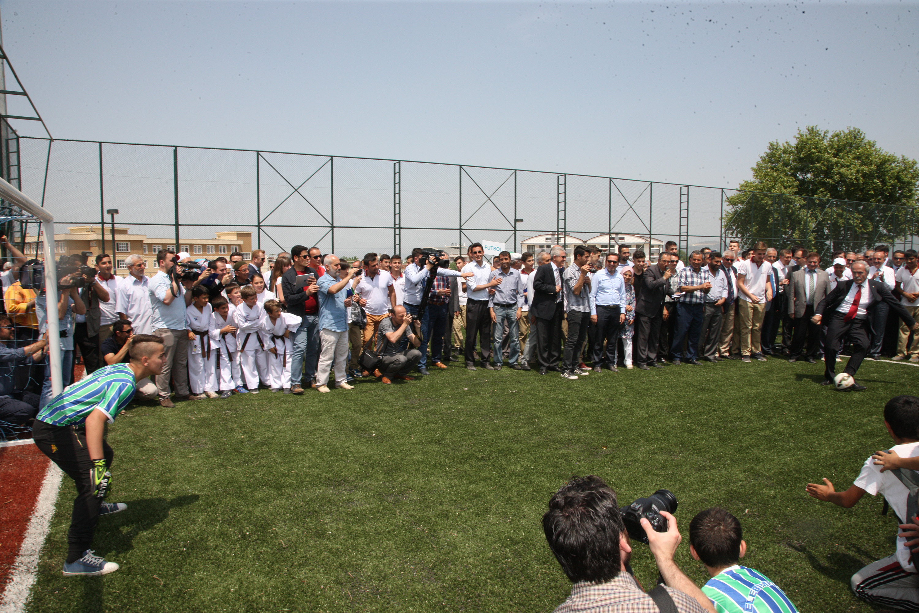 Konuşmaların ardından açılış kurdelesini kesen protokol üyeleri, daha sona penaltı atışı yaptı.