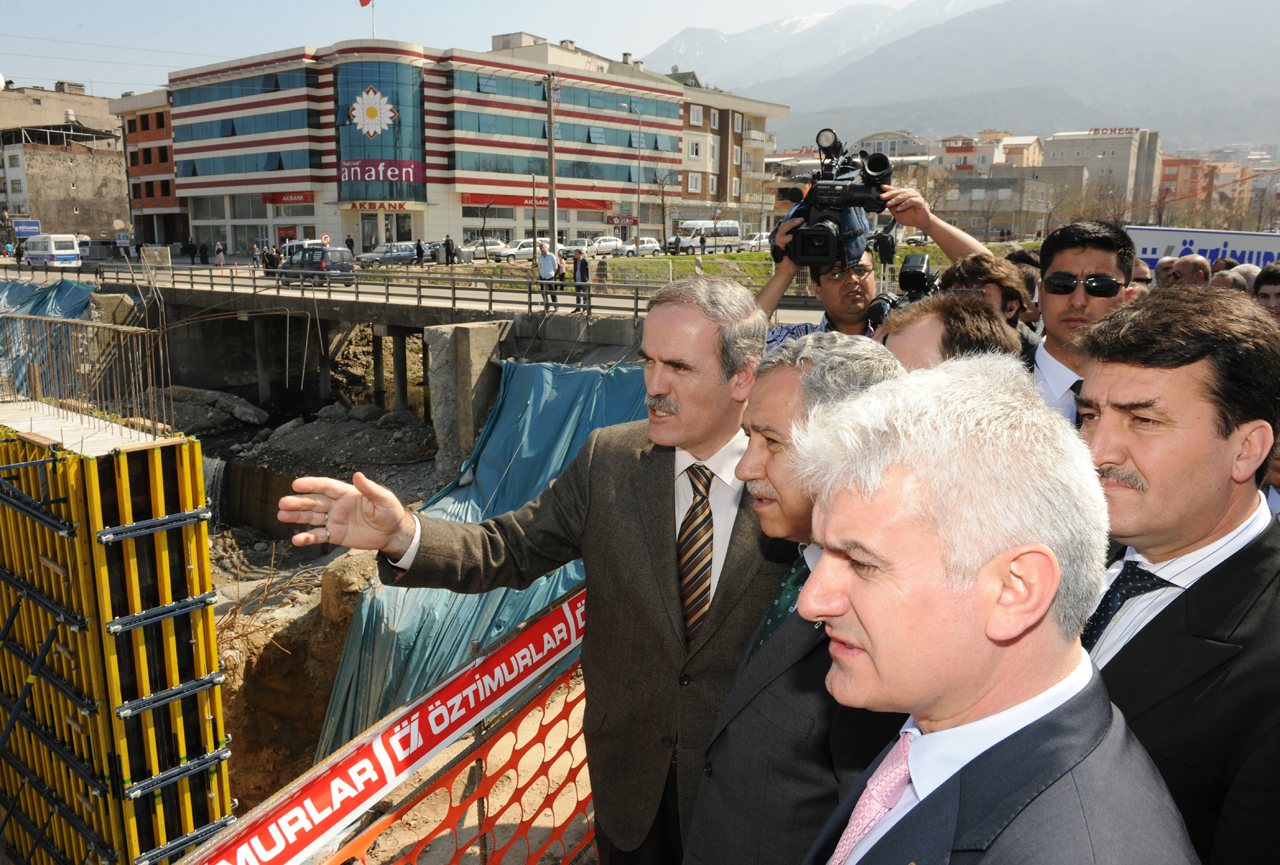 - BURSA BÜYÜKŞEHİR BELEDİYESİ TARAFINDAN YAPTIRILARAK ANKARA YOLU’NA NEFES ALDIRACAK KÖPRÜLERİN TEMELİ BAŞBAKAN YARDIMCISI BÜLENT ARINÇ’IN KATILIMIYLA ATILDI.