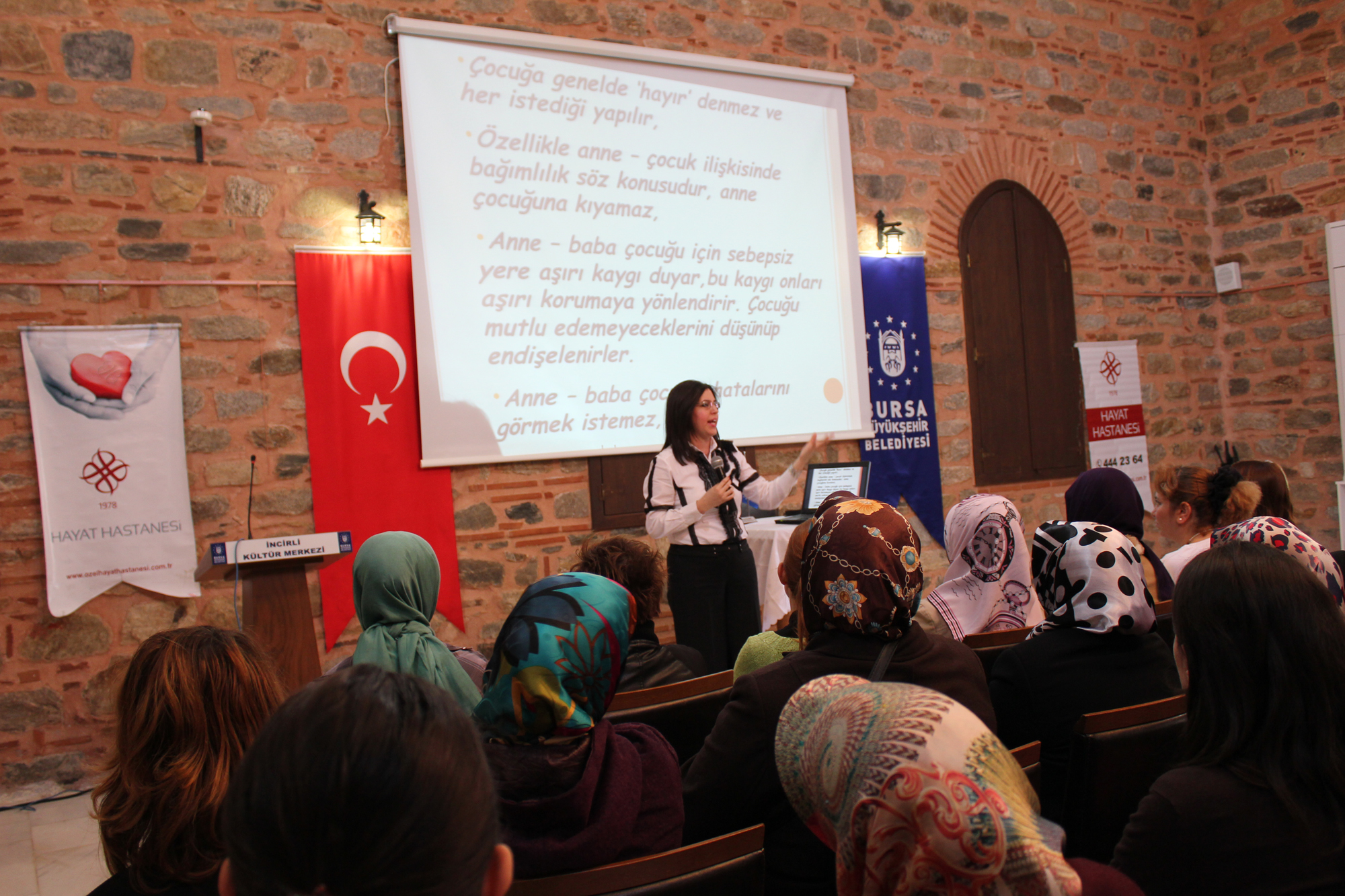 BURSA – Büyükşehir Belediyesi’nin Hayat Hastanesi işbirliğiyle düzenlendiği ‘Anne-Baba Okulu’ eğitimleri İncirli Kültür Merkezi’nde başladı.