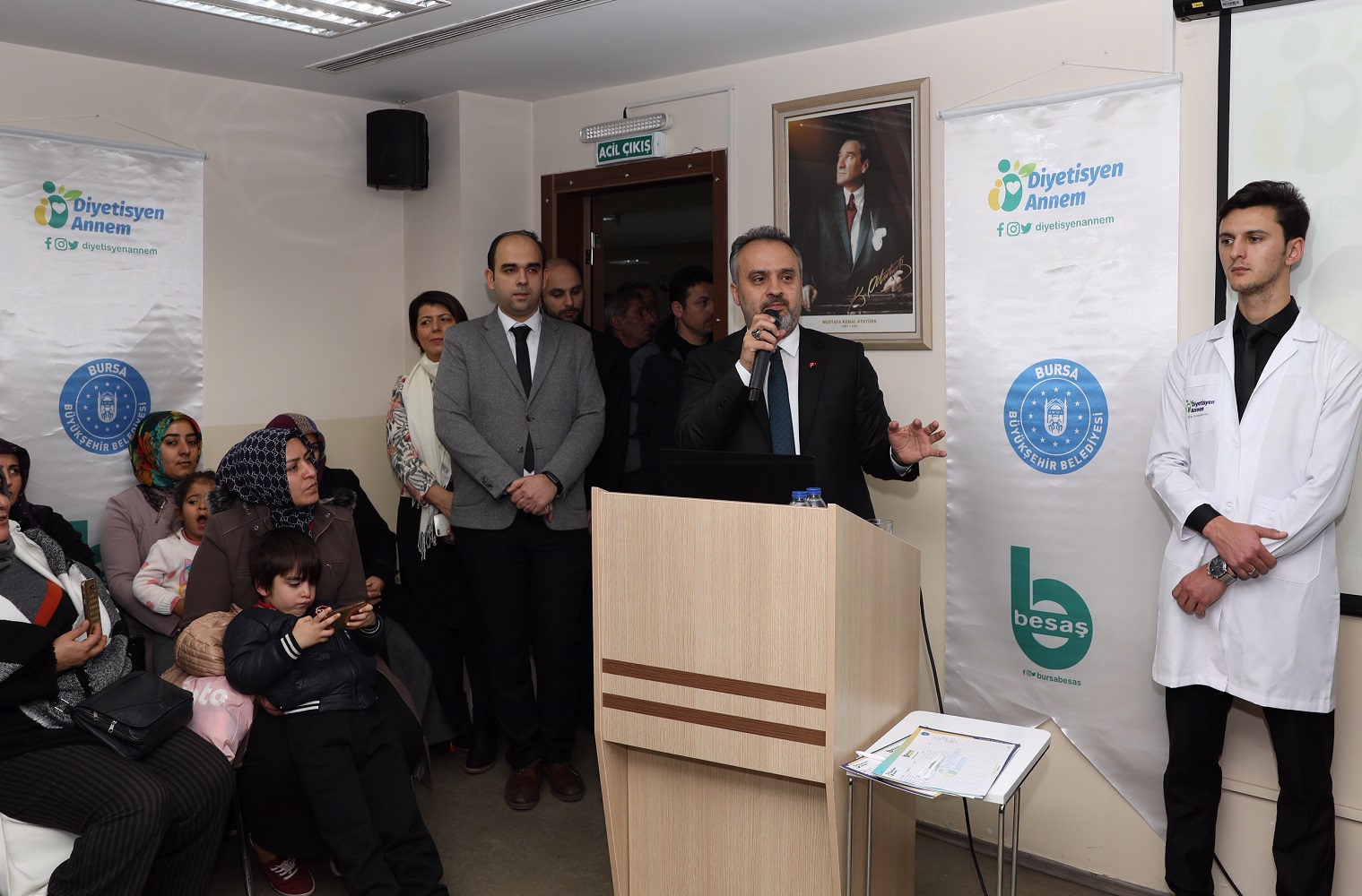 BURSA - Büyükşehir Belediye Başkanı Alinur Aktaş, Diyetisyen Anneler Eğitim Projesi kapsamında kurs alan anneleri ziyaret etti. 5 ay süreyle planlanan programın 2 aylık kısmının tamamlandığını ve verilen eğitimlerde annelerin ‘herhangi bir gıdanın vücuda zarar vermeden nasıl tüketileceğiyle ilgili’ bilgilendirildiğini söyleyen Başkan Aktaş, “Bugüne kadar yaklaşık 1000’e yakın anne, programımızdan faydalandı” dedi.