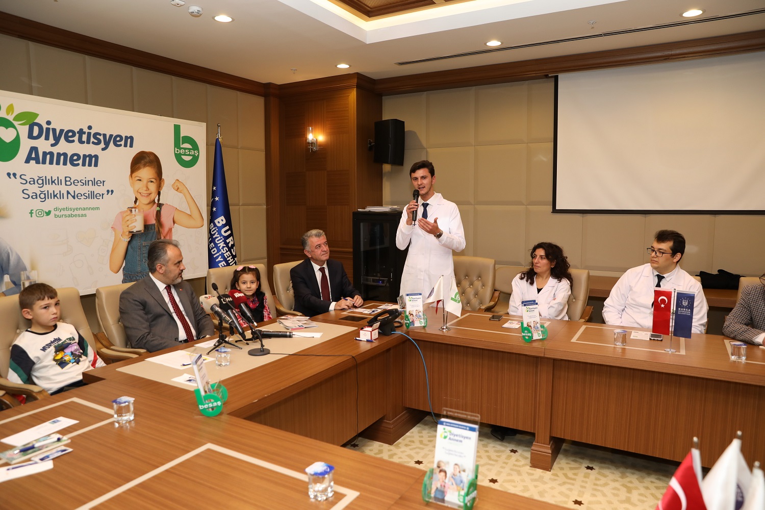 Büyükşehir Belediyesi’nin BESAŞ aracılığıyla planladığı ‘Diyetisyen Annem’ isimli projenin lansmanı gerçekleştirildi. Büyükşehir Belediyesi Encümen Salonu’nda yapılan toplantıya; Başkan Alinur Aktaş ve Türk Metal Sendikası Kadın Kolları Başkanı Selda Tekman ile basın mensupları katıldı. Başkan Aktaş, toplantıya katılan çocuklara hediyeler verdi, onlara şiirler okuttu. Toplantıda ayrıca, Diyetisyen Fatih Bıçaklar tarafından proje ve işleyişi hakkında kısa bir bilgilendirme yapıldı.