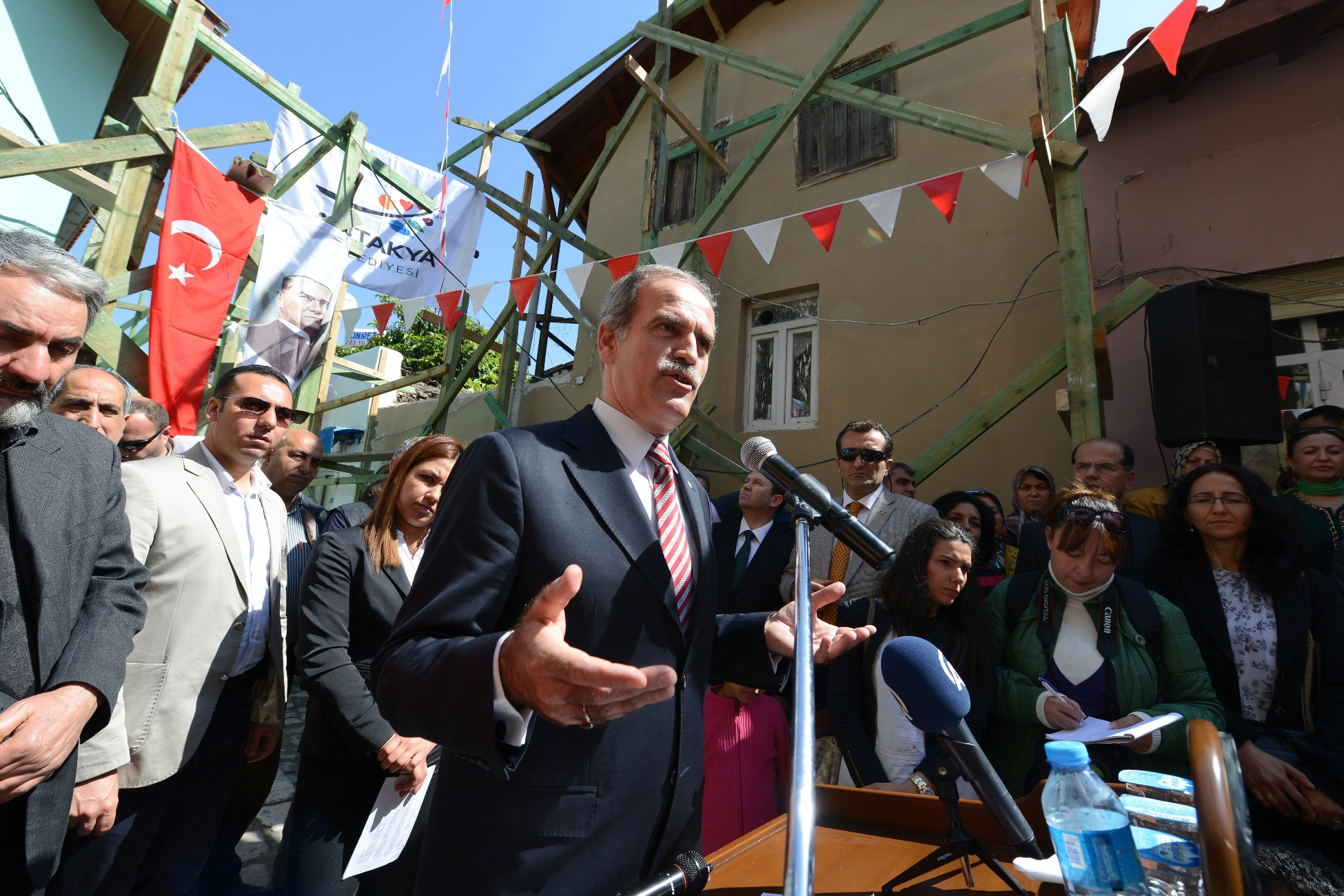 ANTAKYA- Tarihi ve kültürel mirasın ayağa kaldırılması konusunda Türkiye’ye örnek birçok projeyi hayata geçiren Bursa Büyükşehir Belediyesi, kardeşlik ilişkileri çerçevesinde Antakya´nın 40 Asırlık Türk Yurdu Sokağı için projelendirdiği sokak sağlıklaştırma çalışmalarını törenle başlattı. Adalet Bakanı Sadullah Ergin´in de katıldığı törende konuşan Büyükşehir Belediye Başkanı Recep Altepe, Bursa’nın bu alandaki bilgi birikimini Antakya’ya yansıtmanın mutluluğunu yaşadıklarını söyledi.