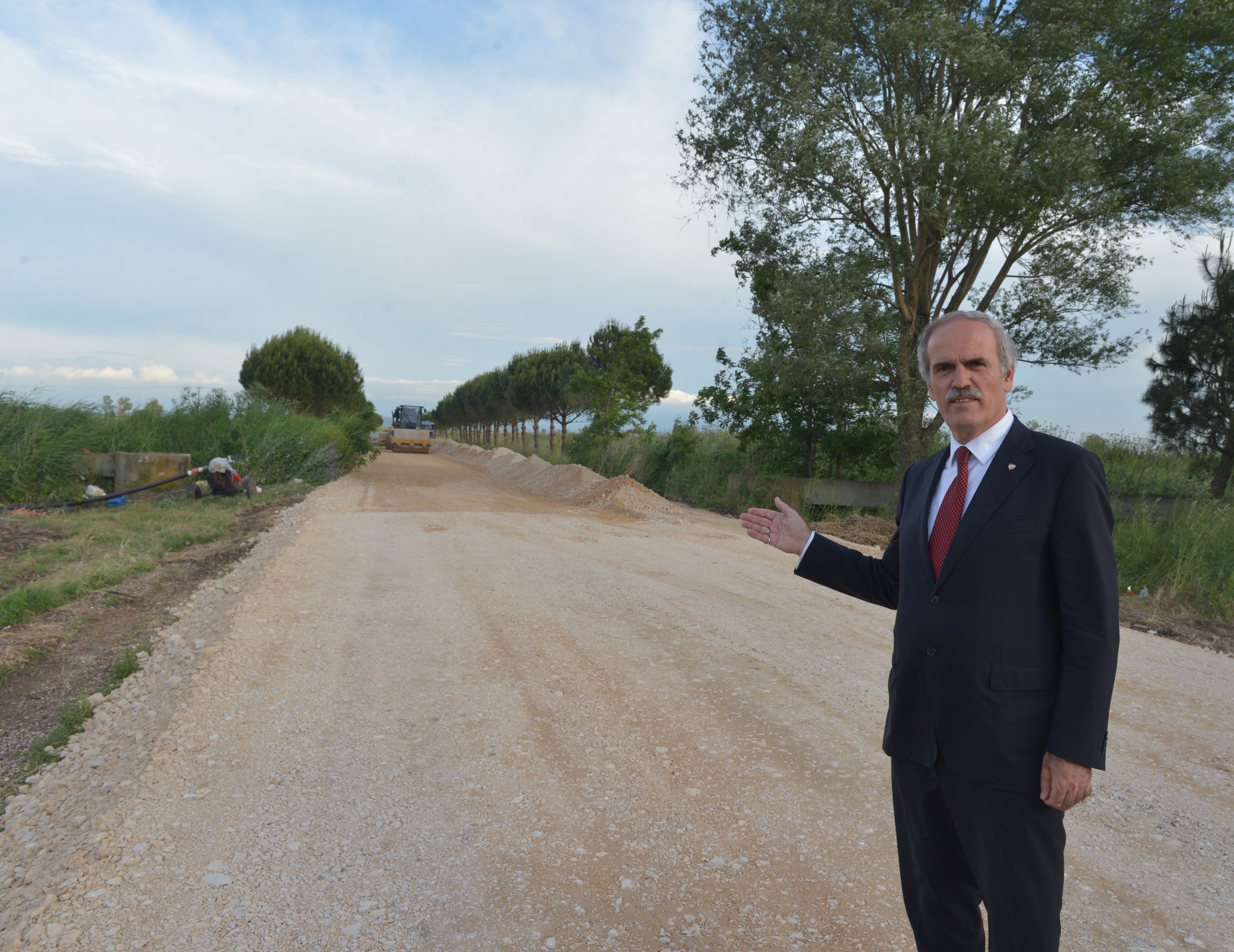 BURSA - Bursa’nın yaşanabilir ve ulaşılabilir bir kent olması hedefiyle 17 ilçede çalışmalarını hızla sürdüren Büyükşehir Belediyesi, arazi yollarındaki düzenleme faaliyetleriyle çiftçilerin yüzünü güldürüyor. Karacabey’de 10 köyü birbirine bağlayan ve salça üreticileri için hayati önem taşıyan 10 kilometrelik Akhisar-Yenisarıbey yolundaki asfaltlama çalışmalarını yerinde inceleyen Büyükşehir Belediye Başkanı Recep Altepe, ilçelerde oluşturdukları şantiyelerle köy yollarında yaşanan ulaşım sıkıntısına daha çabuk çözüm ürettiklerini söyledi.