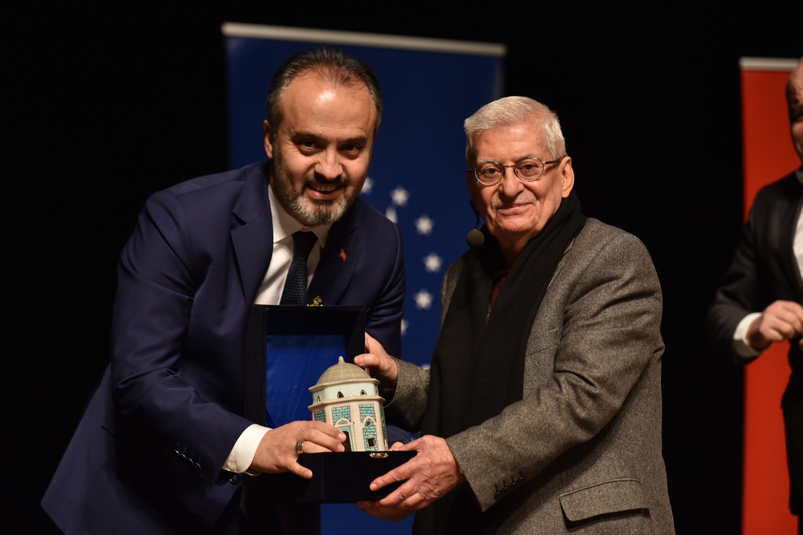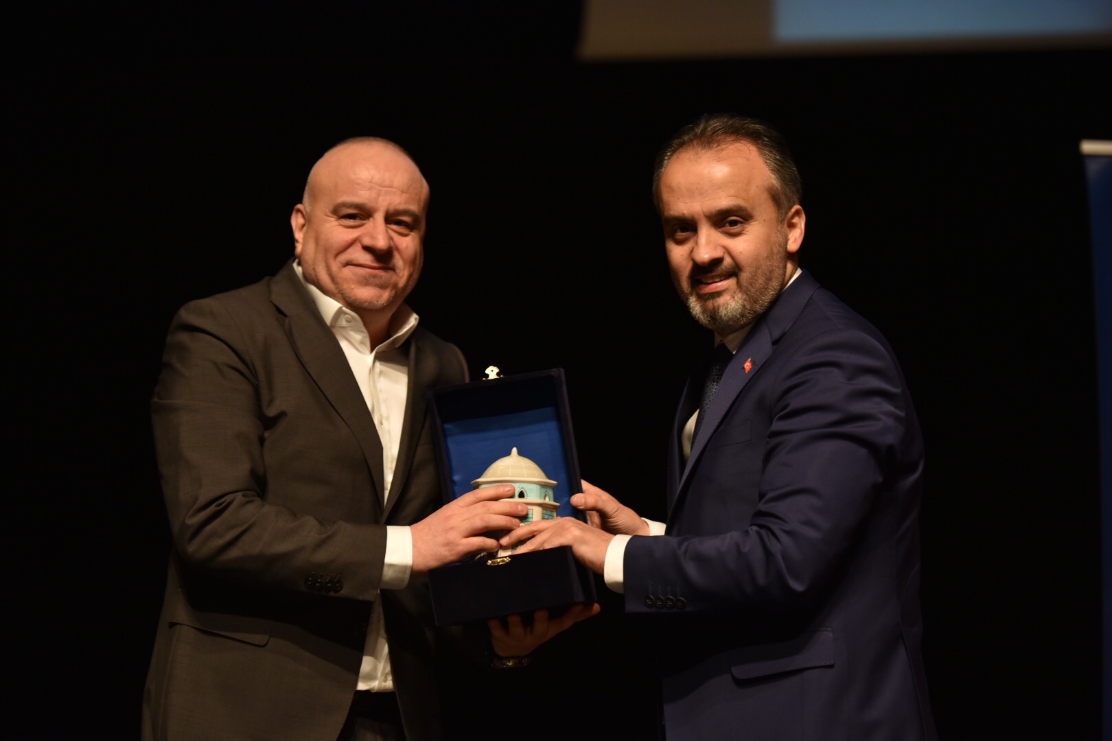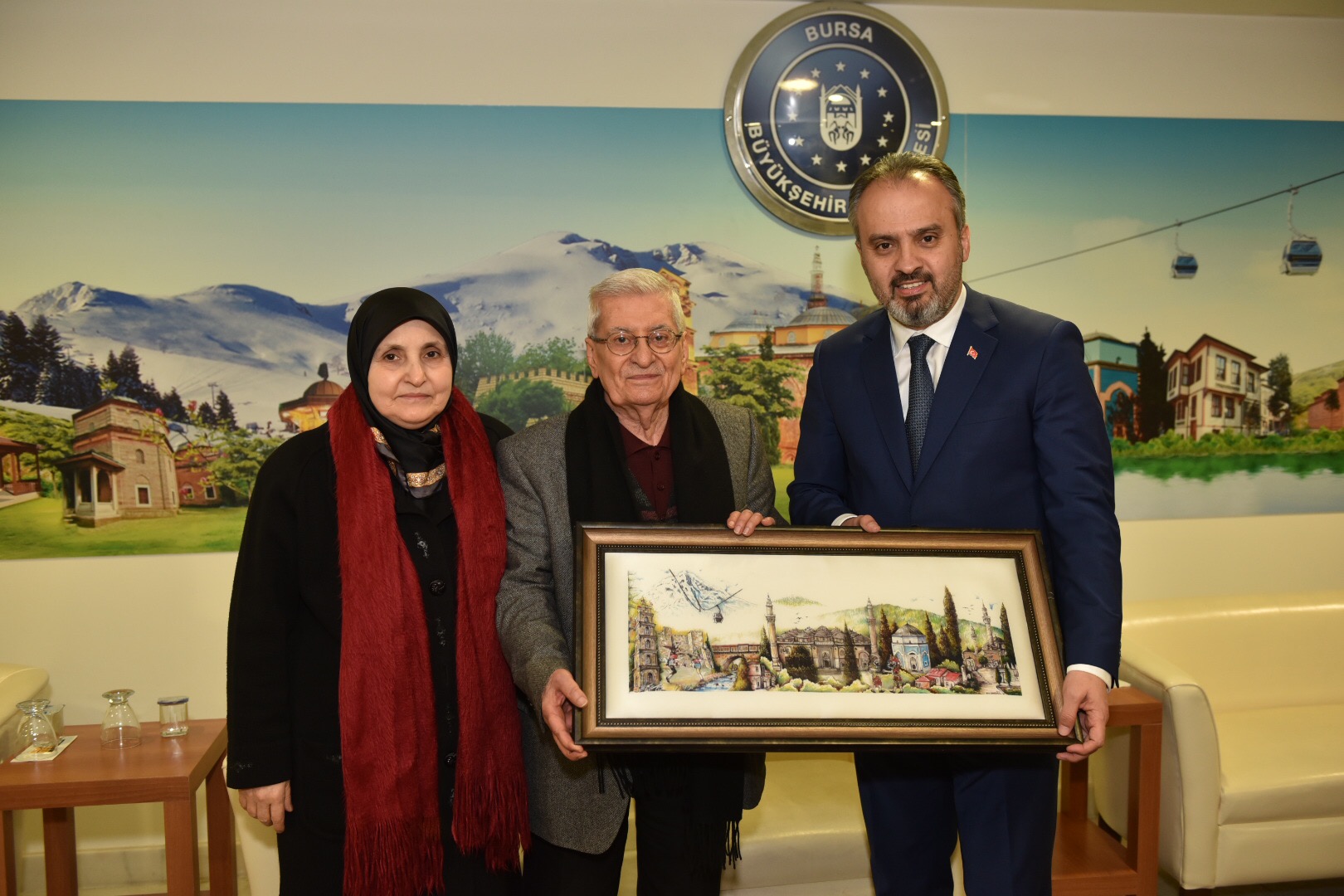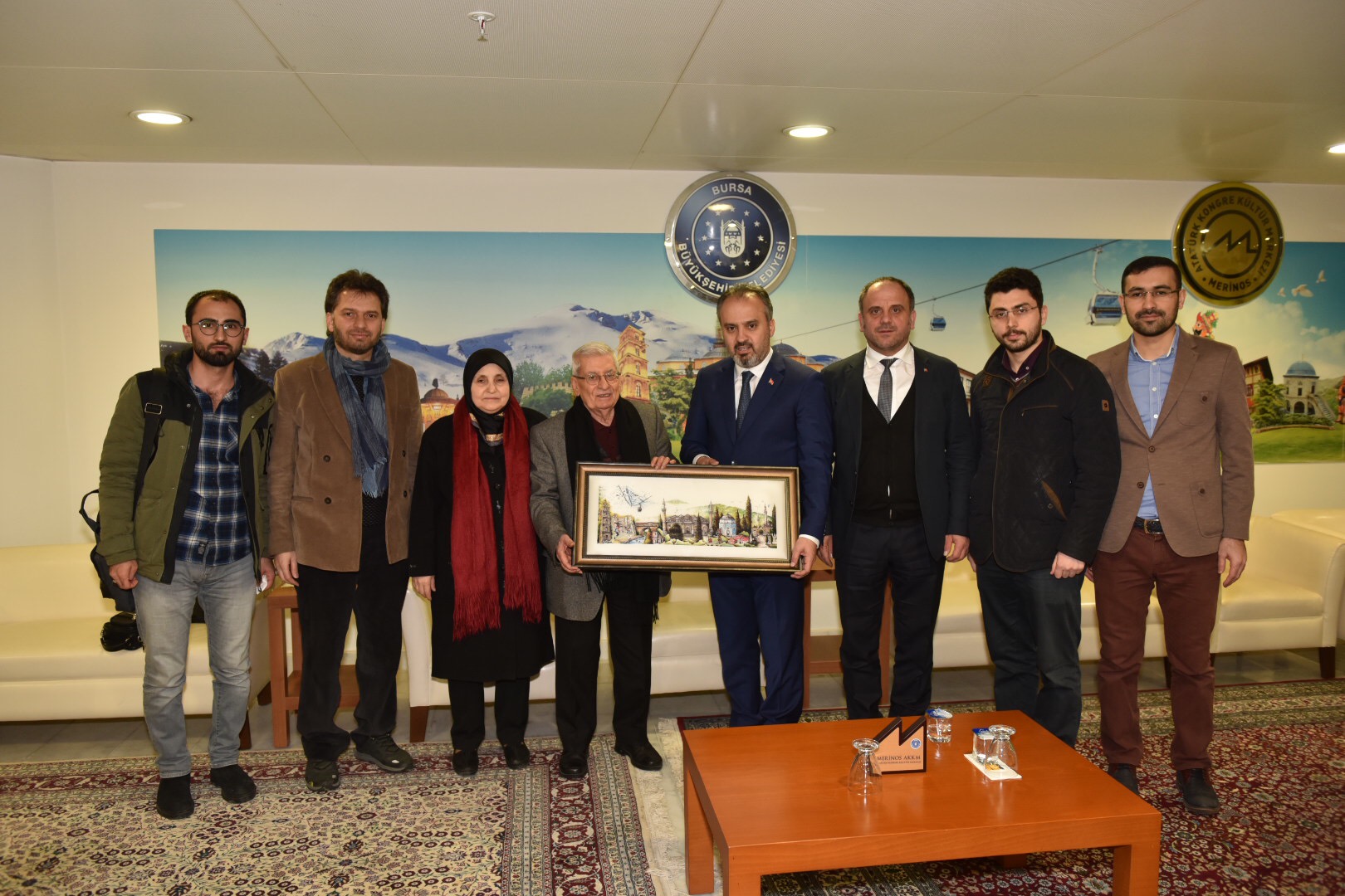 Başkan Aktaş, etkinliği sonunda günün anısına Özdenören'e Bursa'nın resmedildiği ipek bir tablo hediye etti.