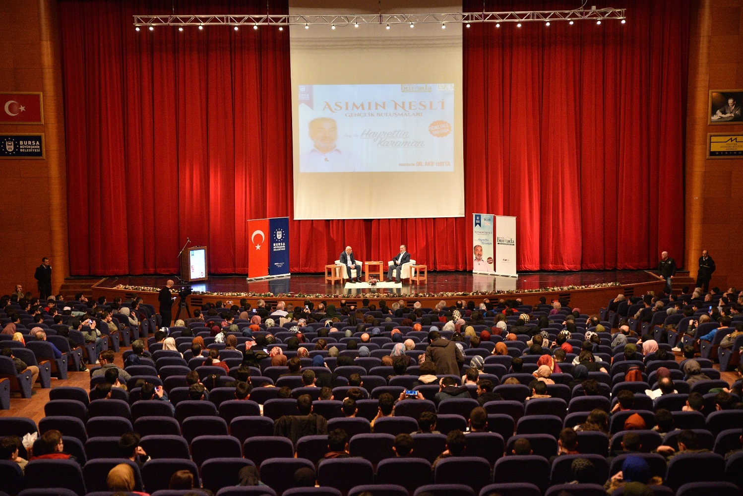 BURSA - Bursa Büyükşehir Belediyesi tarafından düzenlenen ‘Asımın Nesli Gençlik Buluşmaları’, Türk İlahiyatçı Yazar Prof.Dr. Hayrettin Karaman’ı ağırladı.