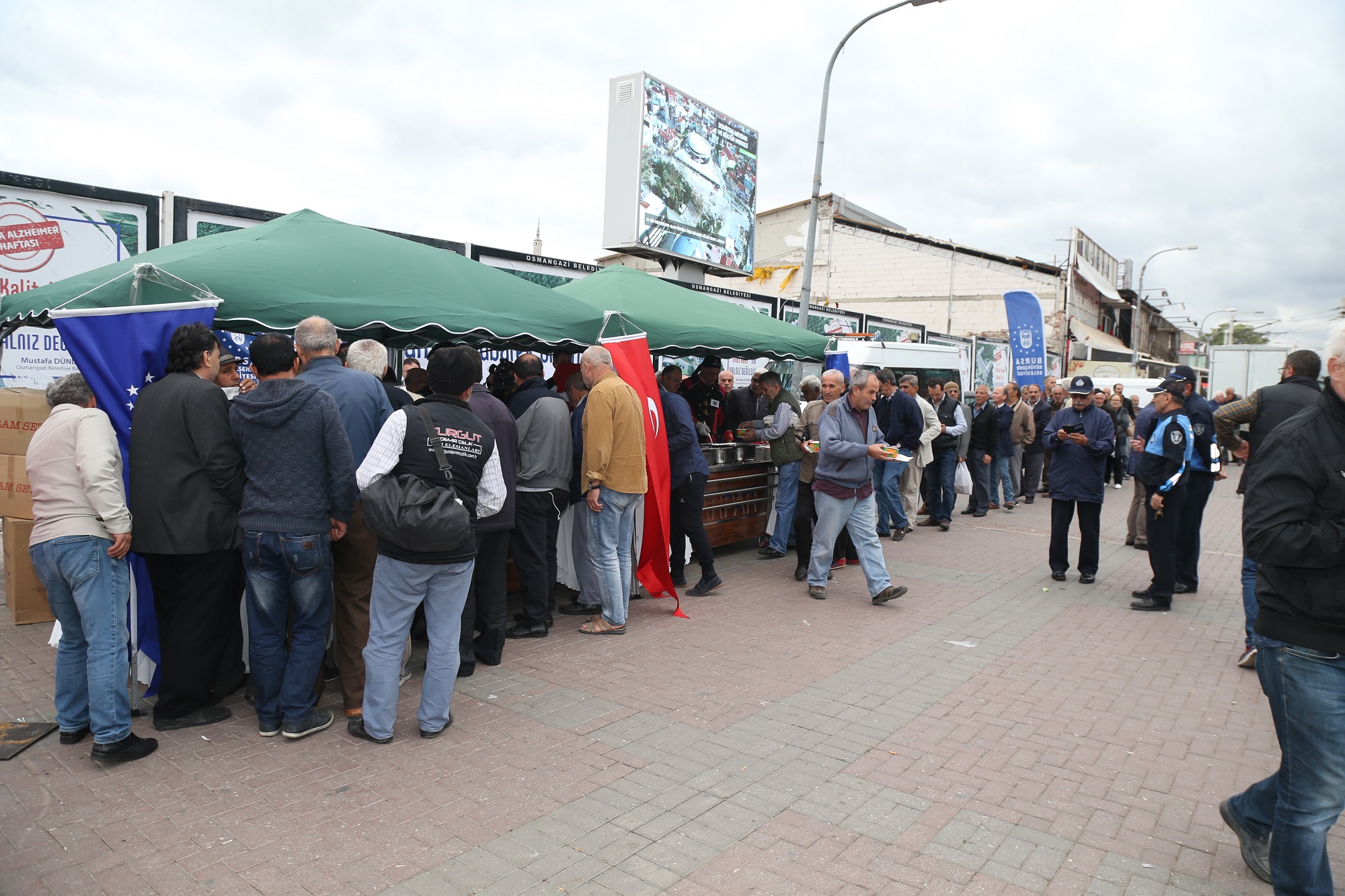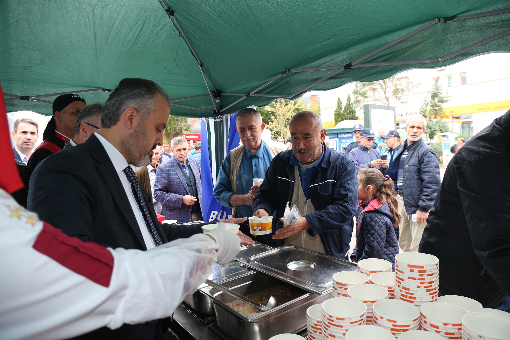 Ulaşımdan altyapıya, spordan tarihi kültürel mirasa daha her alandaki yatırımlarla Bursa’yı geleceğe taşıyan Büyükşehir Belediyesi, 7’den 70’e tüm halkı kucaklayan sosyal projelerle de birlik ve beraberliğin en güzel örneklerini sergiliyor. Her Muharrem Ayı’nda düzenlenen aşure dağıtım geleneğini kentin farklı noktalarında sürdüren Büyükşehir Belediyesi, toplumun tüm kesimlerini aşure kazanları etrafında buluşturmaya devam ediyor. Bursaray Osmangazi İstasyonu önüne kurulan stantlarda da vatandaşlara aşure dağıtılırken, standı ziyaret eden Büyükşehir Belediye Başkanı Alinur Aktaş kendi elleri ile vatandaşlara aşure ikram etti.