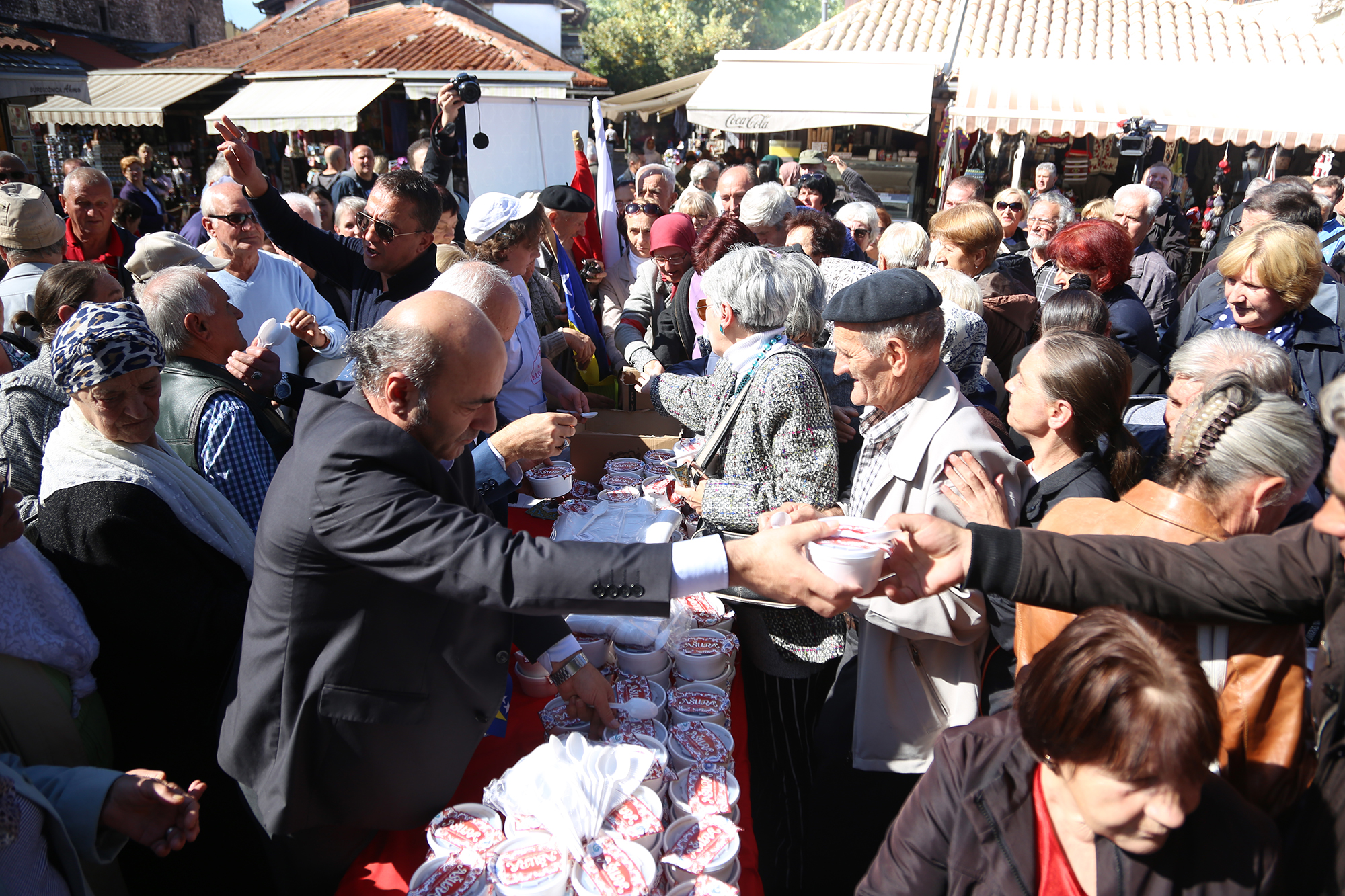 Bursa Büyükşehir Belediyesi’nin 9 ülkede yaklaşık 40 bin kişiye aşure dağıttığı etkinliklerden biri de Bosna Hersek’te yapıldı. Saraybosna´daki tarihi Başçarşı´da, Bursa Büyükşehir Belediyesi, Saraybosna´nın Stari Grad Belediyesi, Saraybosna Yunus Emre Enstitüsü ve Stari Grad Aşevi tarafından düzenlenen etkinliğe bölge halkı yoğun ilgi gösterdi. Türkiye´nin Saraybosna Büyükelçisi Haldun Koç, Türkiye ile Bosna Hersek´in damak tadıyla birçok ortak noktası bulunan iki ülke olduğunu belirterek, özellikle kültür ortaklığının olduğu aşure günü etkinliklerinde bu tadı, Bosna Hersek halkıyla birlikte yaşadıklarını kaydetti.