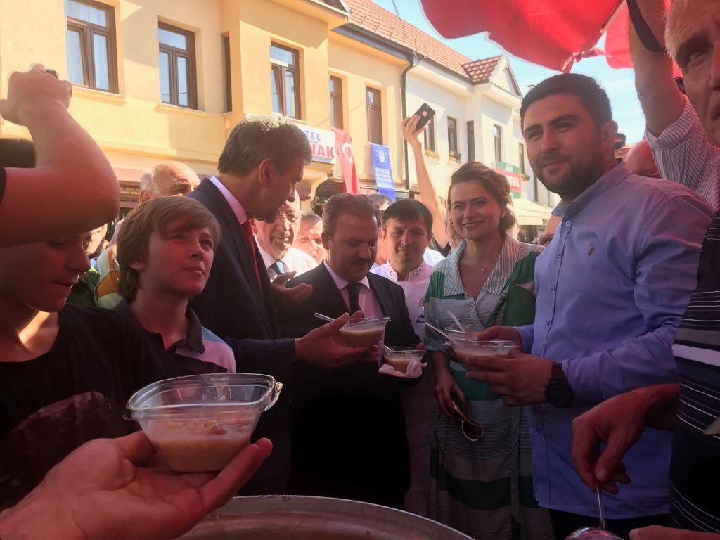 Büyükşehir Belediyesi’nin her yıl Balkan ülkelerinde düzenlediği aşure etkinliklerinin 13.’sü gerçekleşti. Bu yıl 4 ülkede organize edilen aşure programlarının ilk durağı, Makedonya’nın Üsküp şehri oldu. Muratpaşa Camii önünde kurulan stantta, Müslümanların yanı sıra Tarihi Türk Çarşısı’nı ziyaret eden bölge halklarına da aşure ikramında bulunuldu. Üsküp’ün 5 farklı noktasında benzer uygulamalar yapıldı. Buralarda da stantları ziyaret eden 10 bini kişi, Büyükşehir Belediyesi’nin Muharrem Ayı nedeniyle sağladığı bu ayrıcalıklı hizmetten yararlandı. Aşure programlarının ikincisi ise Kosova’nın Priştine şehrinde yapıldı. Fatih Camii önünde ve şehrin farklı bölgelerinde kurulan stantlarda 2 bini aşkın ziyaretçiye aşure ikram edildi.