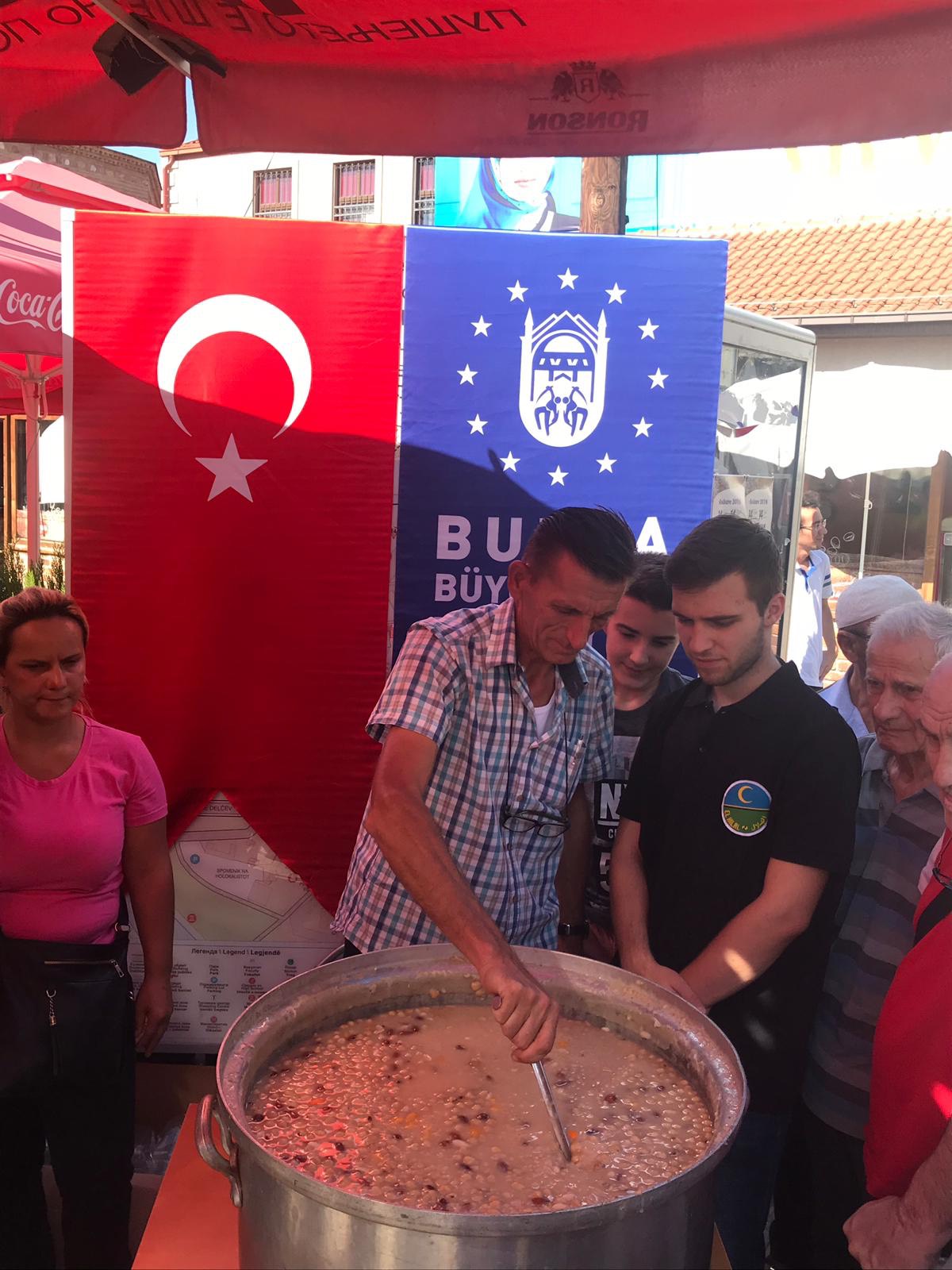 BURSA - Bursa Büyükşehir Belediyesi tarafından Muharrem Ayı nedeniyle Makedonya ve Kosova’da 12 bin kişiye aşure dağıtıldı. Üsküp ve Priştine şehirlerinde düzenlenen etkinlikler sadece Müslümanları değil farklı dinlere mensup bölge halklarını da bir araya getirdi.