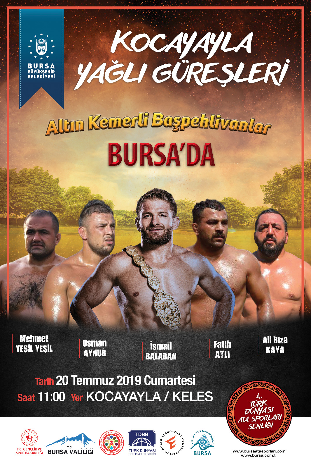 Bursa Büyükşehir Belediyesi’nin koordinasyonunda Bursa Valiliği, Bursa Kültür Turizm ve Tanıtma Birliği, Türkiye Geleneksel Spor Dalları Federasyonu, Dünya Etno Spor Konfederasyonu, TÜRKSOY ve Türk Dünyası Belediyeler Birliği’nin katkılarıyla düzenlenen şenlik 19 Temmuz’da Bursa’daki kortej ile başlayacak. Şenlik kapsamındaki kültür saat ve spor etkinlikleri ise 20-21 Temmuz tarihlerinde Keles Kocayayla’da gerçekleştirilecek. Şenlikte kökbörü, atlı akrobasi, geleneksel okçuluk, cirit, rahvan, atlı okçuluk, aba-kuşak-şalvar güreşleri ve yağlı güreş müsabakaları iki gün boyunca izleyicilerin beğenisine sunulacak. 20 Temmuz’daki Kocayayla Yağlı Güreşleri’nde Kırkpınar altın kemerli baş pehlivanlar İsmail Balaban, Fatih Atlı, Mehmet Yeşil Yeşil, Osman Aynur ve Ali Rıza Kaya ata sporumuz yağlı güreşte heyecanı doruğa taşıyacak. Yağlı güreş müsabakası kapsamında 350 sporcu mücadele edecek ve er meydanında kol bağlayacaklar. Etkinliği Kırkpınar davul-zurna ekibi ve Kırkpınar cazgırları sunacaktır.