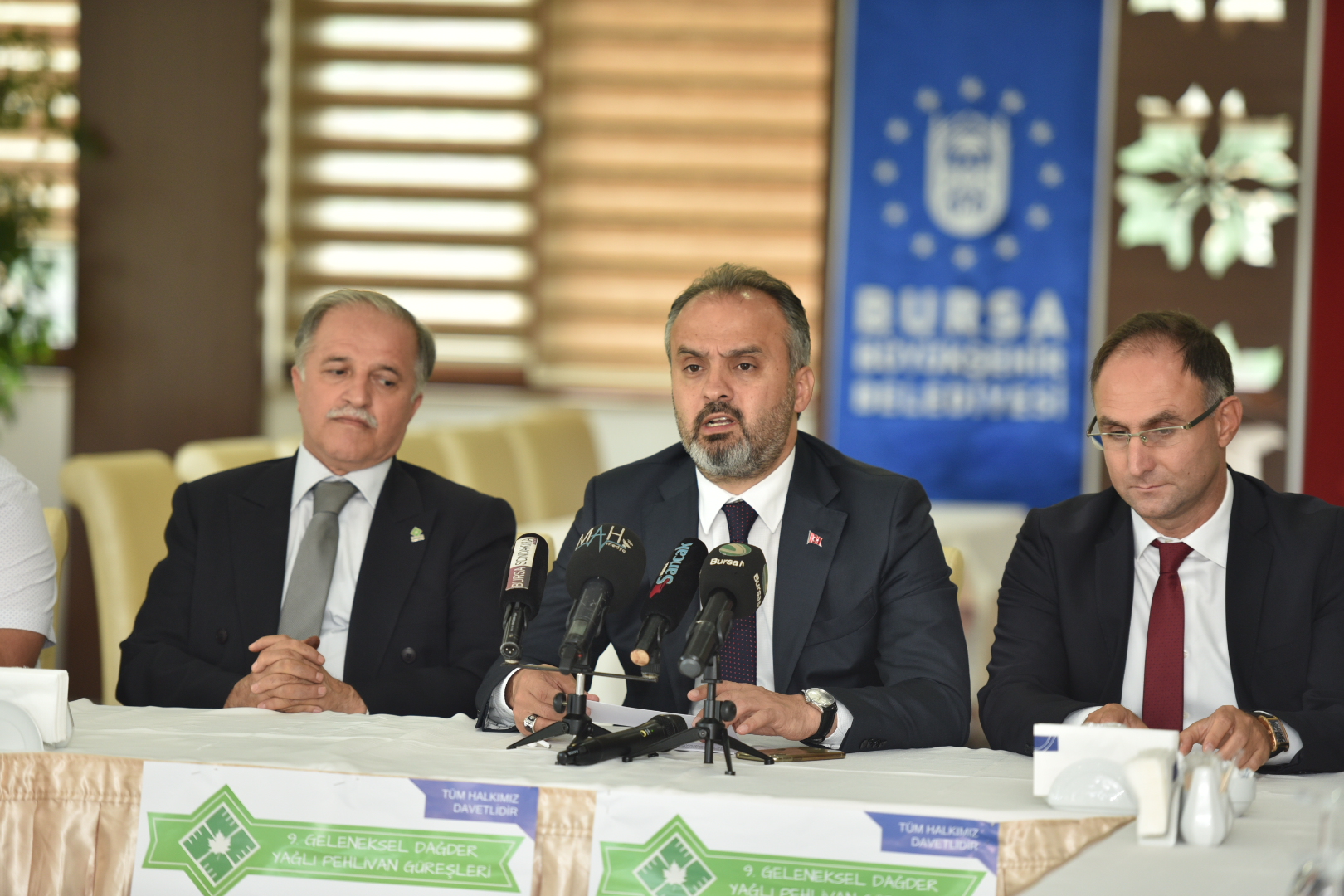 Bursa Büyükşehir Belediye Başkanı Alinur Aktaş, Dobruca Sosyal Tesisleri’nde gerçekleştirilen basın toplantısında, Büyükşehir Belediyesi desteğiyle düzenlenen ‘9. Geleneksel DAĞDER Yağlı Pehlivan Güreşleri’ ile Bursa’nın unutulmaz bir organizasyona ev sahipliği yapacağını anlattı. Başkan Aktaş, Bursa’nın, farklı medeniyetlerin ve çok kültürlülüğün izlerini taşıyan nadir kentlerden olduğunu söyleyerek, “Bursa’nın bilinen ve varlığını sürdüren en eski sakinleri, ‘Dağlılar’ olarak tanımlanan Yörük ve Türkmenlerdir. Orhaneli, Keles, Harmancık, Büyükorhan ilçelerinden birinden olmak en kısa ifadeyle ‘Dağlı’ olmaktır. I. Murad dönemi dağ yöresinin altın çağını yaşadığı dönemdi” diyerek yörenin tarihi ve kültürel birikimini anlattı. Aktaş, Büyükşehir Belediyesi’nin dağ ilçeleri ile ilgili yatırımlarını hatırlatarak, “Bütünşehir - Büyükşehir uygulamasından sonra dağ yöresinde çalışmalar daha da hızlandı. Fiziki yatırımların yanı sıra sosyal ve kültürel çalışmalarla da bu durumu destekliyoruz” dedi.