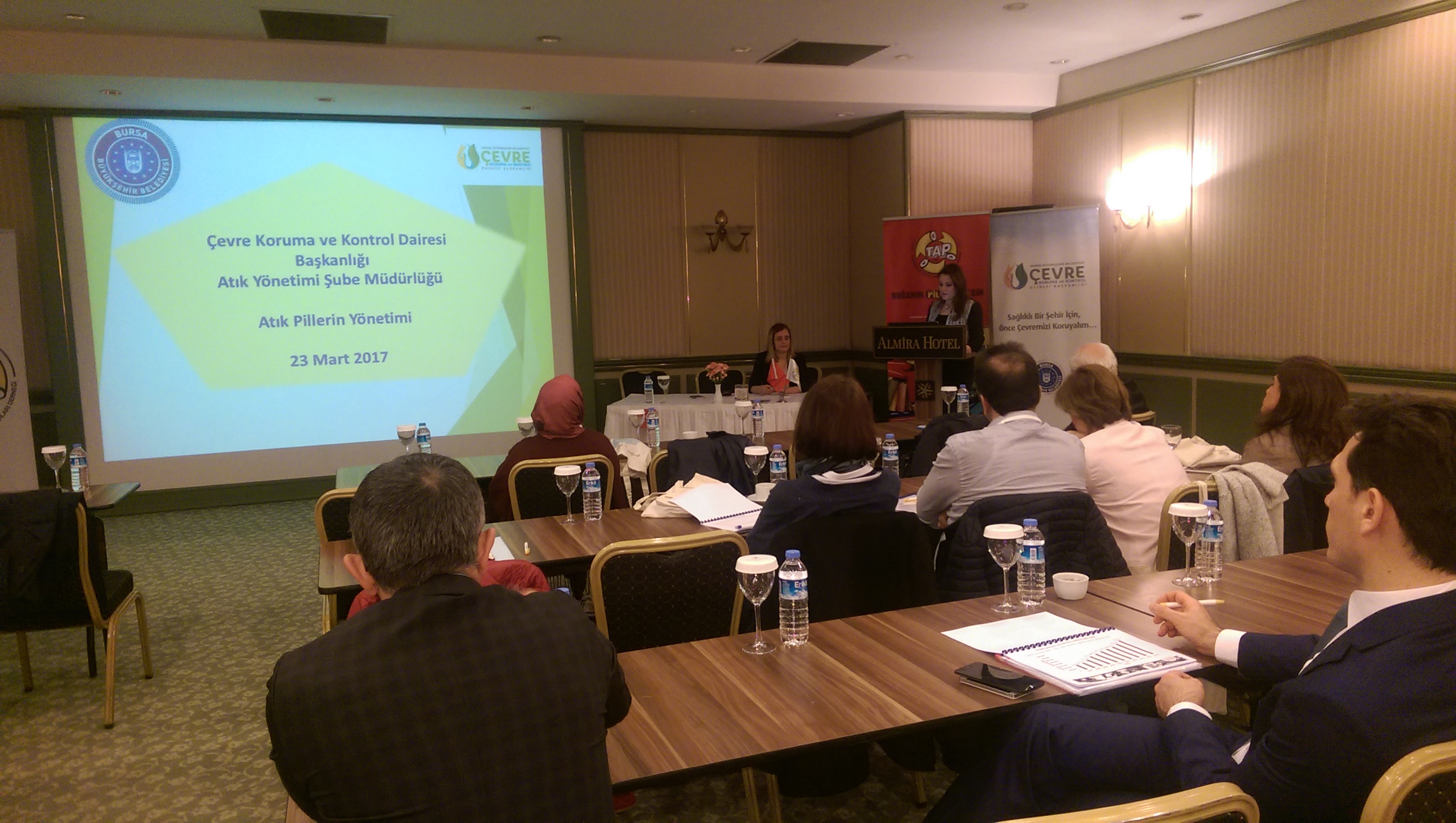 - BURSA BÜYÜKŞEHİR BELEDİYESİ’NİN KOORDİNASYONUNDA TAŞINABİLİR PİL ÜRETİCİLERİ VE İTHALATÇILARI DERNEĞİ VE İKTİSADİ İŞLETMESİ (TAP) ORGANİZASYONU İLE 17 İLÇE BELEDİYESİ VE İLGİLİ KAMU KURUMLARI ARASINDA ATIK PİLLERİN DOĞAYA VERDİĞİ ZARARLARIN ÖNÜNE GEÇMEK İÇİN İŞBİRLİĞİ TOPLANTISI YAPILDI.
