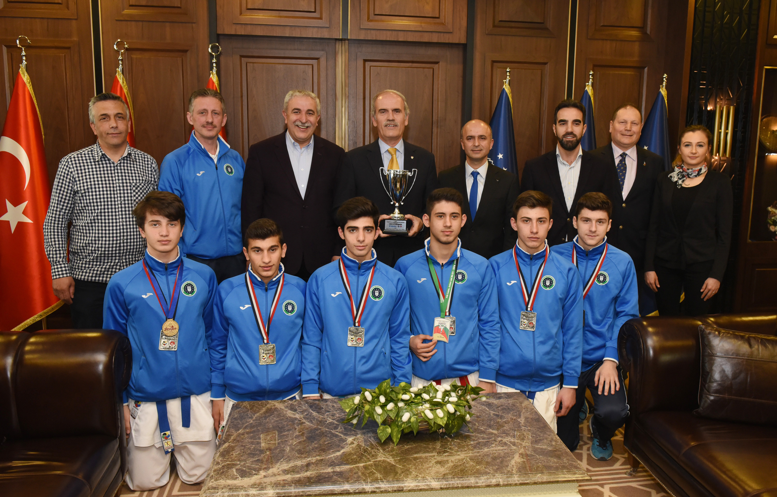 Bursa Büyükşehir Belediye Başkanı Recep Altepe, Büyükşehir Belediyespor Kulübü Başkan Yardımcısı İlhan Satık, Büyükşehir Belediyespor Kulübü Karate Takımı sporcuları ve antrenörleriyle bir araya geldi. Büyükşehir Belediyesi Yeni Hizmet Binası’nda gerçekleştirilen görüşmede Avrupa’da Bursa’nın gururu olan başarılı sporcuları tebrik eden Başkan Altepe, genç sporcuları altınla ödüllendirdi.