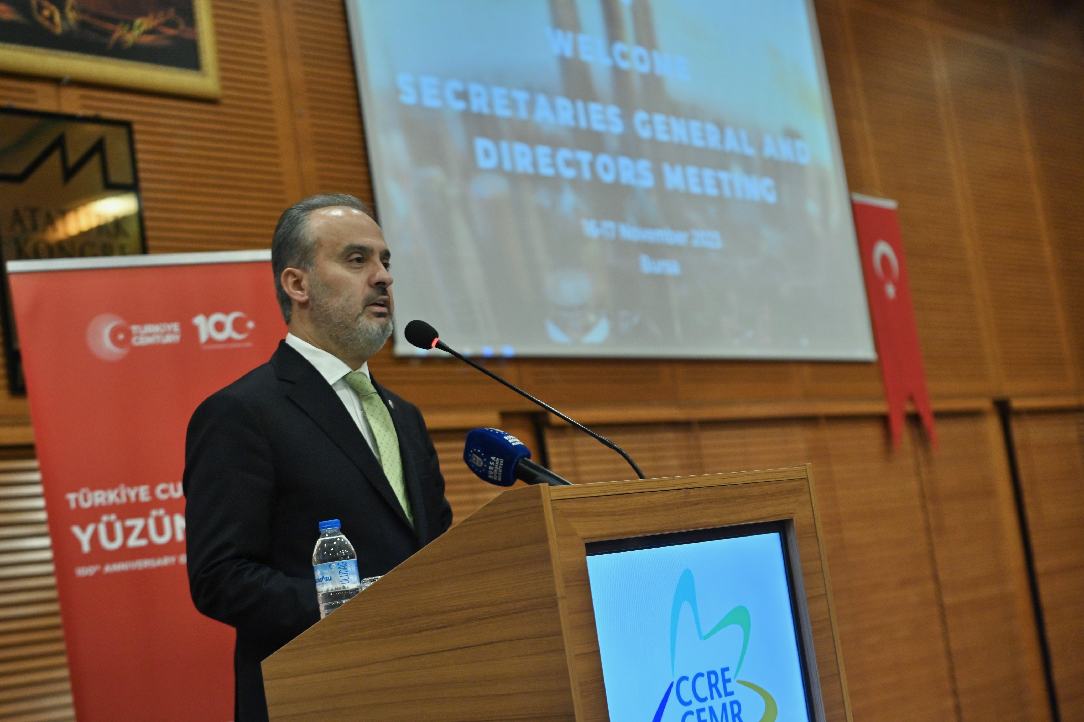 Bursa Büyükşehir Belediyesi ve Türkiye Belediyeler Birliği’nin ev sahipliğinde Avrupa Belediyeler ve Bölgeler Konseyi (CEMR) tarafından düzenlenen ‘Genel Sekreterler ve Direktörler Toplantısı'nın bu yılki ikinci toplantısı, Atatürk Kongre Kültür Merkezi’nde yapıldı. Toplantıya, Bursa Büyükşehir Belediye Başkanı Alinur Aktaş’ın yanı sıra CEMR Genel Sekreteri Fabrizio Rossi, yurtdışından ve yurtiçinden toplam 50 farklı belediyeden yetkililer katıldı.