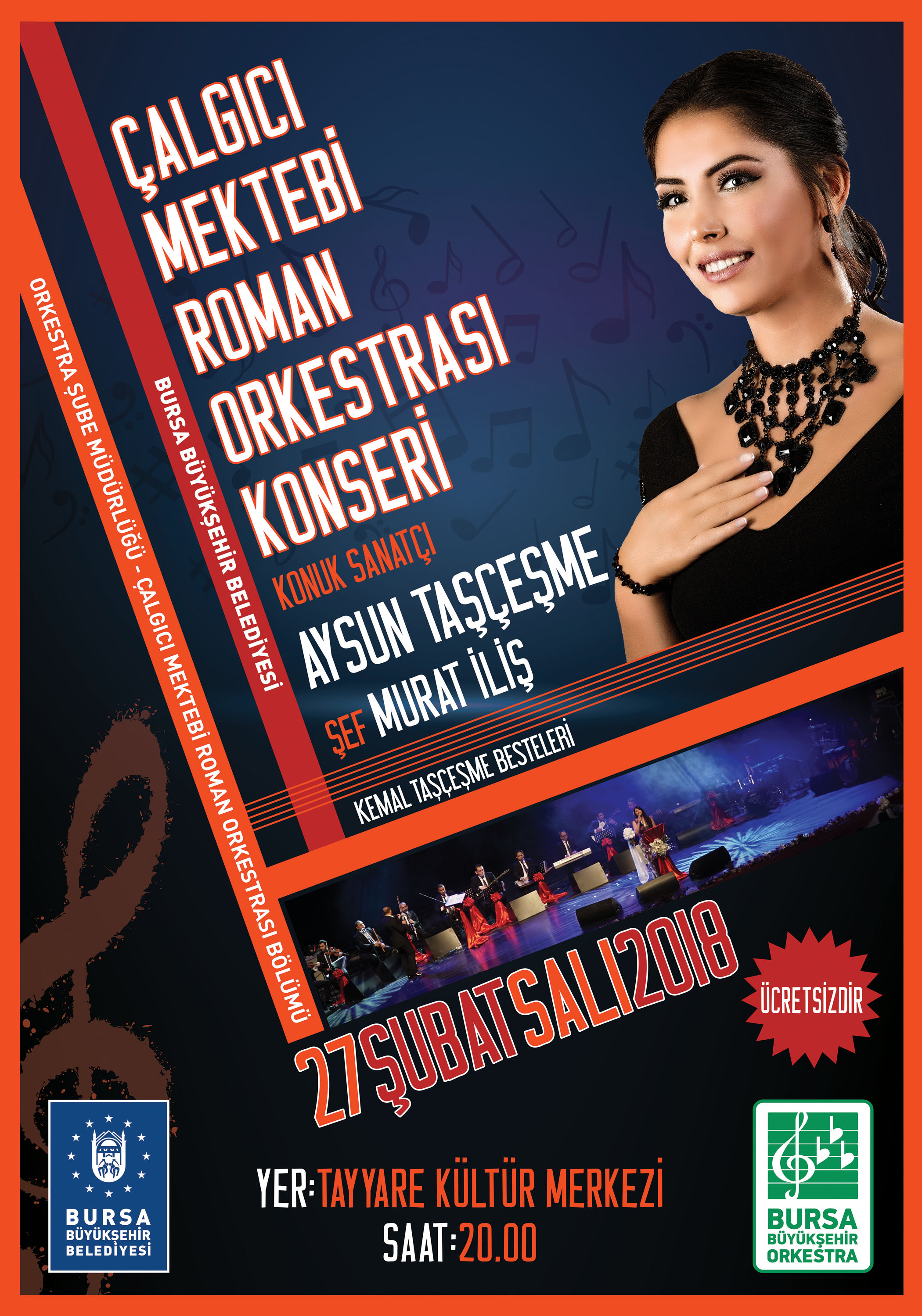 BURSA – Bursa Büyükşehir Belediyesi Orkestra Şube Müdürlüğü Çalgıcı Mektebi Roman Orkestrası’nın ‘Kemal Taşçeşme Besteleri’ temalı konseri, 27 Şubat Salı günü saat 20.00’da Tayyare Kültür Merkezi’nde (TKM) gerçekleştirilecektir.