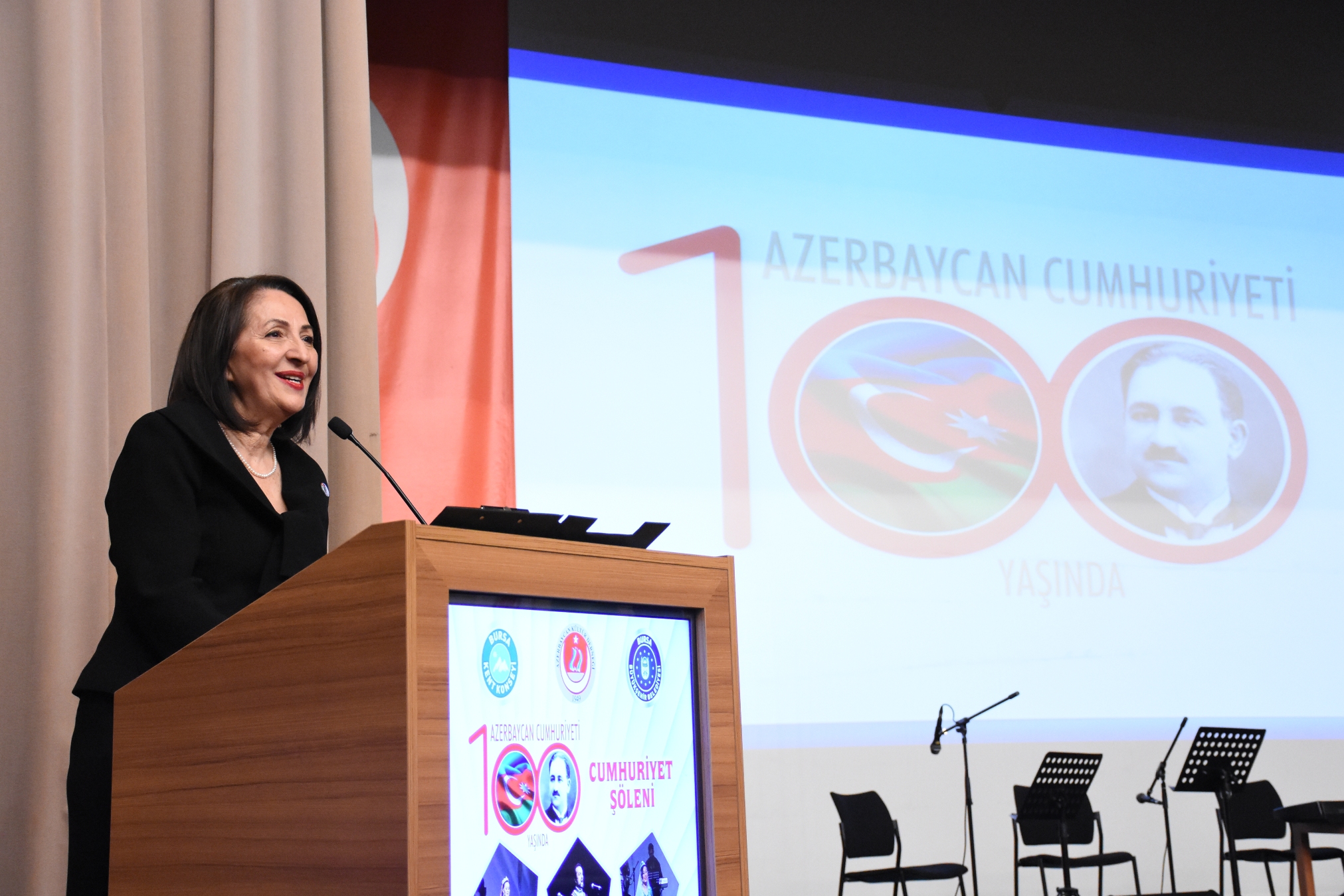 Türkiye ve Azerbaycan Milli Marşlarının okunmasıyla başlayan etkinliğin açılış konuşmasını yapan Azerbaycan Kültür Derneği Bursa Şubesi Başkanı Handan Askeran Ton, başta Mehmet Emin Resulzade olmak üzere Azerbaycan Cumhuriyeti’nin kurucularını minnetle andıklarını ifade etti. Azerbaycan Türkleri için bağımsızlığın ve özgürlüğün en büyük nişanesinin Azerbaycan Halk Cumhuriyeti olduğunu söyleyen Ton, “100. Yıl Cumhuriyet Şölenimizi büyük bir ilgi ve cömertlikle destekleyen Bursa Büyükşehir Belediye Başkanımız Alinur Aktaş’a çok teşekkür ediyoruz” dedi.