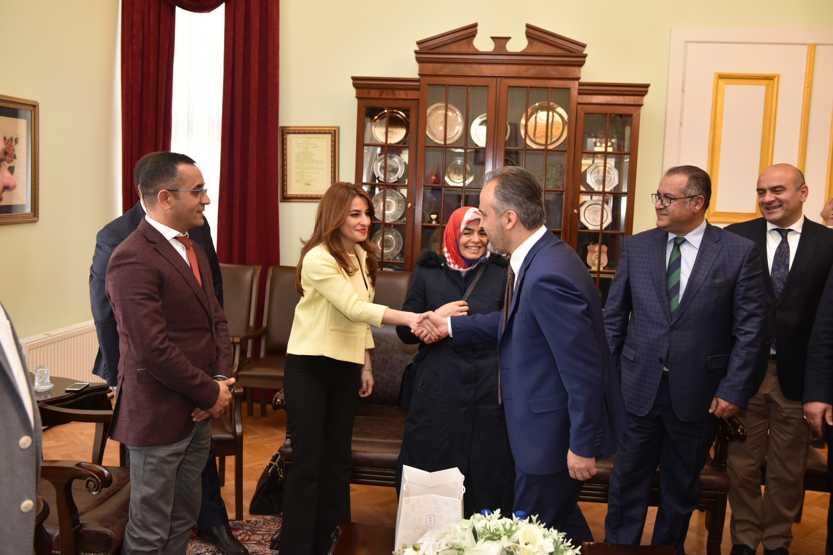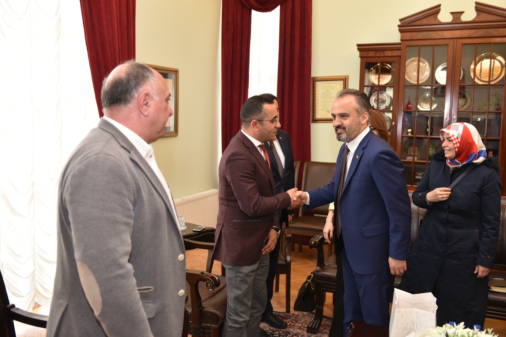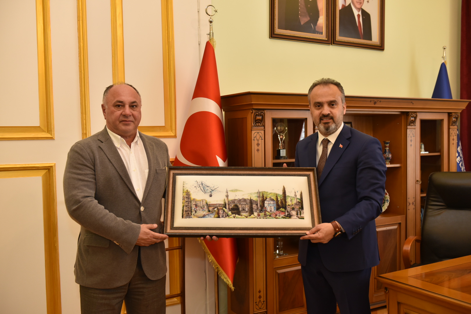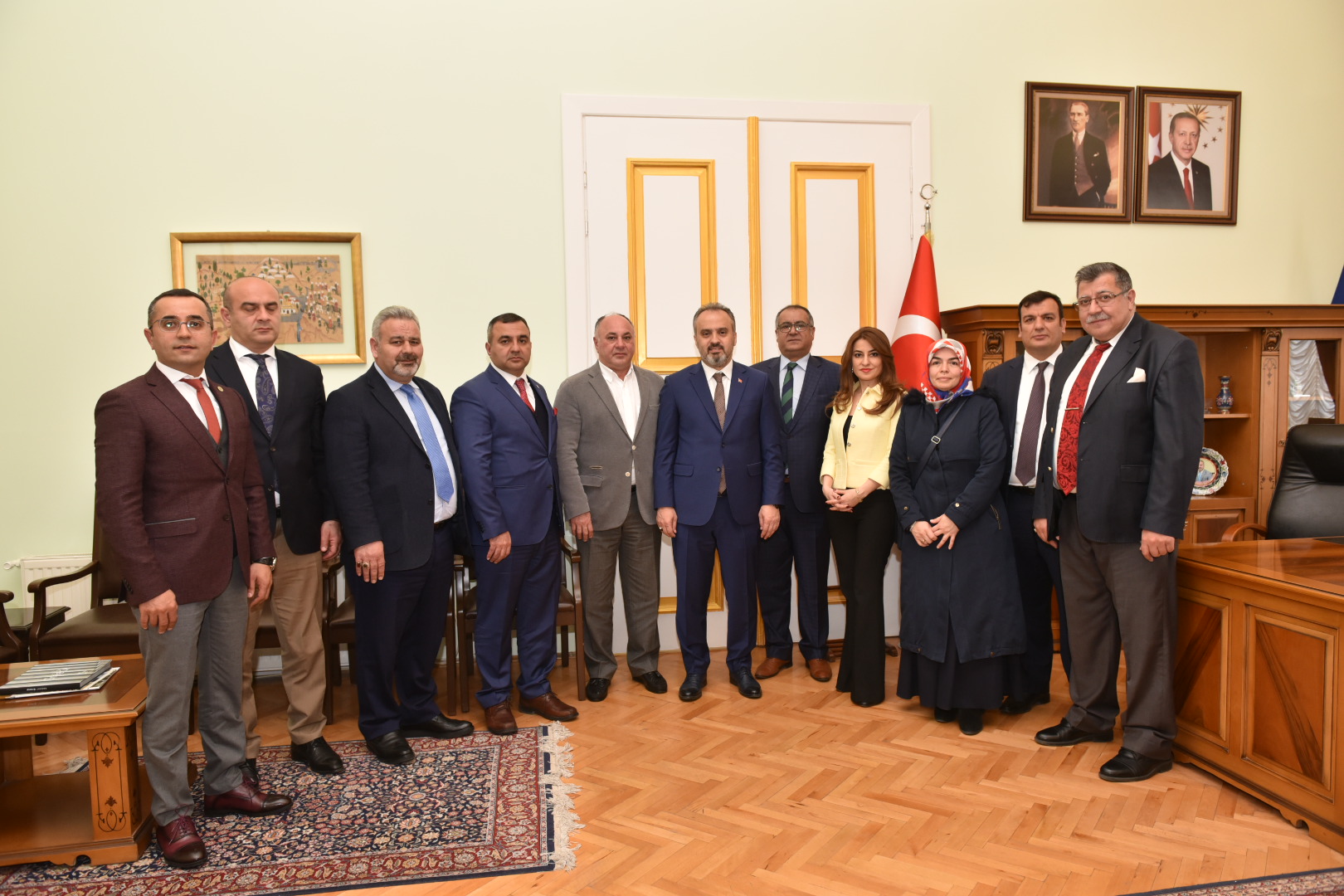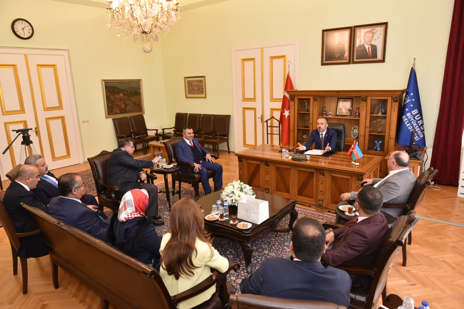 Azeri işadamları, Bursa’daki temaslar kapsamında Büyükşehir Belediye Başkanı Alinur Aktaş’ı ziyaret etti. Heykel’deki tarihi belediye binasında yapılan ziyarete, TAİB Başkanı Mehdi Nağıyev ile yönetim kurulu üyeleri katıldı.