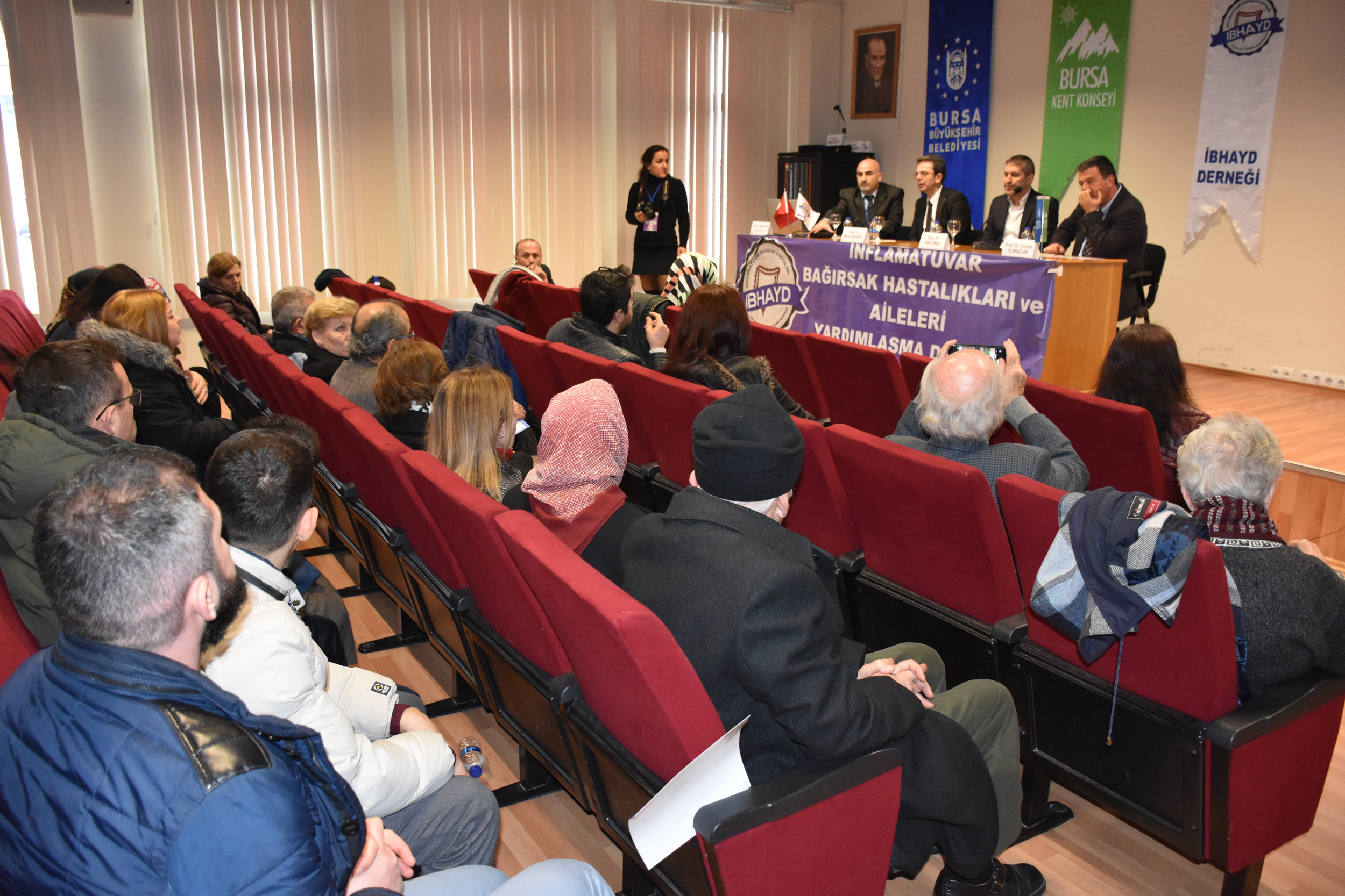 Bursa Kent Konseyi ve İHBD işbirliğiyle Bursa Kent Konseyi Koza Salonu’nda ‘İnflamatuar Bağırsak Hastalıkları Hasta Okulu’ programı düzenlendi. Hasta ve hasta yakınlarının katıldığı toplantıda uzman doktorlar ‘Ülseratif Kolit’ ve ‘Crohn’ hastalıkları ile ilgili merak edilen soruları cevapladı. İnflamatuar Bağırsak Hastaları ve Aileleri Yardımlaşma Derneği Başkanı Ömür Akkaya, dernek ve çalışmaları hakkında bilgi verdi. Vatandaşları hastalıkla ve gelişen tıpla ilgili bilgilendirme faaliyetlerini sürdürdüklerini aktaran Akkaya, desteklerinden ötürü Bursa Büyükşehir Belediyesi Başkanı Alinur Aktaş’a ve Bursa Kent Konseyi yetkililerine teşekkür etti.