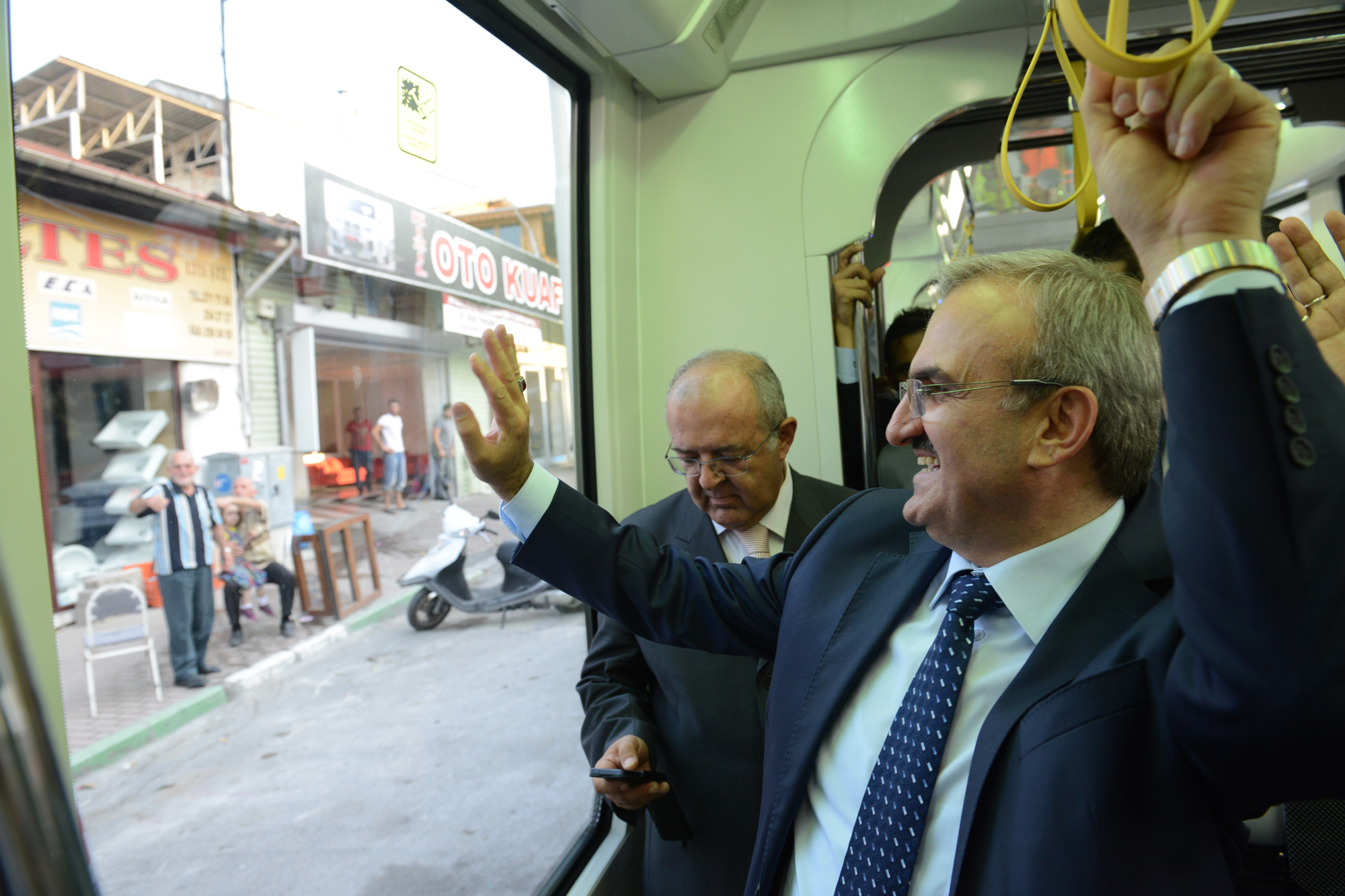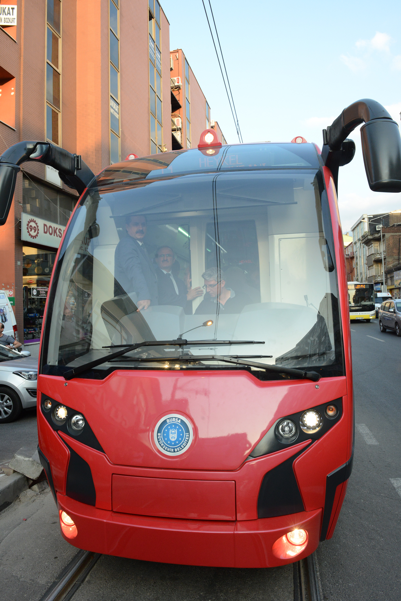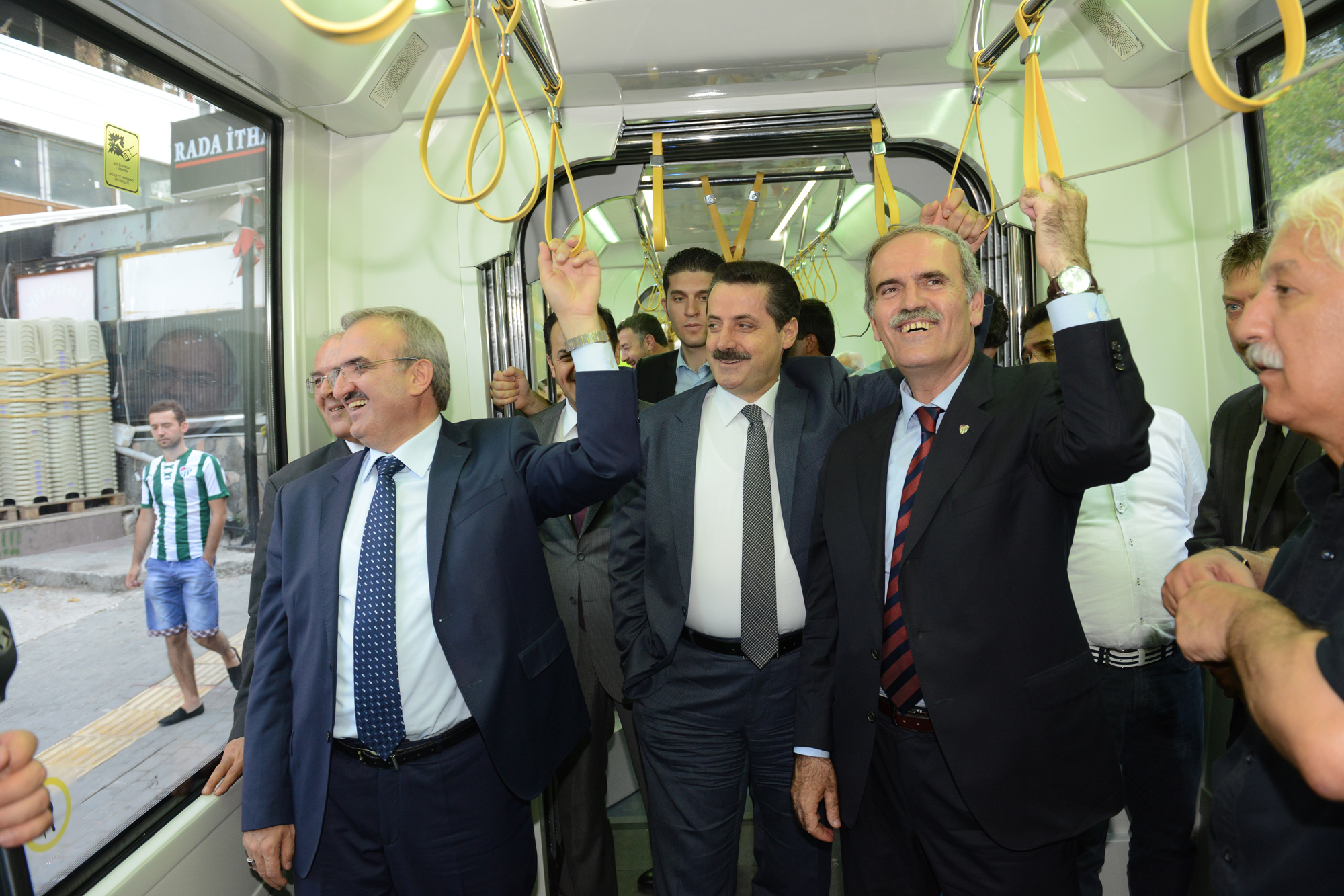 Bursa Büyükşehir Belediyesi’nin danışmanlığında üretilen Türkiye’nin ilk yerli tramvayı ‘İpekböceği’nin test sürüşleri devam ederken, Çalışma ve Sosyal Güvenlik Bakanı Faruk Çelik, Bursa Valisi Mühir Karaloğlu ve Emniyet Müdürü Ali Osman Kahya da Büyükşehir Belediye Başkanı Recep Altepe ile test sürüşüne katıldı. Atatürk Caddesi’nden yerli tramvaya binen Bakan Çelik ve beraberindeki Kent Meydanı’na kadar İpekböceği ile yolculuk yaptı.