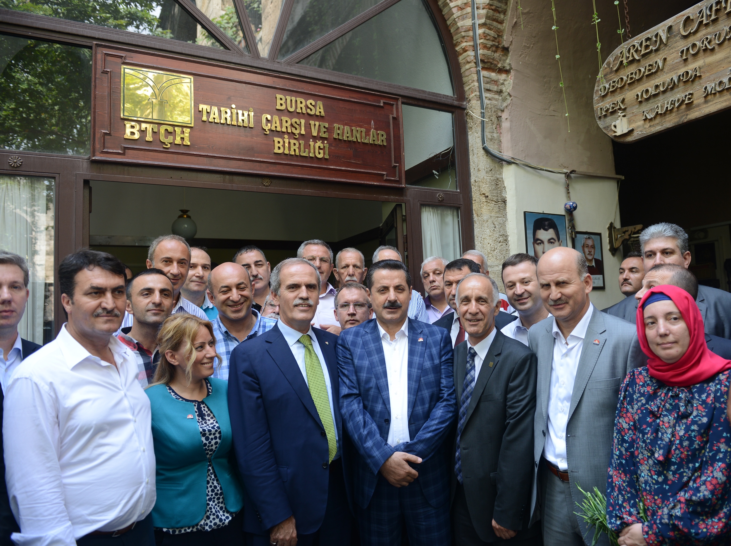 Başkan Altepe ve Bakan Çelik, kentteki programlarına sabah saatlerinde Dobruca Sosyal Tesisleri’nde düzenlenen toplantı ile başladı. Medya mensuplarının yoğun katılım sağladığı toplantıda birlik mesajları veren Bakan Çelik ve Başkan Altepe, Cuma namazının ardından da kapalı çarşı ve hanlar bölgesini ziyaret etti. Bakan Çelik ve Başkan Altepe, çarşıda Bursalıların da yoğun sevgi seliyle karşılaştı. Başkan Altepe ve Bakan Çelik, sohbet ettikleri vatandaşlarla fotoğraf da çektirdi.