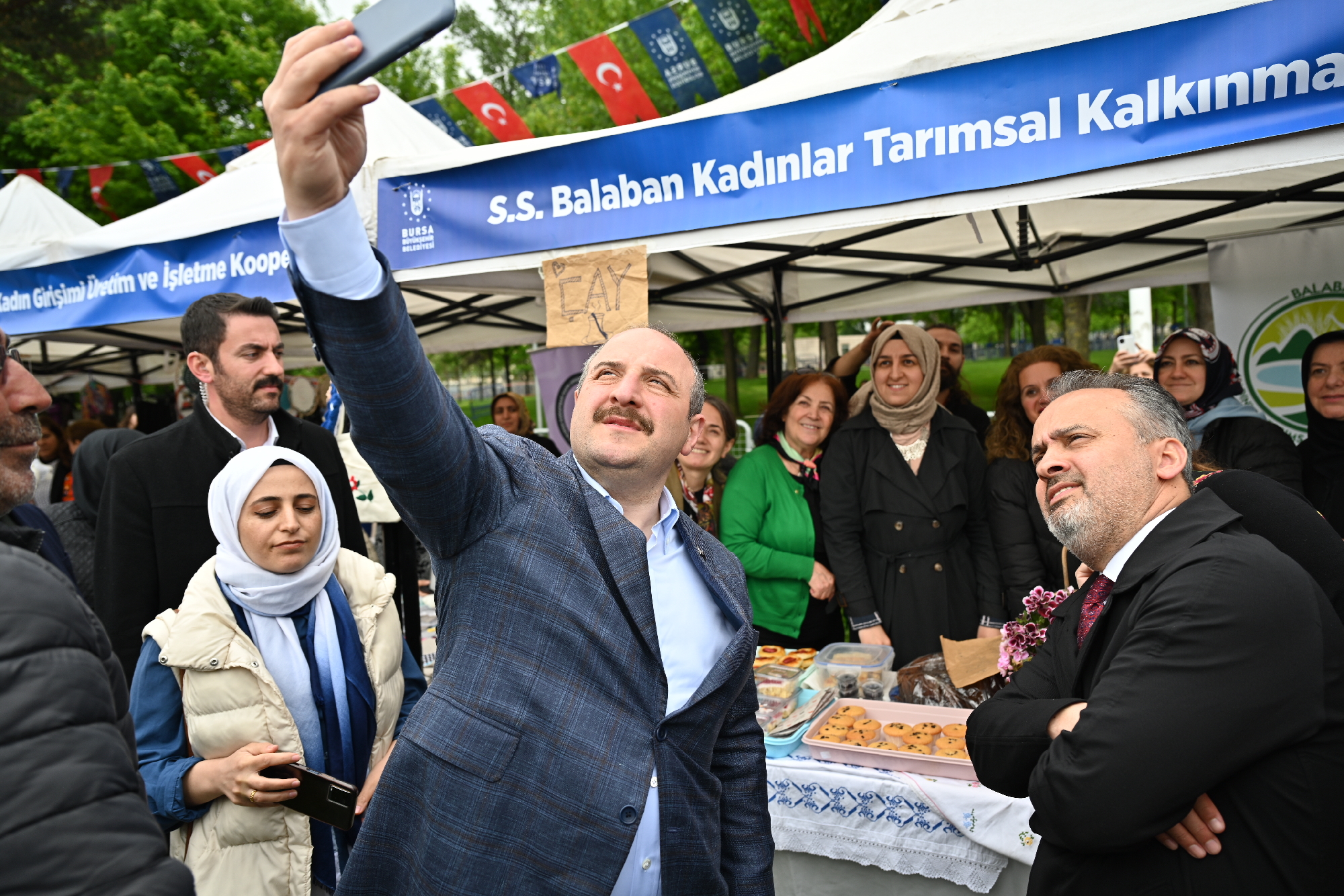 Bursa Büyükşehir Belediyesi tarafından Bursa Kültür Sanat ve Turizm Vakfı’nın katkılarıyla düzenlenen ‘Büyük Bursa Buluşması’ etkinliği, kadın kooperatifleri, Teknofest gençliği, gastronomi lezzetleri, gençlik ve engelli STK’ları ile spor kulüplerinin stantlarını Bursalılarla buluşturdu. Merinos Park’taki buluşmaya katılan Sanayi ve Teknoloji Bakanı Mustafa Varank ile Bursa Büyükşehir Belediye Başkanı Alinur Aktaş, önce alandaki stantları tek tek gezdi. Bursa’ya özgü lezzetlerin sergilendiği stantlarda Başkan Aktaş ve Bakan Varank tarafından vatandaşlara lokma ikram edildi.