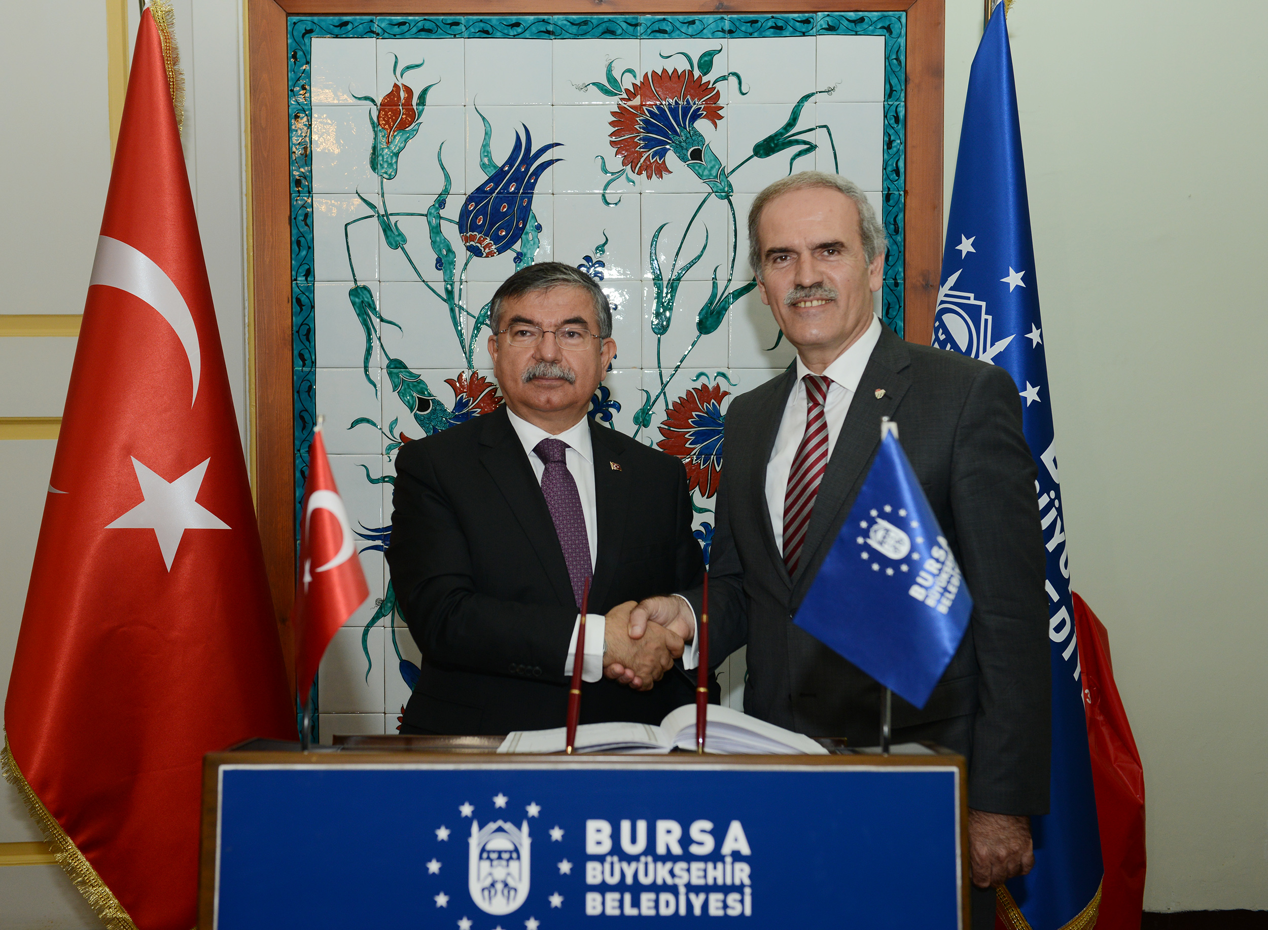 Milli Savunma Bakanı İsmet Yılmaz, Bursa’da Vali Münir Karaloğlu ve Büyükşehir Belediye Başkanı Recep Altepe’yi makamında ziyaret etti. Tarihi Belediye Binası’nda gerçekleştirilen ziyarette, Bursa’nın Büyükşehir Belediyesi’nin imza attığı çalışmalarla geçmiş yıllara oranla büyük değişim yaşadığını vurgulayan Bakan Yılmaz, Büyükşehir Belediye Başkanı Recep Altepe’yi tebrik etti.