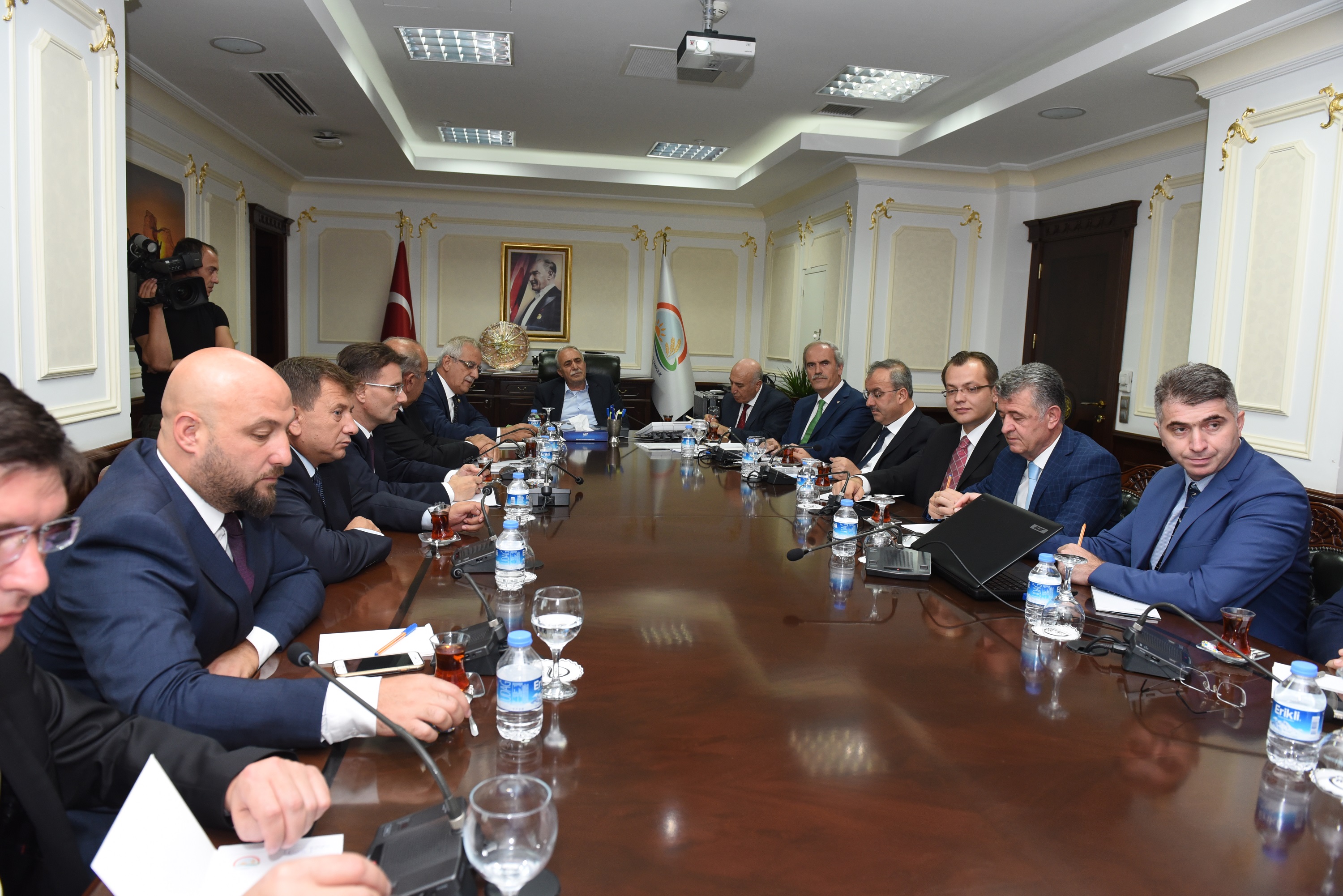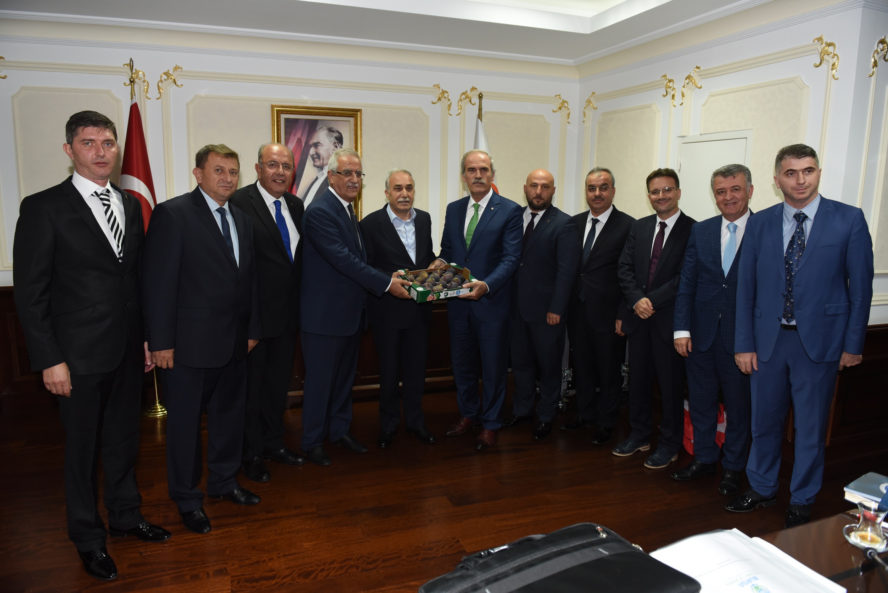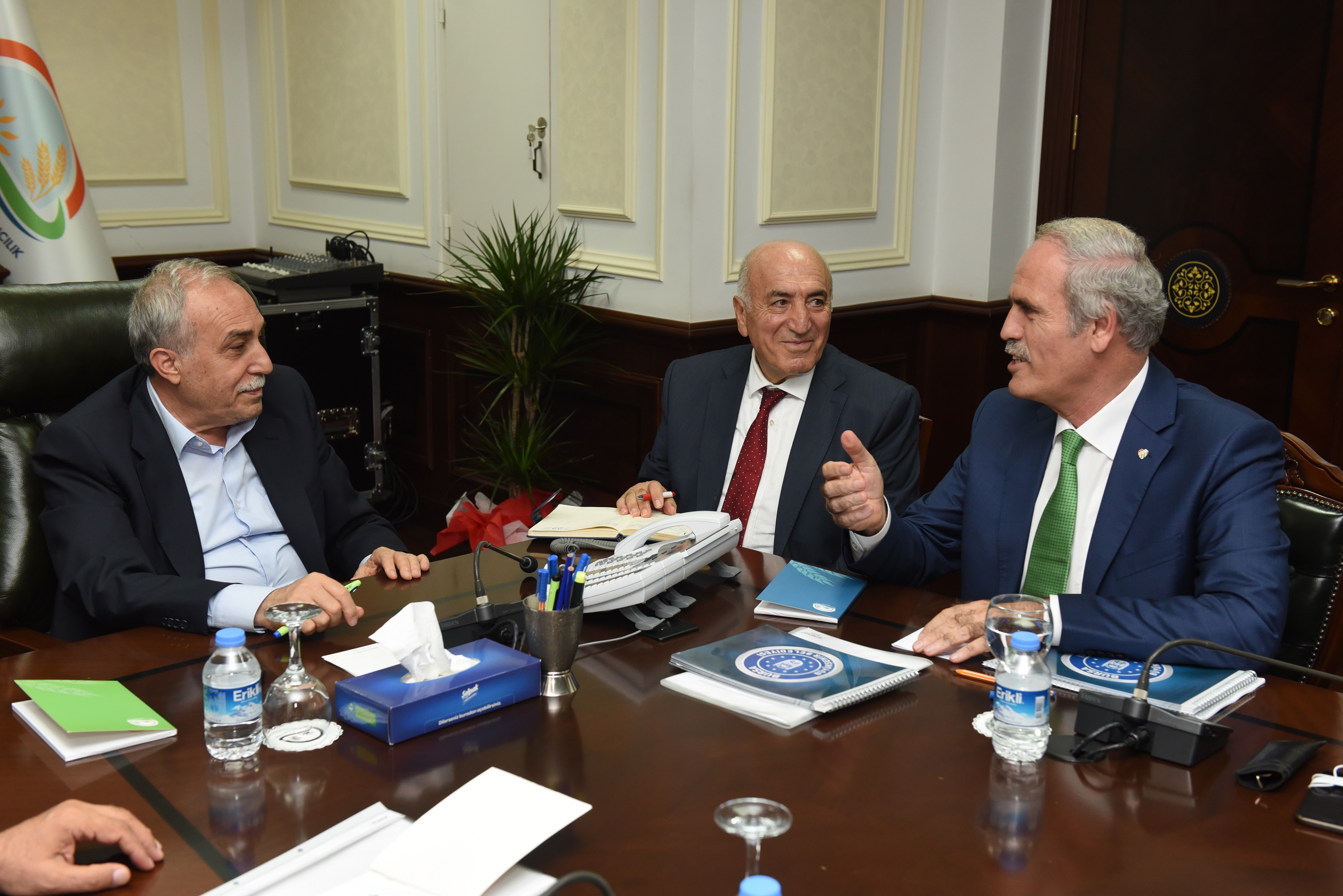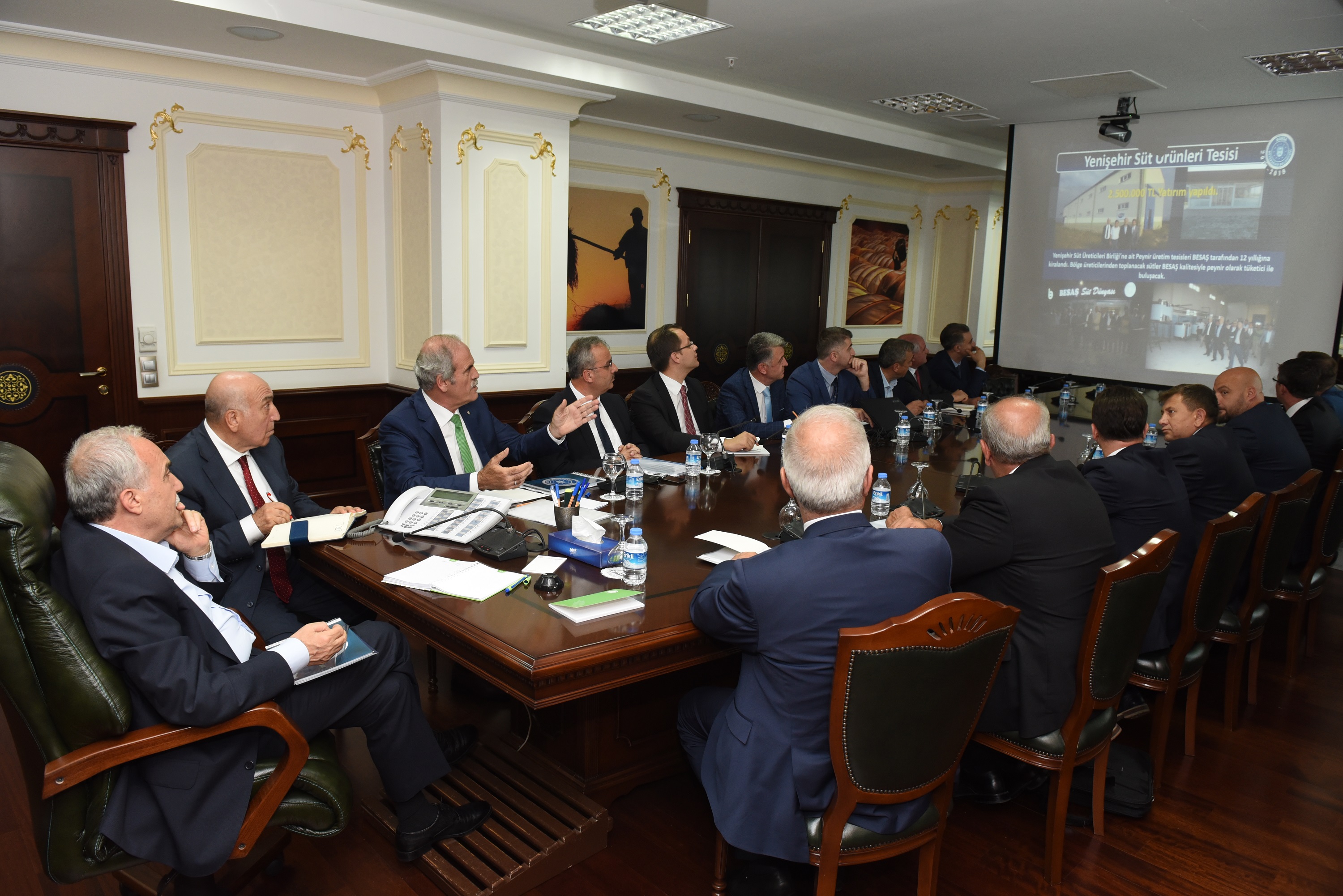 Keles’e kurulan Süt Ürünleri Tesisi ile kırsal kalkınma adımlarını bütünşehir uygulaması öncesinde atmaya başlayan Bursa Büyükşehir Belediyesi son üç yılda köyden kentin önüne geçmek ve çiftçinin refah seviyesini yükseltmek için hizmet çıkasını yükseltti. Tarımsal ürünleri katma değeri yüksek ürünlere dönüştürmek için her bölgenin ihtiyaçlarına göre tesisler kuran Büyükşehir Belediyesi, sulama göletlerinden tarla yollarına, hayvancılık desteğinden tohum ve ekipman yardımlarına hatta ürünlerin ambalajlanıp, pazarlanmasına kadar her alanda çiftçiye destek sağlıyor. Bu yatırımlarla Bursalı çiftçinin önünü açan Bursa Büyükşehir Belediyesi’nin kırsal kalkınma yatırımları Gıda Tarım ve Hayvancılık Bakanlığında masaya yatırıldı. Büyükşehir Belediye Başkanı Recep Altepe, makamında ziyaret ettiği Gıda Tarım ve Hayvancılık Bakanı Ahmet Eşref Fakıbaba’ya yaptıkları kırsal kalkınma yatırımlarıyla ilgili bir sunum yaptı.