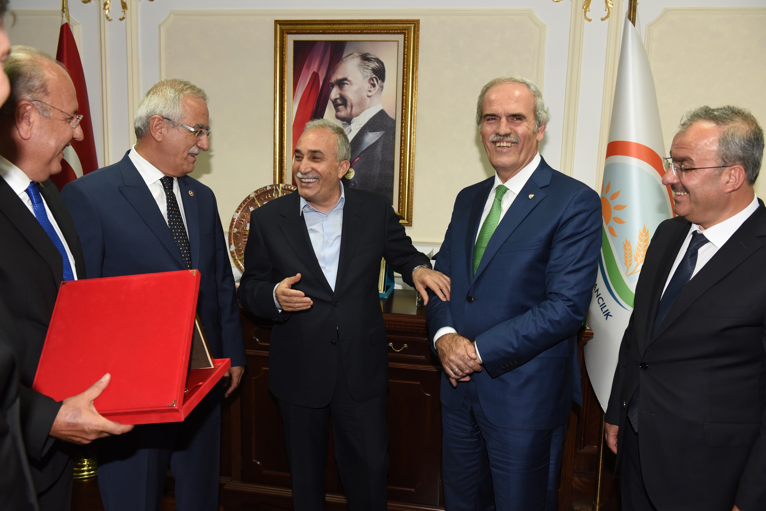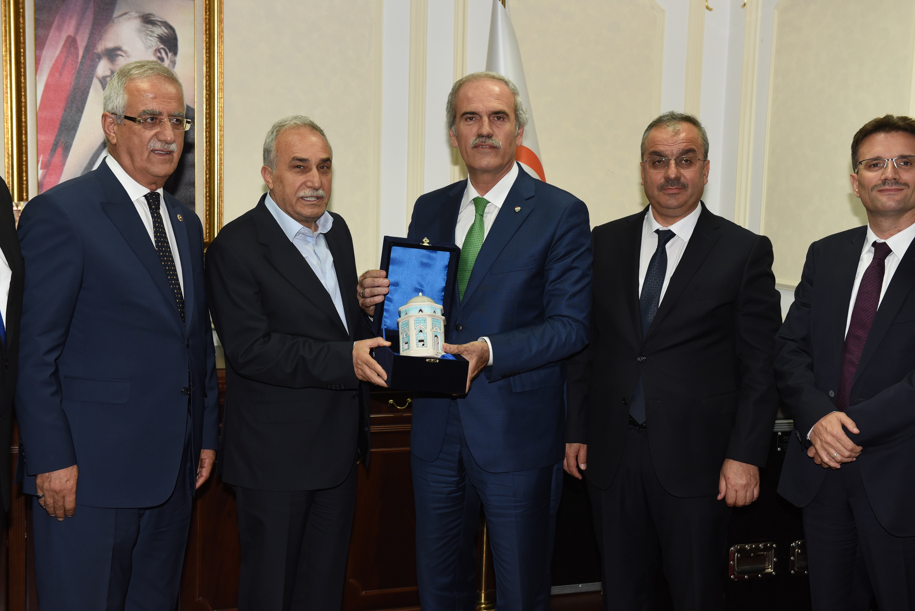 Gıda Tarım ve Hayvancılık Bakanı Fakıbaba ile yaptıkları toplantıyı değerlendiren Büyükşehir Belediye Başkanı Recep Altepe, kırsalın kalkınmanın sağlanması, köylünün refah seviyesinin yükseltilmesi ve köye tersine göçün başlatılması için Bursa’da yaptıkları yatırımlar hakkında detaylı bir sunum yaptıklarını belirtti. Sadece Bursa’nın değil Türkiye’nin sorunlarına çözüm getirecek olan Canlı Hayvan ve Et Borsası ile ilgili projenin, Büyükşehir Belediyesi ve Ticaret Borsası’nın ardından üçüncü ayağının Bakanlık olması gerektiğini ifade eden Başkan Altepe, “Bakanımız, tarım ve hayvancılığın gelişmesine yönelik gerçekleştirdiğimiz faaliyetleri gerçek anlamda takdir ettiklerini söylediler. Üretimin olduğu her noktaya destek verilmesinin ülke ekonomisine büyük katkı sağlayacağını, bu örneklerin Bursa’da olduğunu ve yakından takip ettiklerini bildirdiler. Canlı Hayvan ve Et Borsası projemizin bakanlıkla birlikte daha ileri safhalara ulaştırılması için bakanımızı Bursa’ya davet ettik. Tüm ekibiyle, müsteşarları, genel müdürleri ve danışmanlarıyla birlikte 16 – 17 Eylül tarihlerinde Bursa’da olacağını, hem bu projenin yapılacağı alanı hem de kırsal kalkınmaya yönelik çalışmaları yerinde inceleyeceklerini söylediler. Bu ziyaretin sonuçlarını da hep birlikte almış olacağız” diye konuştu.