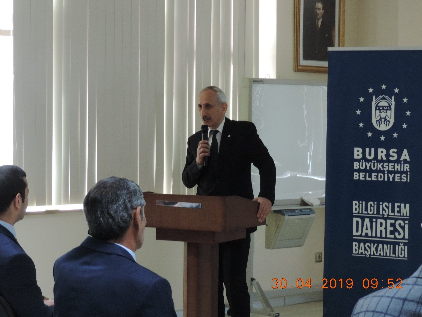 7099 Sayılı Yatırım Ortamının İyileştirilmesi Amacıyla Bazı Kanunlarda Değişiklik Yapılmasına Dair Kanun ile tüm belediyelerin İçişleri Bakanlığı’nın kuracağı e-belediye bilgi sistemine geçmesi hedeflenirken, Bakanlık yöneticileri Bursa Büyükşehir Belediyesi tarafından başarıyla uygulanan e-belediye sistemini incelemek için Bursa’ya geldi. Bursa Büyükşehir Belediyesi’nin kendi kaynakları ile geliştirdiği e-Belediye Uygulaması modülleri incelenirken, ziyarette karşılıklı bilgi alışverişinde bulunuldu. Ziyaret kapsamında Bursa Büyükşehir Belediyesi Bilgi İşlem Dairesi Başkanlığı tarafından İçişleri Bakanlığı e-Belediye Bilgi Sistemi Projesi bilgilendirme ve farkındalık toplantısı düzenlendi. Toplantıda; Bursa Büyükşehir Belediyesi Bilgi İşlem Dairesi Başkanı Kemal Alioğlu tarafından 7099 sayılı kanun ile yapılan değişiklikler anlatıldı. İçişleri Bakanlığından gelen Proje Koordinatörü Büşra Akyılmaz, Analiz Uzmanı Ali İhsan Tokdemir, Proje Danışmanı Ogün Köymen ve Yardım masası personeli Kadir Akgül tarafından da proje kapsamındaki modüller, projenin faydaları, belediyelerin geçiş sürecinde yapacakları ve sistem ile ilgili bilgilendirmeler yapıldı. Toplantıya; Bursa Büyükşehir Belediyesi birimleri, belediye şirketleri ve bağlı kuruluşlar, ilçe belediyeleri ile mahalli idare birliklerinin temsilcileri katıldı. Ayrıca Muğla Büyükşehir Belediyesi ve Muğla Su ve Kanalizasyon İdaresi’nden bir heyette toplantıda hazır bulundu.