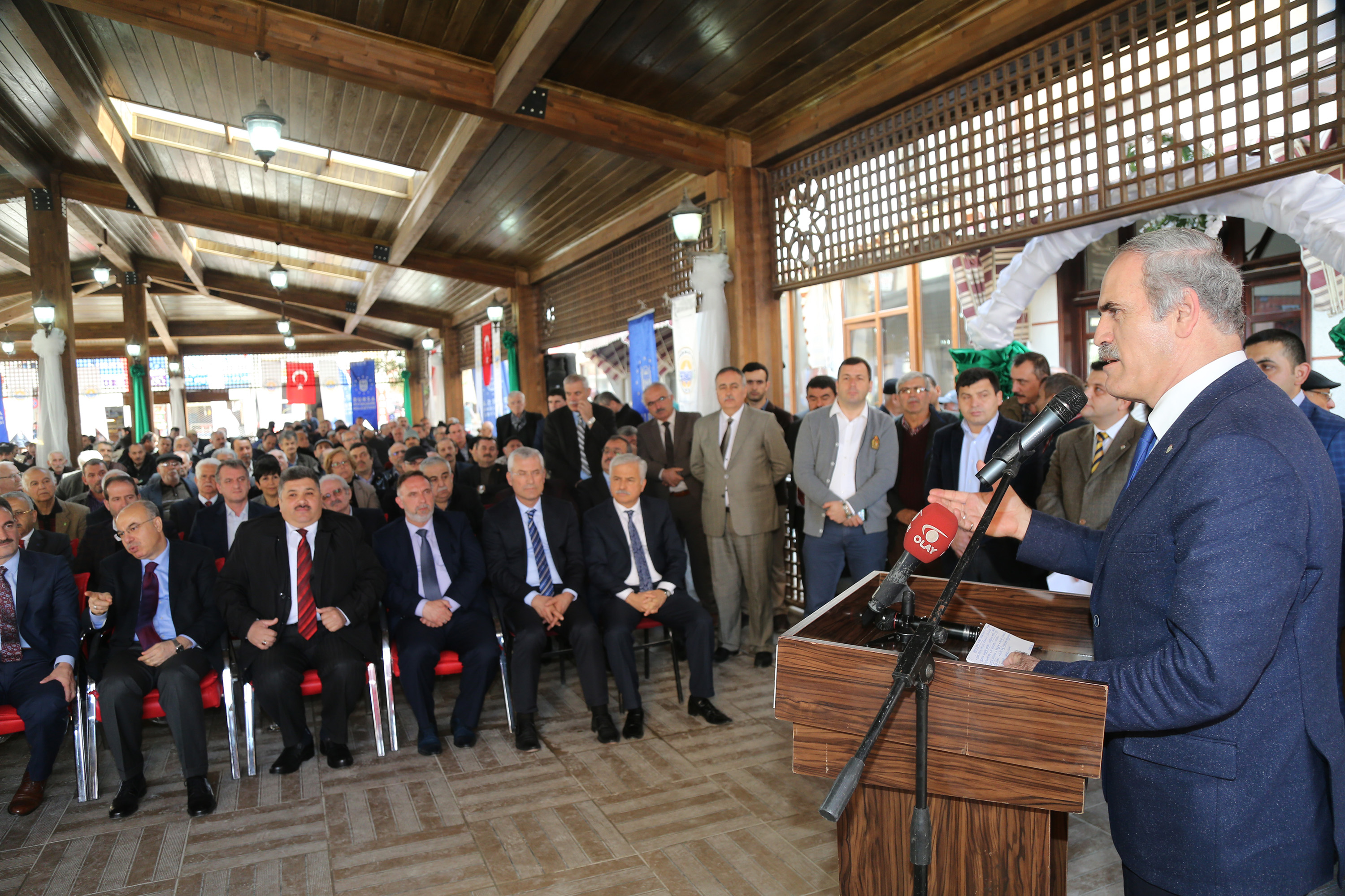 Büyükşehir Belediye Başkanı Recep Altepe, törende yaptığı konuşmada, ‘Bütünşehir uygulamasına neden geçildiği’ sorusunun cevabının ilçe ve köylere kadar ulaşan hizmetler olduğunu söyledi. Gemlik Belediyesi’nin bile bir köye hizmet götürmesine imkan yokken, bugün hem Gemlik Belediyesi’nin hem Büyükşehir Belediyesi’nin ulaşımdan altyapıya, spordan tarihi mirasa kadar her alanda en ücra köşeye kadar hizmet götürdüğüne dikkat çekti. Daha önce kırsala hizmet götüren Özel İdare’nin il genelinde ulaşıma 8 milyon TL yatırım yapabildiğini hatırlatan Başkan Altepe, “Biz ise sadece yeni bağlanan 10 ilçemizde 1 yıl içinde 170 milyon TL’lik ulaşım yatırımı yaptık. En az yaptığımız yol yatırımı 11 – 12 milyon TL. İşte bunun için Bütünşehir uygulamasına geçildi. Gemlik körfezinin kirlilikten arınması için 1 yılda 400 milyon liralık yatırım yaptık. Yalı Konak restorasyonu bitti, zeytincilik müzesi ile ilgili kamulaştırmaları yapıyoruz. Nerede bir tarihi eser varsa hepsini ayağa kaldırıyoruz. Yalova yolu kenarındaki termal suyu değerlendirmek için Gemlik’e güzel bir termal tesis kazandırıyoruz. Kumla’dan Narlı’ya kadar bütün sahilimizi ilmek ilmek işliyoruz. Sadece sahillerimize 100’lerce milyonluk yatırım yapacağız. Bugün de Gemlik’in kalbinin attığı Balık Pazarı’nı ilçemize yakışır hale getirdik. Eski uygulamadan kaynaklı rahatsızlıklar vardı. Buranın daha estetik, ferah ve sıcak bir ortam haline gelmesi isterdi. Ahşap uygulamalarıyla güzel bir kentsel tasarım projesini Gemlik’e kazandırmış olduk. Hayırlı olsun” diye konuştu.