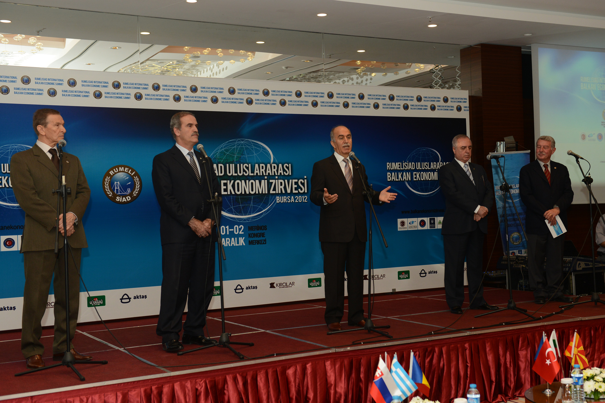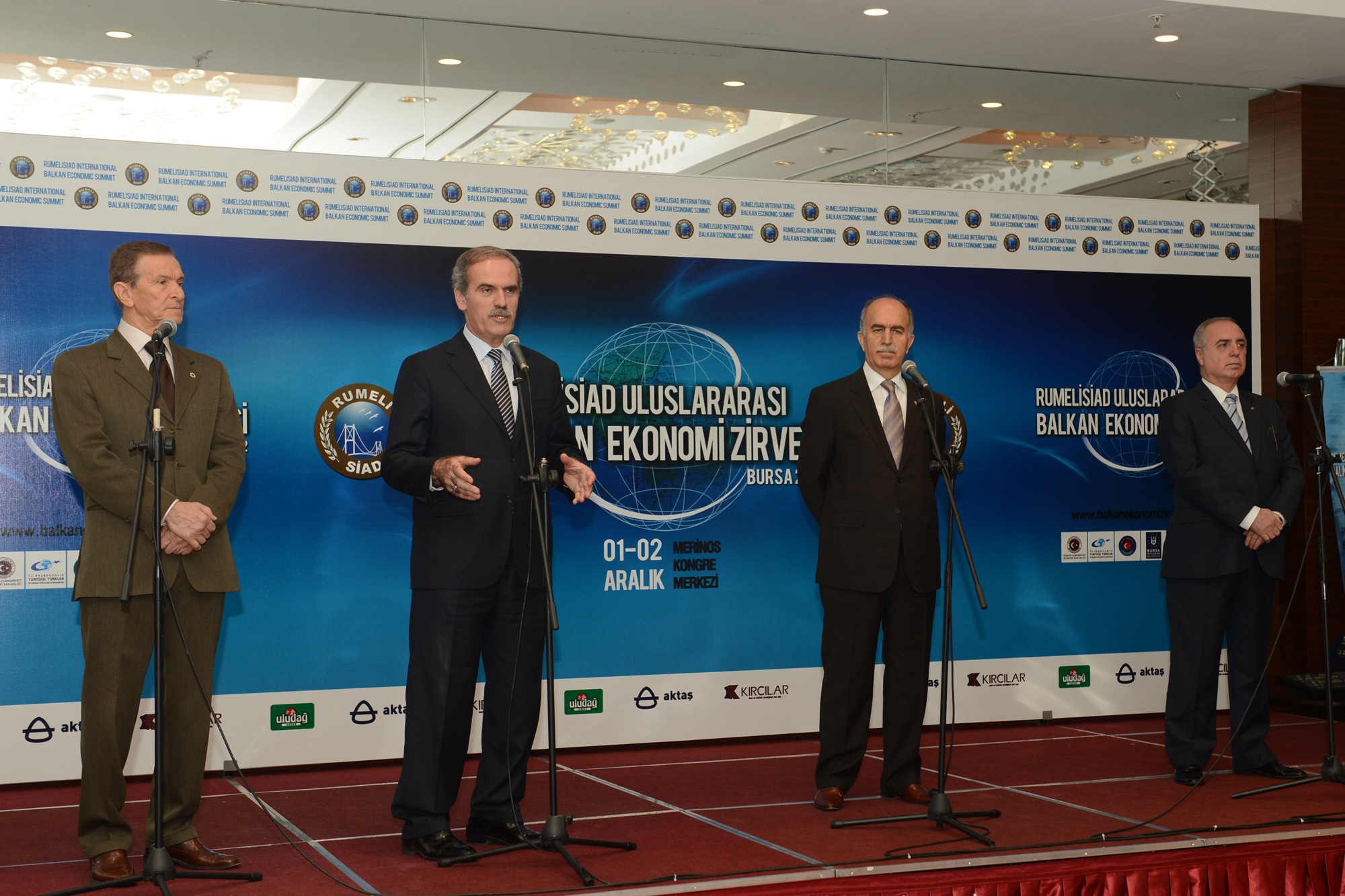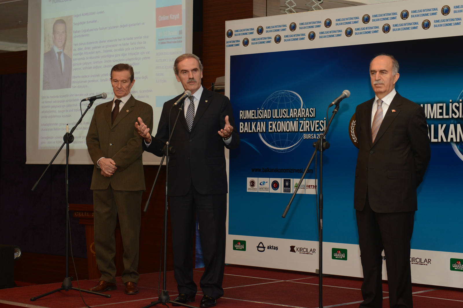 Balkan savaşlarının 100. yılı etkinlikleri kapsamında 12 Balkan ülkesi arasındaki ekonomik, sosyal ve kültürel ilişkilerin geliştirilmesi amacıyla düzenlenen ‘RUMELİSİAD Uluslararası Balkan Ekonomi Zirvesi’nin tanıtım toplantısı Çelik Palas Otel’de yapıldı. Atatürk Kongre Kültür Merkezi’nde 1 Aralık’ta gerçekleştirilecek olan zirveye Başbakan Yardımcısı Bülent Arınç, Ekonomi Bakanı Zafer Çağlayan’ın yanı sıra Arnavutluk, Bosna Hersek, Bulgaristan, Hırvatistan, Makedonya, Romanya, Slovenya, Sırbistan, Kosova, Karadağ ve Yunanistan’dan da bakanlıklar düzeyinde katılım olması bekleniyor. Proje ortakları arasında yer alan Vali Şahabettin Harput, Büyükşehir Belediye Başkanı Recep Altepe, BTSO Başkanı Celal Sönmez ile RUMELİSİAD Başkanı Mustafa Kırcı ve Proje Başkanı Şahap Aktaş, zirvenin teknik detayları ve beklentilerle ilgili olarak bilgilendirme yaptı.