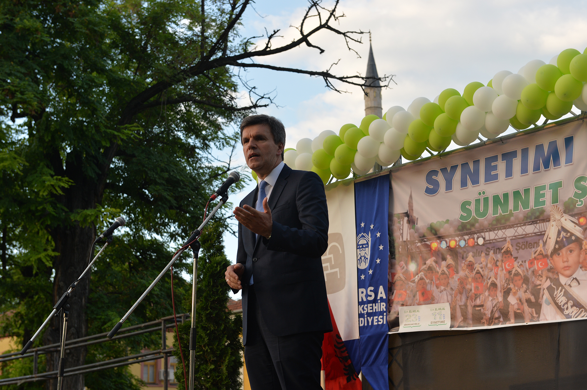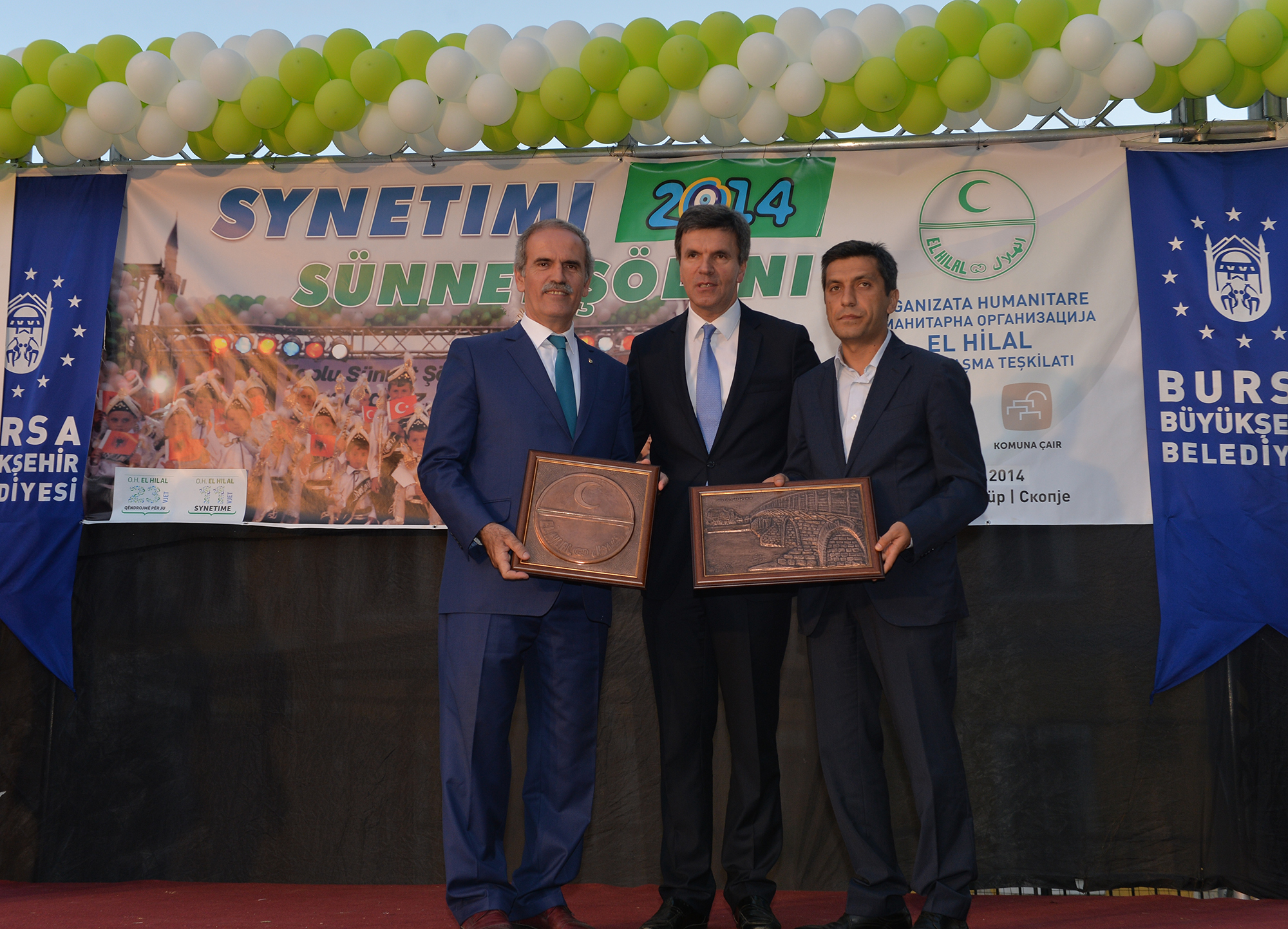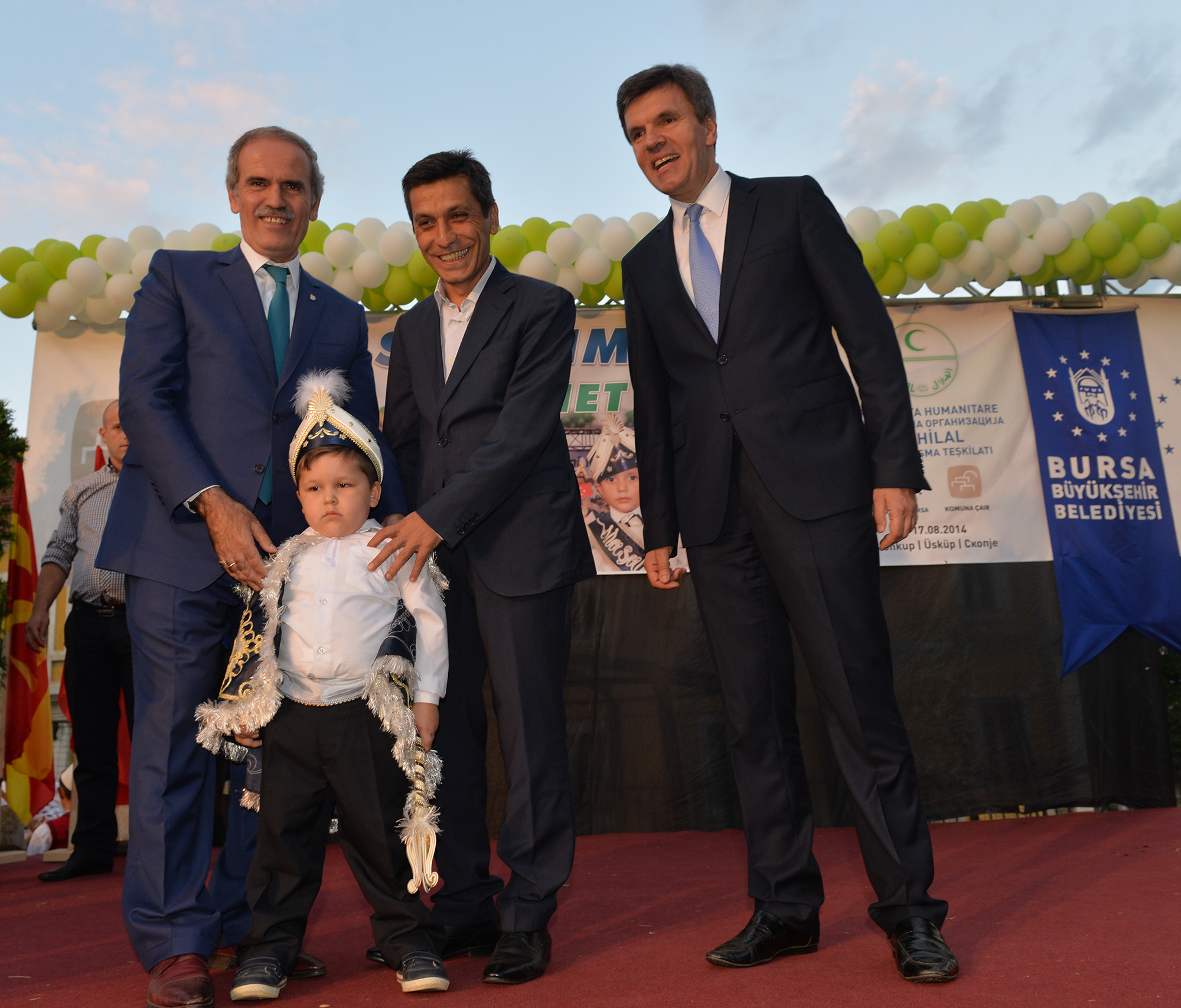 Tarihi ve kültürel mirası ayağa kaldırma çalışmaları kapsamında Osmanlı coğrafyasında yer alan ülkelerdeki ecdat yadigârı eserleri bir bir ayağa kaldıran Bursa Büyükşehir Belediyesi, Makedonya’nın başkenti Üsküp’te düzenlediği sünnet şöleni geleneğini bu yıl da hayata geçirdi. El Hilal Derneği ve Üsküp Çayır Belediyesi tarafından 11 yıldır düzenlenen ve son 7 yıldır da Bursa Büyükşehir Belediyesi’nin destekleriyle gerçekleşen sünnet şöleninin dokuzuncusu Üsküp Kalesi önünde yapıldı. Törene Bursa Büyükşehir Belediye Başkanı Recep Altepe’nin yanı sıra AK Parti İl Başkanı Cemalettin Torun, El Hilal Yardımlaşma Teşkilatı Başkanı ve Makedonya Kültür Bakanlığı Müsteşarı Behicüddin Şehabi, Çayır Belediye Başkanı İzzet Meciti, Bursa ve Üsküp’ten gelen davetliler ve sünnet çocuklarının aileleri katıldı.