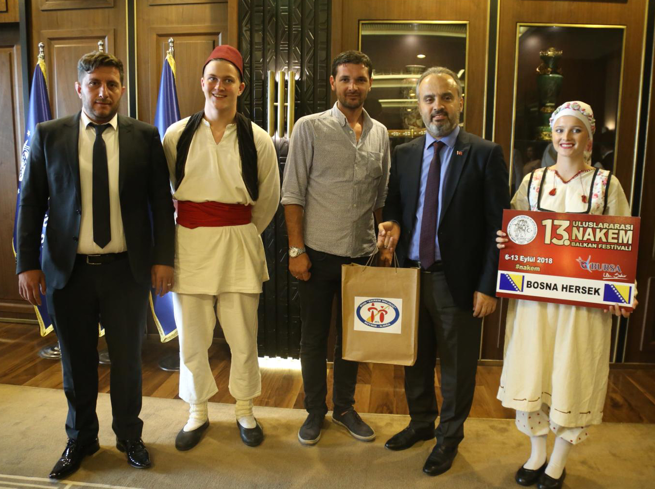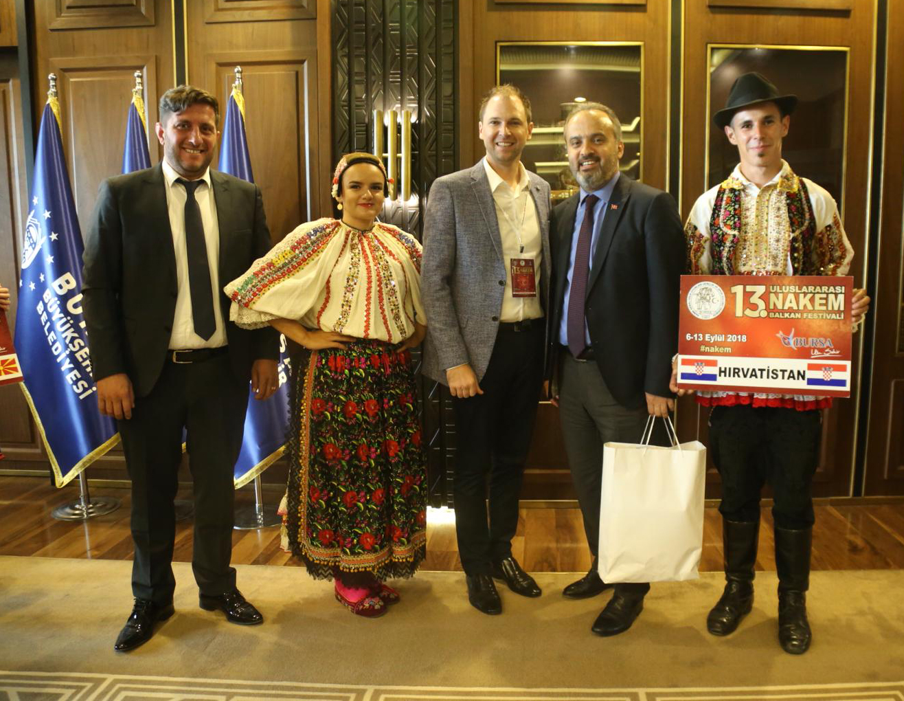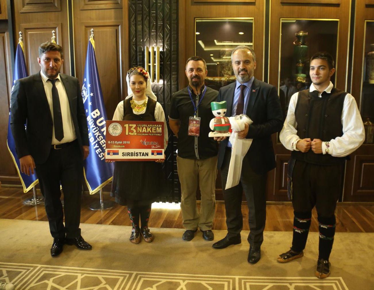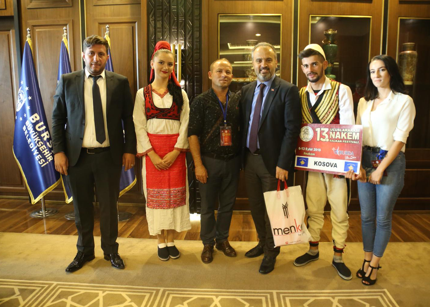Festival nedeniyle şehre gelen halk dansları ekipleri, Bursa Büyükşehir Belediye Başkanı Alinur Aktaş’ı ziyaret etti. Başkan Aktaş, Büyükşehir Belediyesi Başkanlık makamında bir araya geldiği konuklarına Bursa’yı tanıttı, kentle ilgili sorularını cevapladı. Aktaş, Balkan ülkelerinden çok sayıda vatandaşın yaşadığı Bursa’nın, 3 milyona yakın nüfusuyla, farklı kültürleri bir arada bulundurduğunu söyledi. Geleneksel değerlerin yaşatılmasının güzelliğine vurgu yapan Başkan Aktaş, konuklarına, Bursa’ya özgü hediyeler verdi.