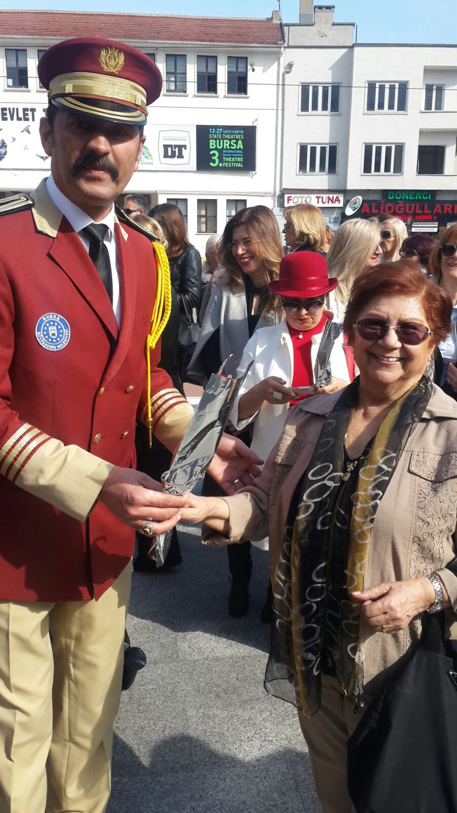 Bursa Büyükşehir Bando Takımı olarak her zaman farkındalık oluşturmayı amaçladıklarını dile getiren Bando Şefi Şaban Gülşen, “Bu programda da sıradan bir şekilde İstiklal Marşı’nı çalıp, ayrılmak istemedik. Bir gün önceden çiçeklerimizi hazırlayıp, bayanlara böyle bir jest yapmak istedik. Çiçek dağıttığımız kadınlar, çok mutlu oldu, bize çok teşekkür etti. Biz de Bando Takımı olarak tüm kadınlarımızın kadınlar gününü kutluyoruz” dedi.