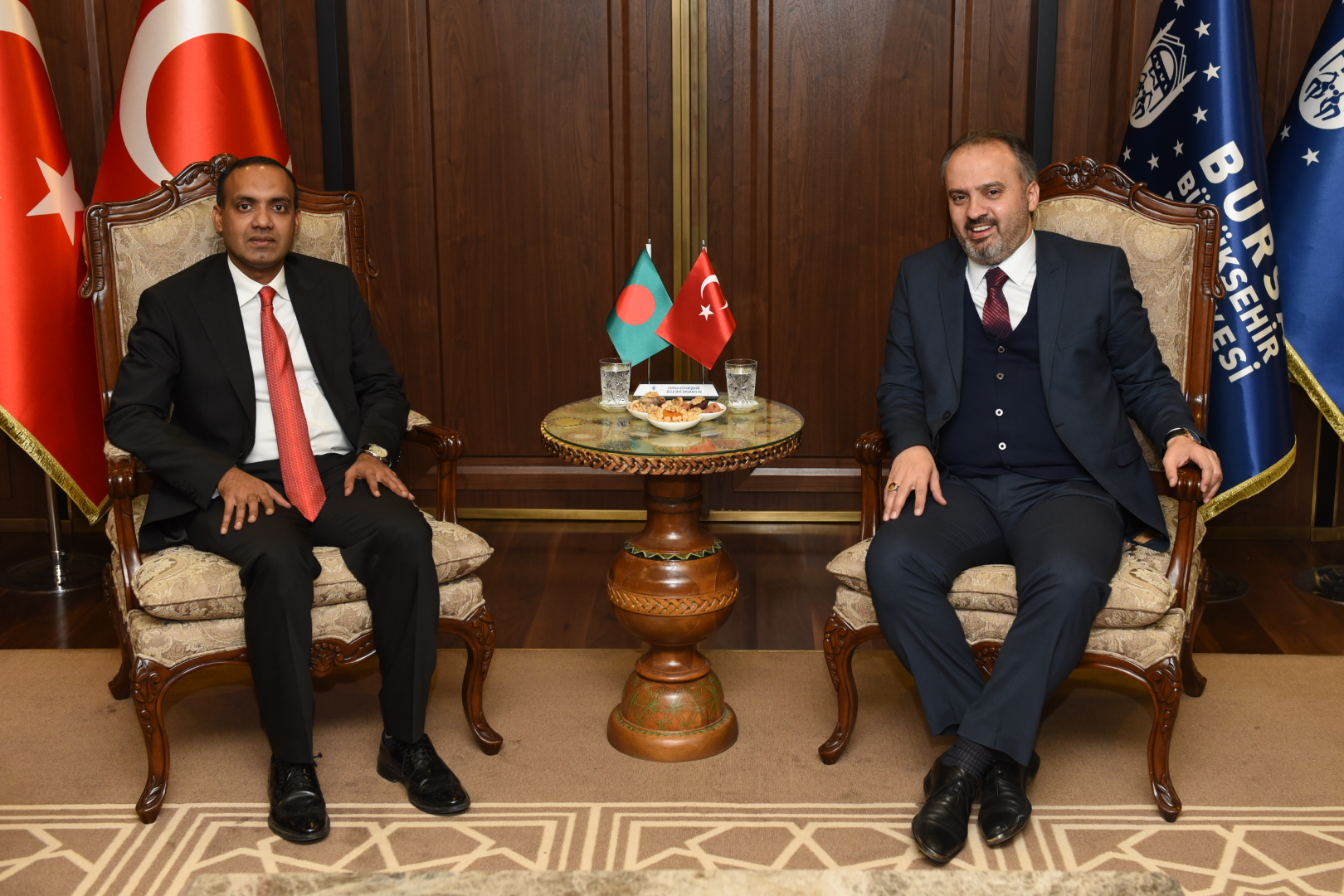 Bursa Büyükşehir Belediye Başkanı Alinur Aktaş, Bangladeş Başkonsolosu Mohammad Monirul İslam ile Büyükşehir Belediyesi’nin hizmet binasındaki makamında bir araya geldi. Başkan Aktaş, Başkonsolos İslam’a Bursa’yı tanıttığı görüşmede, “Bangladeş, mesafe olarak bize çok uzak olsa da gönlümüzün beraber attığı, sevdiğimiz bir ülke” dedi.