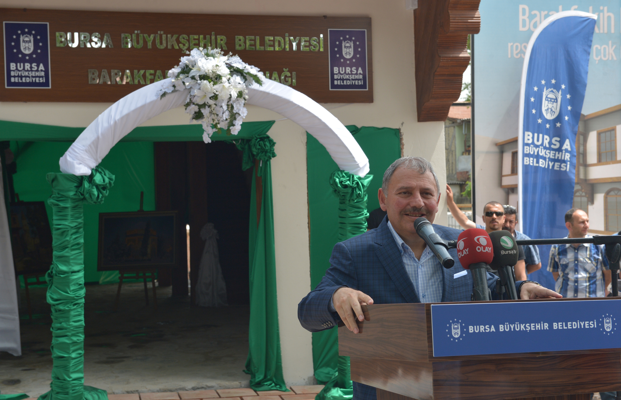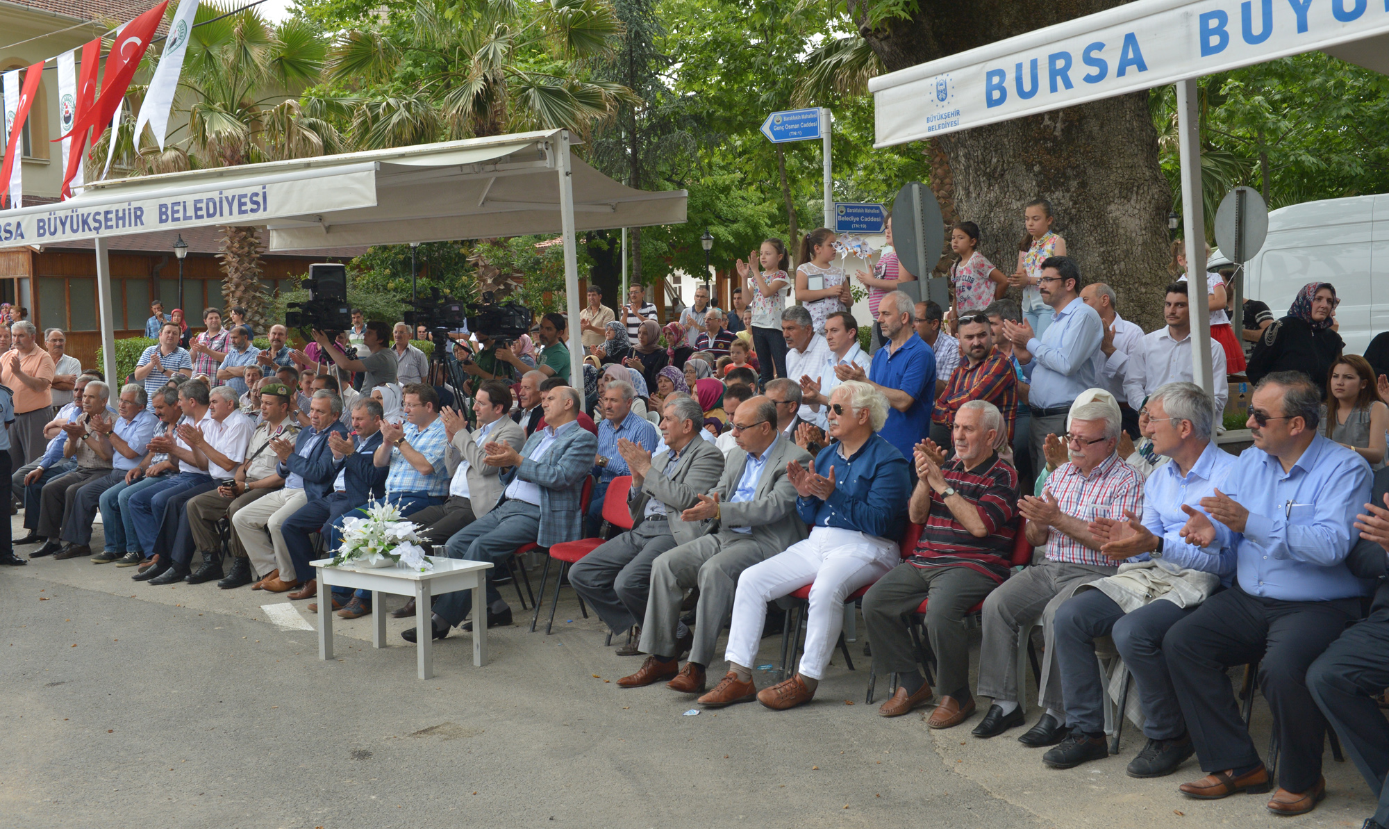 Barakfakih Hazretlerini anma ve pilav günü etkinlikleri kapsamında Barakfakih Hazretlerinin mezarı başında düzenlenen anma töreninin ardından Mahalle Konağı’nın açılış töreninde bölge halkına seslenen Büyükşehir Belediye Başkanı Recep Altepe, hayata geçirdikleri yatırımlarla şehrin doğusunun da yıldızının parladığını söyledi. Gerek raylı sistem yatırımları gerekse spor tesisleri ile Kestel’e yatırımlarının hız kesmeden sürdüğünü hatırlatan Başkan Altepe, yeni yasa ile birlikte kırsal kalkınmanın da en önemli öncelikleri arasına girdiğini kaydetti. Tarla yollarının düzenlenmesinden, sulama sistemlerine, ürün kalitesinin artırılmasında ambalajlama ve pazarlamaya kadar artık her alanda üreticinin yanında olduklarını ifade eden Başkan Altepe, “Nasıl 26 dalda Türkiye’ye örnek olduysak, kırsal kalkınmada da örnek olacağız. Bunun için çalışmalarımızı ilk günden başlattık ve Kırsal Kalkınma Daire Başkanlığı ve tarım şirketini ilk kuran belediye olduk. Diğer belediyeler şimdi bizim yaptığımız uygulamaları takip ediyor. Bugün hizmete açtığımız mahalle konağı da ilçenin özellikle sosyal ve kültürel yapısına değer katması açısından çok önemli. Ben bu konağın bölgeye kazandırılmasında emeği geçen herkese teşekkür ediyorum. Barakfakih için Kestel için hayırlı olsun” diye konuştu.