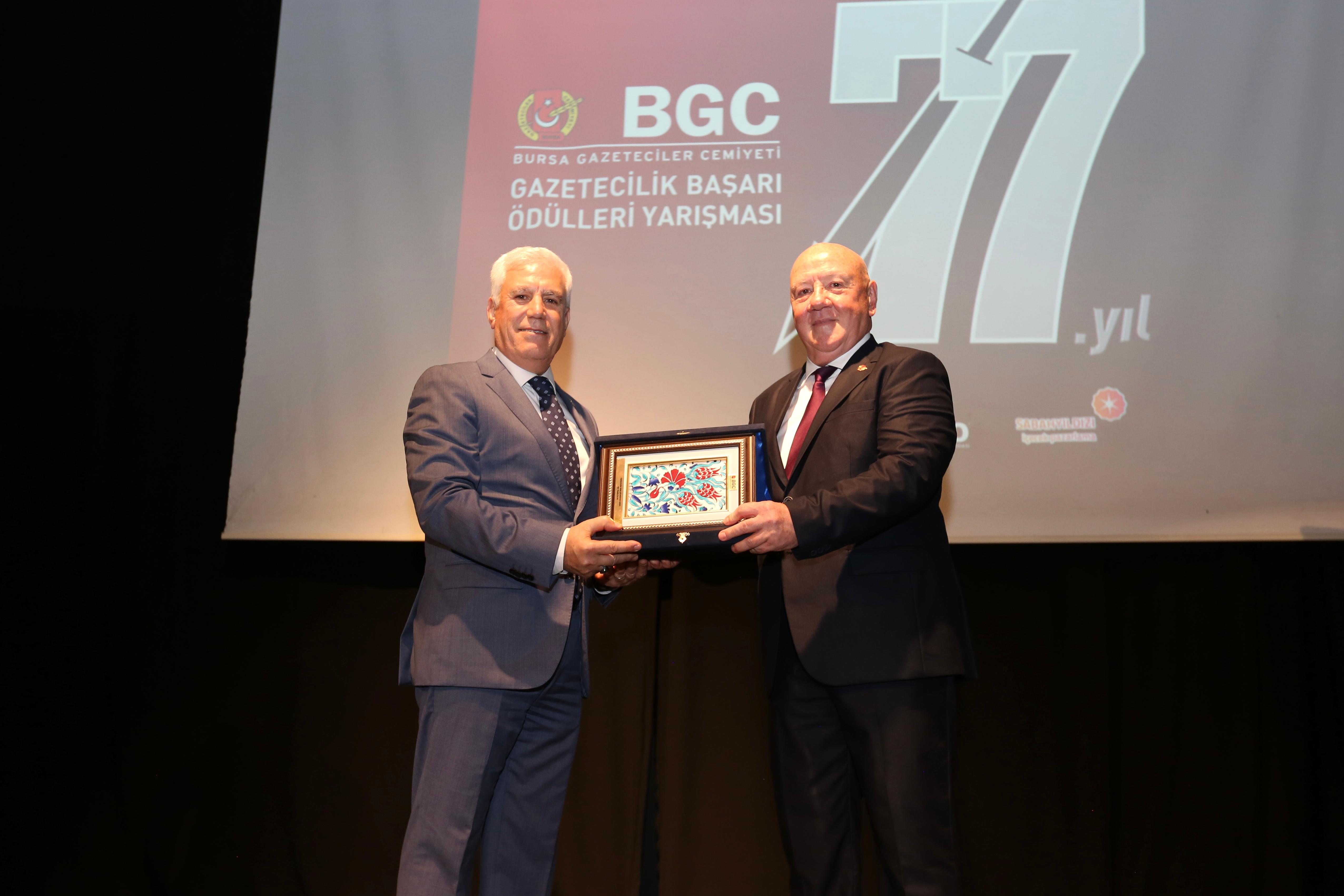 Gecede konuşan Büyükşehir Belediye Başkanı Mustafa Bozbey, BGC’nin 77 yıldır demokrasi kültürünün gelişmesi, genç gazetecilerin özendirilmesi ve yerel gazeteciliğin güçlendirilmesi amacıyla mücadele verdiğini söyledi. Gazetecilik mesleğini gazeteci olarak sürdüren herkesi tebrik eden Başkan Bozbey, “İfade özgürlüğü, toplumların temel taşlarından biridir. Toplumların ilerlemesi, gelişmesi ve daha verimli hale gelmesi ifade özgürlüğünün korunmasıyla mümkündür. İfade özgürlüğü, toplumsal ve siyasal hayatın sağlıklı bir şekilde işlemesinin de teminatıdır. Özgür bir basın, toplumun aynasıdır. Halkın da sesidir. Bursa basını tarihi boyunca önemli rol üstlenmiştir. Bu nedenle Bursa basınına ‘2. Babıali’ ismi verilmiştir. Bursa basını, gazetecilik mesleğine sayısız değerli isimler kazandırmıştır. Bu kutsal görevi layıkıyla yerine getiren basın mensuplarını kutluyorum. BGC Başarı Ödülü Yarışması’nda ödül alan tüm gazetecileri yürekten kutluyorum” dedi.