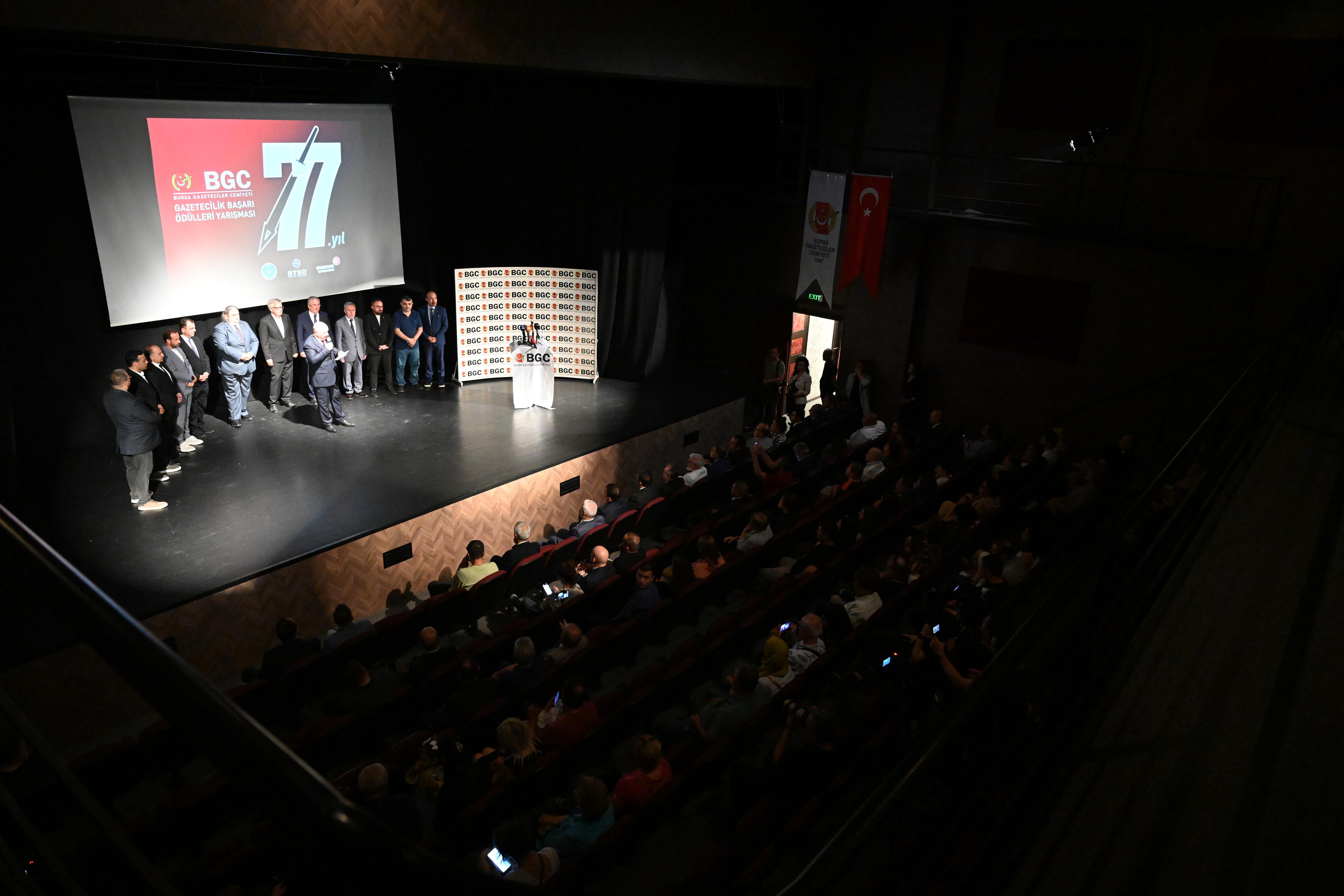 Bursa Gazeteciler Cemiyeti’nin 12 dalda düzenlediği yarışmaya bu yıl 114 eser başvurdu. 2023 yılında yayınlanan 114 eseri tek tek değerlendiren 6 kişilik jüri, toplam 12 esere başarı, 8 esere de mansiyon ödülü verilmesini kararlaştırdı. Basın Kültür Sarayı’ndaki ödül törenine, Bursa Büyükşehir Belediye Başkanı Mustafa Bozbey’in yanı sıra Bursa Milletvekilleri Hasan Öztürk ve Selçuk Türkoğlu, Büyükşehir Belediyesi Genel Sekreter Yardımcısı Mehmet Yıldız, Büyükşehir Belediyesi Basın, Yayın ve Halkla İlişkiler Dairesi Başkanı Güney Özkılınç, BGC Başkanı Nuri Kolaylı, BGC yönetim kurulu üyeleri ve basın mensupları katıldı.