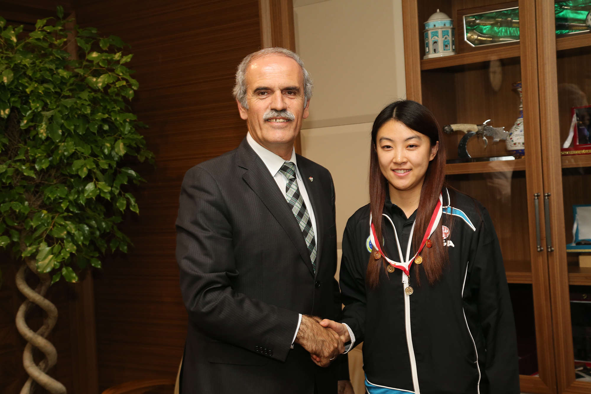 BURSA - Büyükşehir Belediye Başkanı Recep Altepe, Belediyespor Kulübü’nün Avrupa Şampiyonu masa tenisçisi Melek Hu ve Dünya Gençler Masa Tenisi Şampiyonasında Türkiye’yi temsil edecek olan Simay Kulakçeken’i altın ile ödüllendirdi.