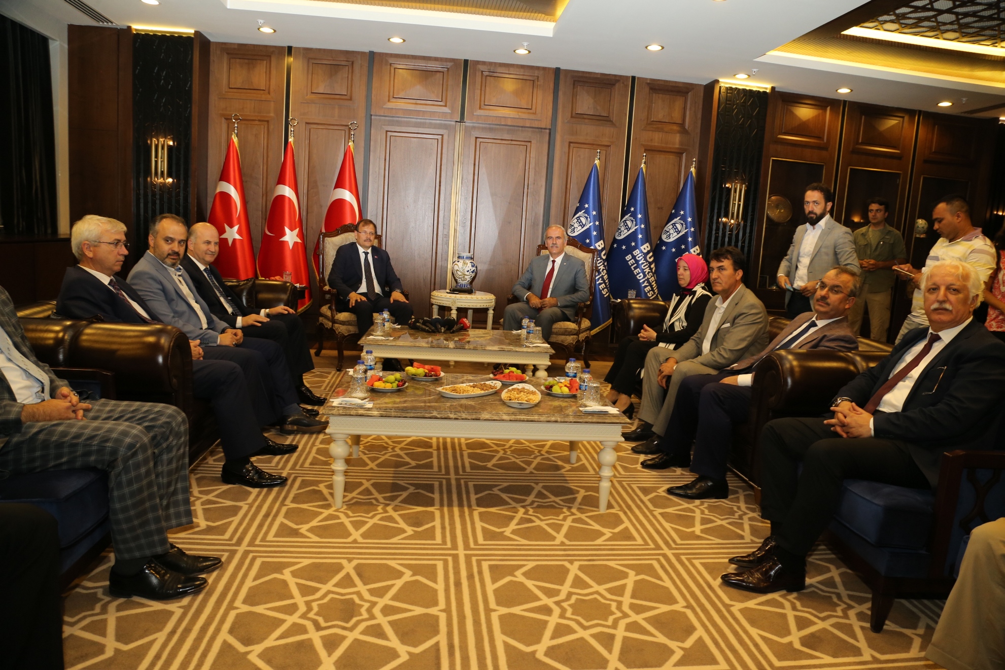 Ankara Yolu’ndaki başkanlık binasında gerçekleşen görüşmeye; Başbakan Yardımcısı Hakan Çavuşoğlu ve Büyükşehir Belediye Başkanı Recep Altepe’nin yanı sıra AK Parti İl Başkanı Cemalettin Torun, Bursa Milletvekili Emine Yavuz Gözgeç, Osmangazi Belediye Başkanı Mustafa Dündar ve İnegöl Belediye Başkanı Alinur Aktaş da katıldı.