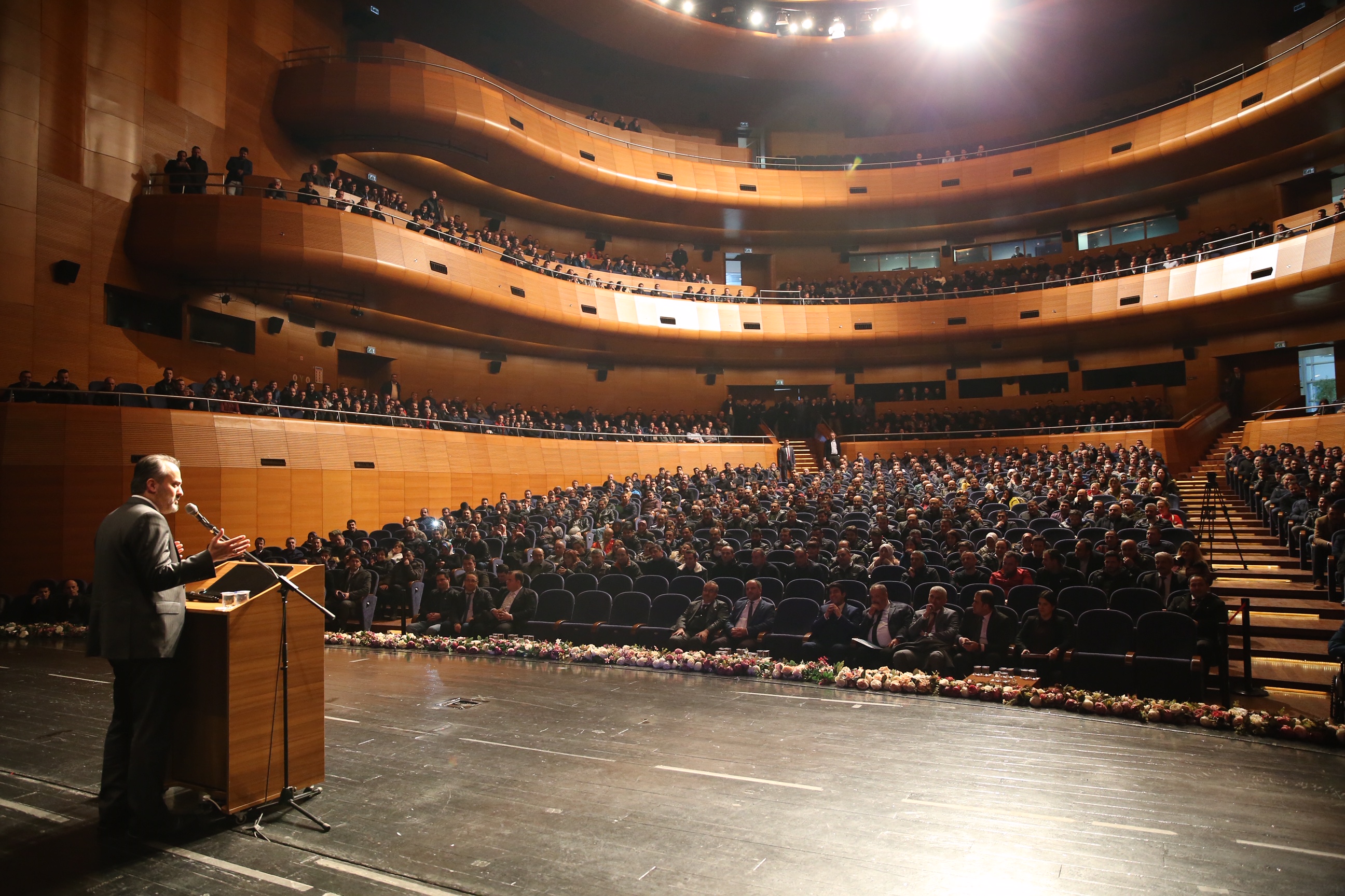 Büyükşehir Belediye Başkanı Alinur Aktaş, Bursa’ya hizmet götürürken, hem projelerin hem de çalışanların mağdur olmaması için büyük bir gayret ile hareket ettiklerini ifade etti. Vatandaşın hizmet, ulaşım ve kentsel dönüşüm gibi kronik sorunlar konusunda acil çözüm beklediğini kaydeden Başkan Aktaş, tüm bunların üstesinden belediye personelinin desteğiyle geleceklerini anlattı. Bursa’nın vizyon projelerinin hazır olduğunu, bunu düzenleyecekleri toplantı ile 3 Mart Pazar günü yine Merinos AKKM’de kamuoyuna lanse edeceklerini belirten Başkan Aktaş, “Elimde sihirli değnek yok. Bir iş başaracaksam, sizlerle başaracağım. İnanın 5-6 konu var. Bunlarla ilgili dönüşümü sağladığımızda, bu şehrin talihini de tarihini de hep birlikte değiştireceğiz. Bu manada sizin destek ve katkınıza ciddi manada ihtiyacım var” dedi.