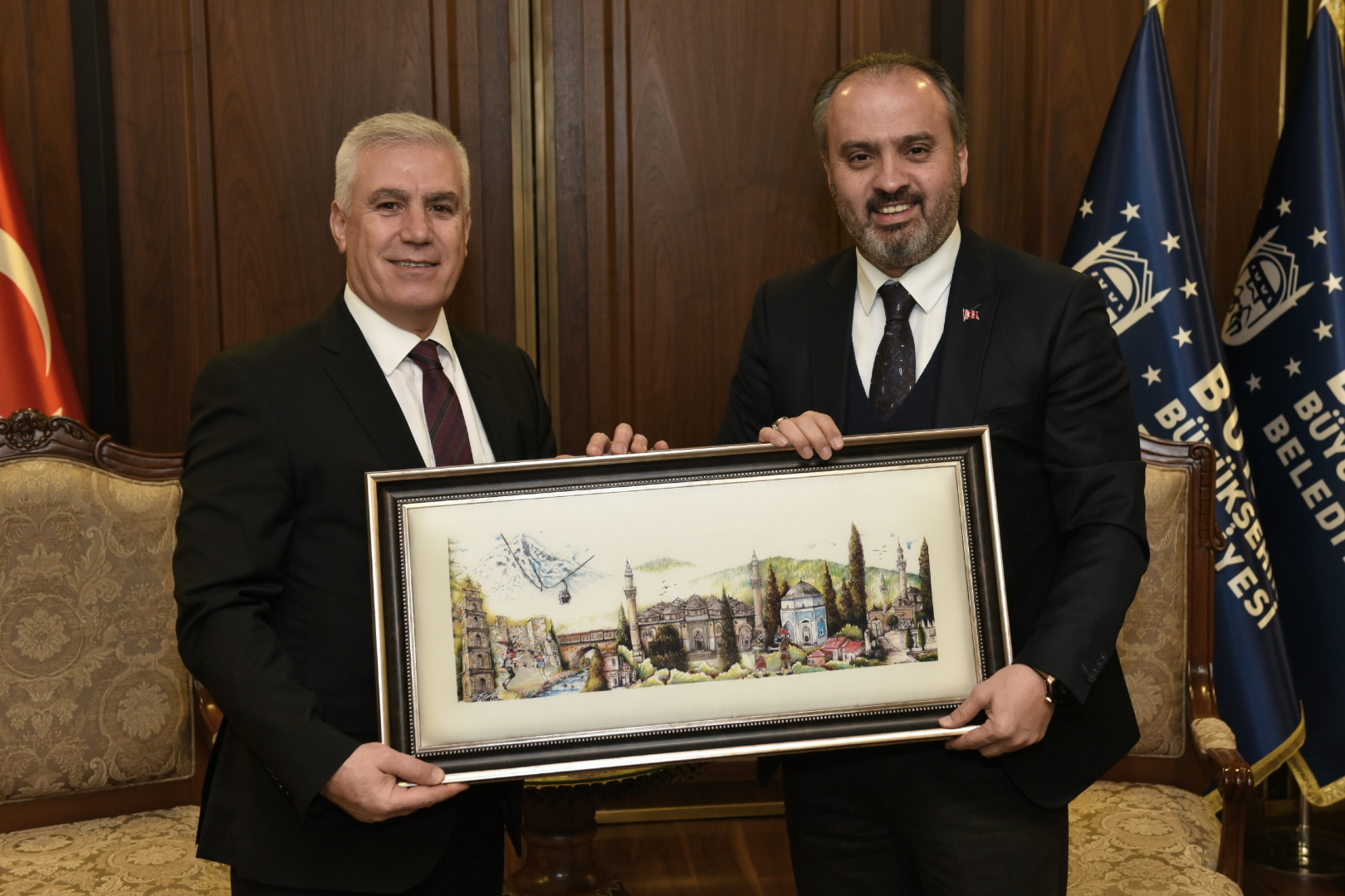 Büyükşehir Belediye Başkanı Alinur Aktaş, Nilüfer Belediye Başkanı Mustafa Bozbey’i ağırladı.
