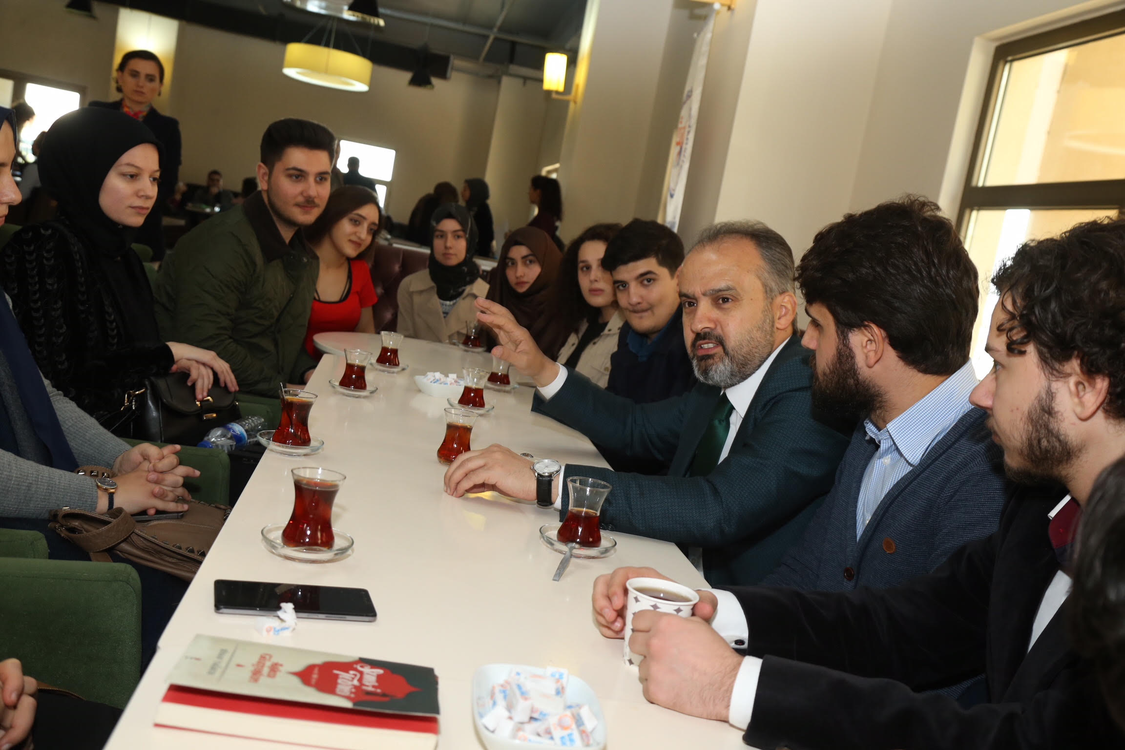 Büyükşehir Belediye Başkanı Alinur Aktaş, BTÜ Rektörü Prof. Dr. Arif Karademir’le bir araya geldi. Yapılan ve devam eden çalışmalar hakkında Rektör Karademir’den bilgiler alan Başkan Aktaş, daha sonra öğrencilerle buluştu. Üniversitelilerle birlikte okulun yemekhanesinde yemek yiyen Başkan Aktaş, ardından kantinde gençlerle sohbet etti. Burada öğrencilerin taleplerini dinleyen Başkan Aktaş, “3 milyon kişinin yaşadığı bir şehirde toplu ulaşım başta olmak üzere elbette sıkıntılar olabilir. Bizler bunları en aza indirmek için uğraşıyoruz. Öğrencilerin eğitim ve öğretim hayatlarını kolaylaştıracak hamleler yapıyoruz. Üniversite ziyaretimizde bu konuda güzel bilgiler aldık. Sosyal faaliyetlere katılmanız yönünde sizlere gerekli desteği vereceğiz. BTÜ’den bu anlamda ciddi bir sinerji aldım. Burada hareketlilik ve heyecan buldum” dedi.