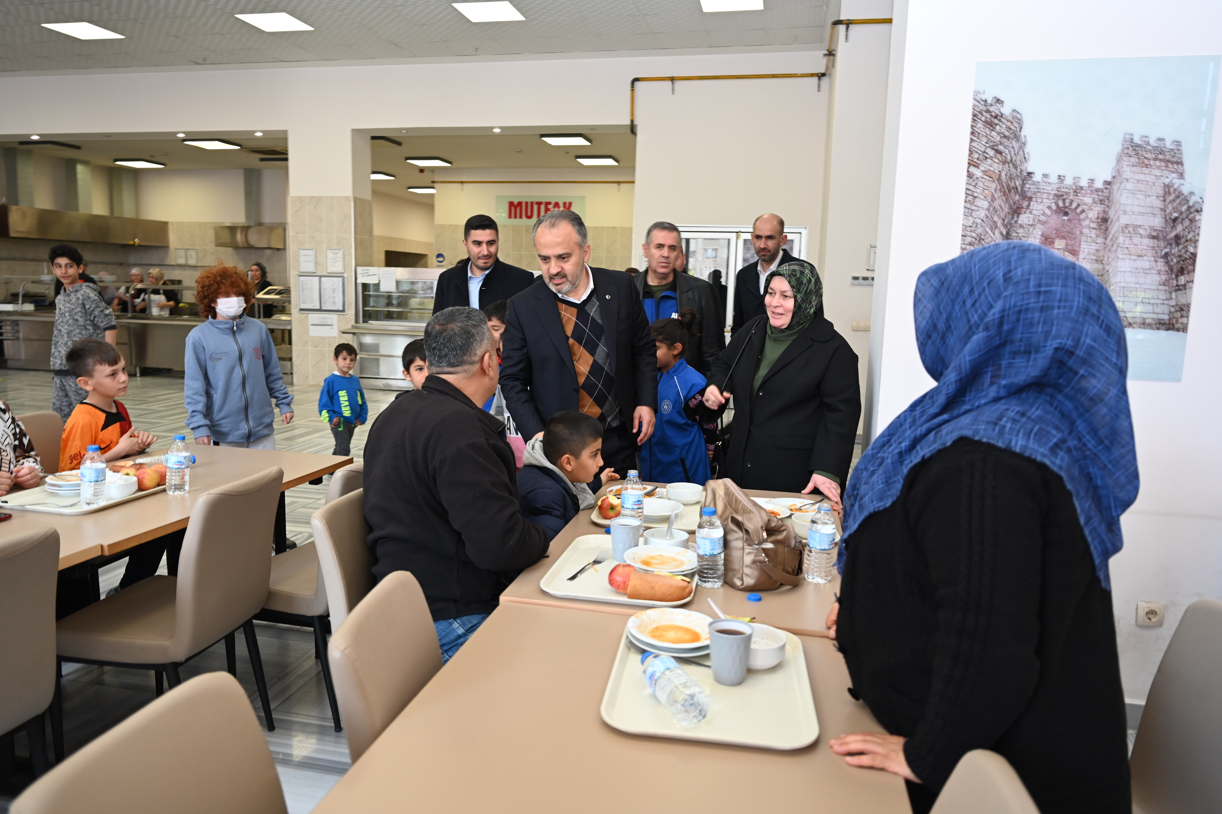 Şehirlerin tekrar ayağa kaldırılmasıyla buraya getirilen vatandaşların tekrar memleketlerine döneceğini anlatan Başkan Aktaş, “O bölgenin de her zaman hareketli olması ve nüfusunun eskisi gibi olması gerekir. Hayata tutunarak Allah’tan güç alabilmek önemlidir. İnşallah bundan sonra kaçak binalara izin vermeyeceğiz. Binalarımız daha sağlam olacaktır. El birliğiyle bu sıkıntıları aşacağız. Devletimiz güçlü bir devlet. Tüm birimlerimiz seferber oldu. Buradaki ortam elbette evinizi gibi olmayacaktır. Ama kalınan odalara ve çıkarılan yemeklere dikkat ediliyor. Kardeşlik Mağazası’na uğrayarak ihtiyaçlarınızı ücretsiz karşılayabilirsiniz. Birer fotoğrafla başvurarak da ulaşımdan ücretsiz yararlanabilirsiniz. Diğer taraftan AFAD koordinasyonunda buradan o bölgeye malzemeler gönderildi. Tüm imkanlarımızı seferber ediyoruz. Tekrar hepinize geçmiş olsun. Rabbim zorunuzu kolay kılsın” diye konuştu.