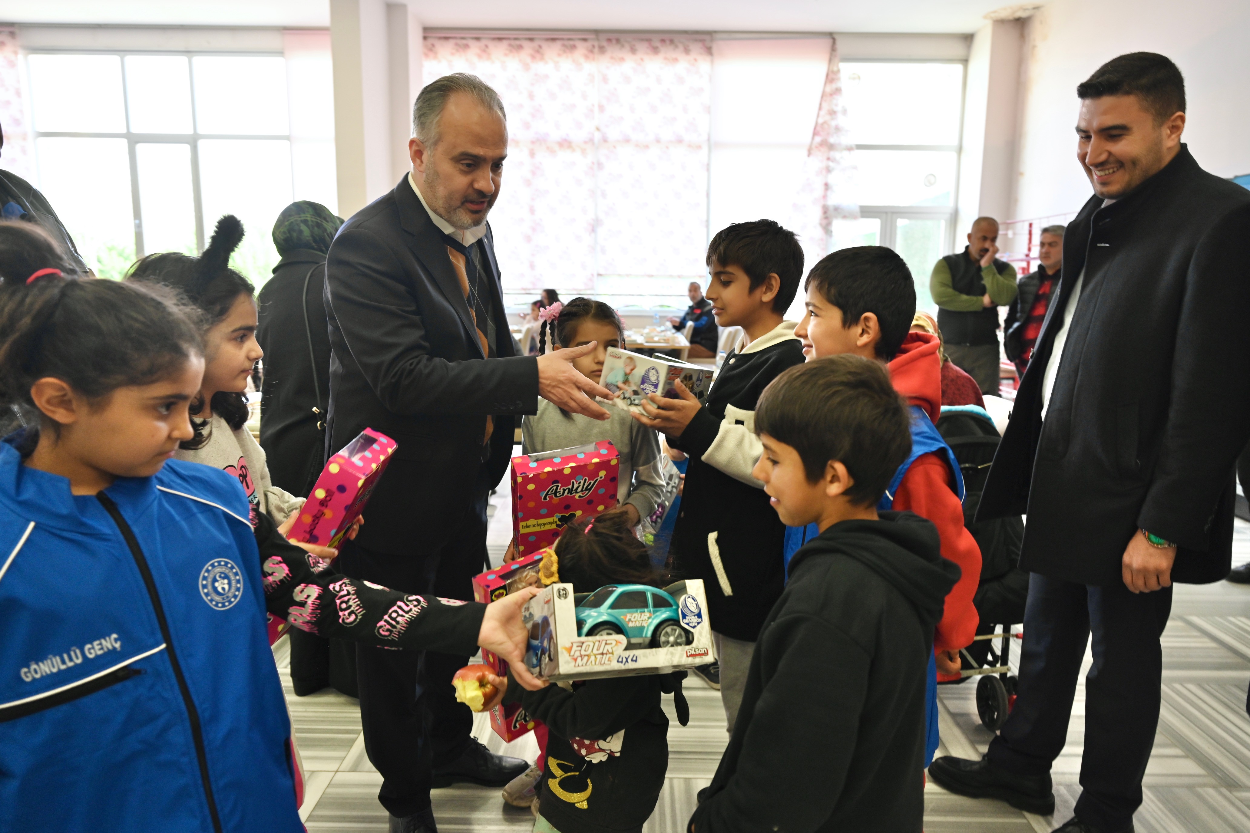 BURSA – Bursa Büyükşehir Belediye Başkanı Alinur Aktaş, deprem bölgesinden Bursa'ya gelerek Gençlik ve Spor Bakanlığı’na bağlı yurtlara yerleştirilen depremzedeleri ziyaret etti. Deprem felaketini yaşayan vatandaşlarla sohbet eden Başkan Alinur Aktaş, çocuklara da oyuncak dağıtarak yüzünü güldürdü.