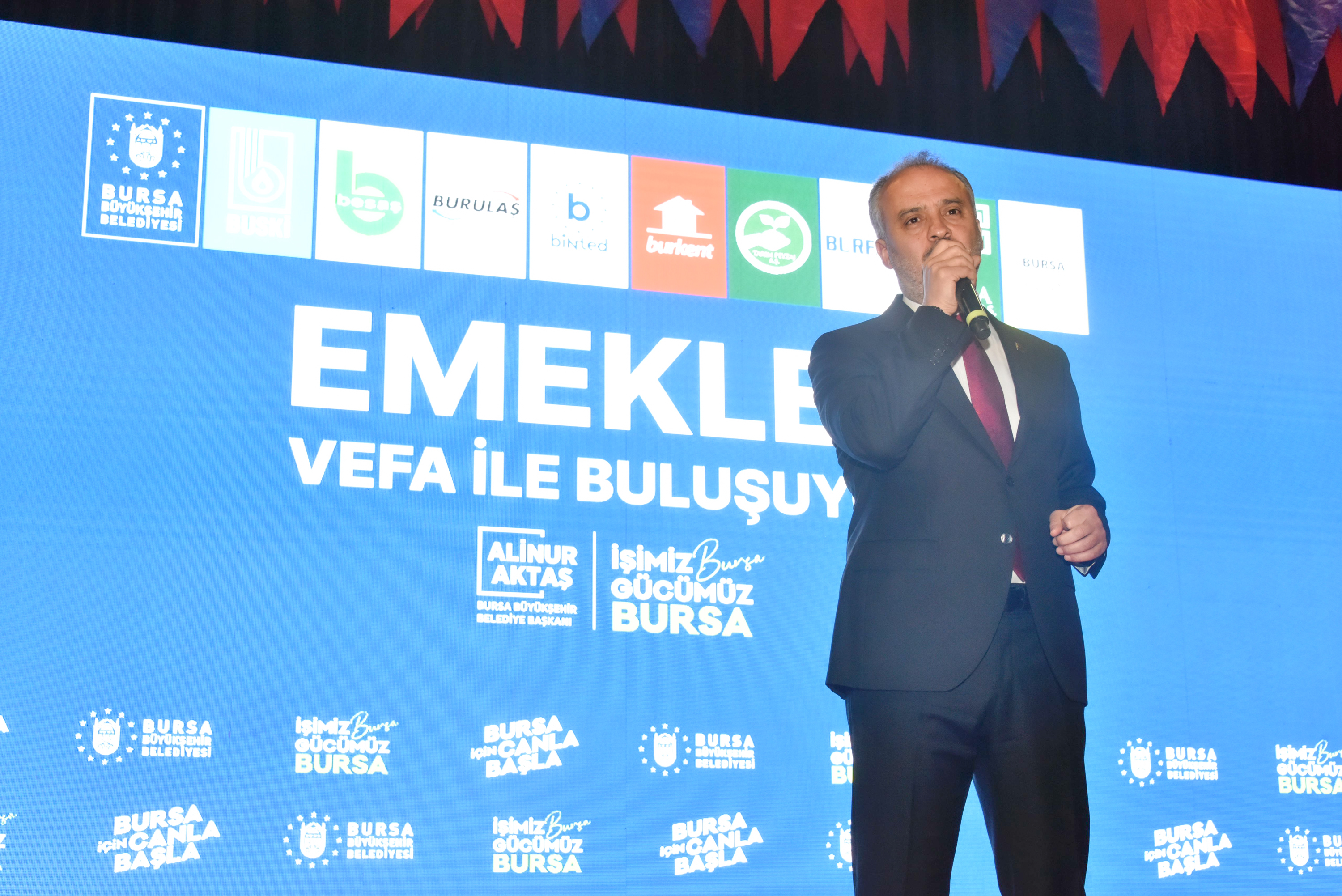 Bursa Büyükşehir Belediyesi ve iştirak şirketleri çatışında yıllarca çalışıp emekli olan personel ve aileleri, Büyükşehir Belediye Başkanı Alinur Aktaş ile vefa gecesinde biraraya geldi. Atatürk Kongre Kültür Merkezi Fuaye Alanı’ndaki programa, şehrin her bir köşesinde izi, emeği ve alın teri bulunan emekli personeller yoğun ilgi gösterdi. Eski mesai arkadaşlarıyla tekrar buluşma imkanı bulan emekli personeller, geçmiş günleri yad etme imkanı da buldu.