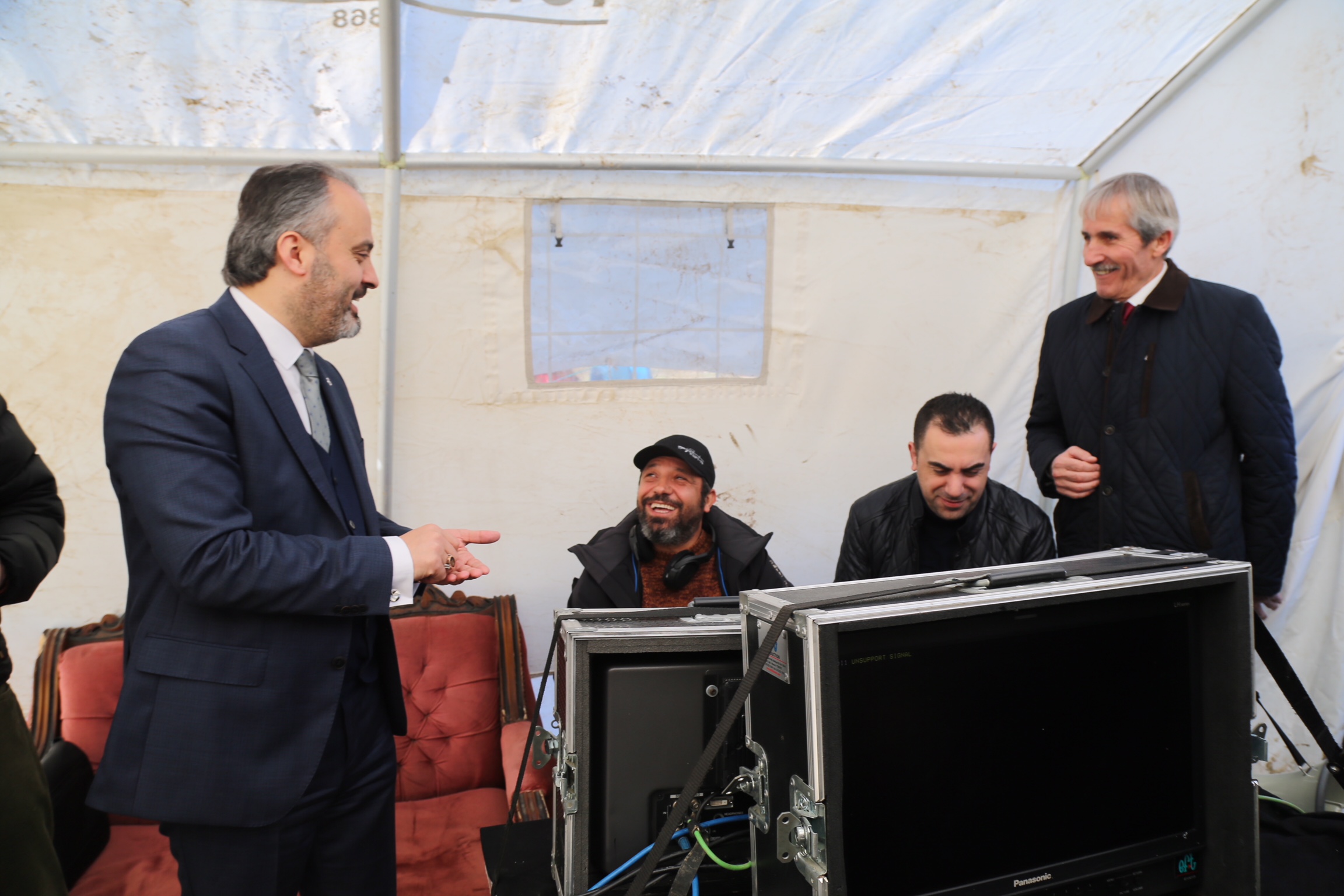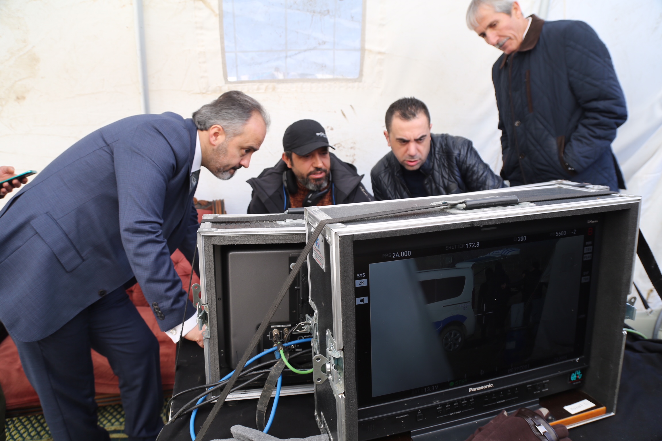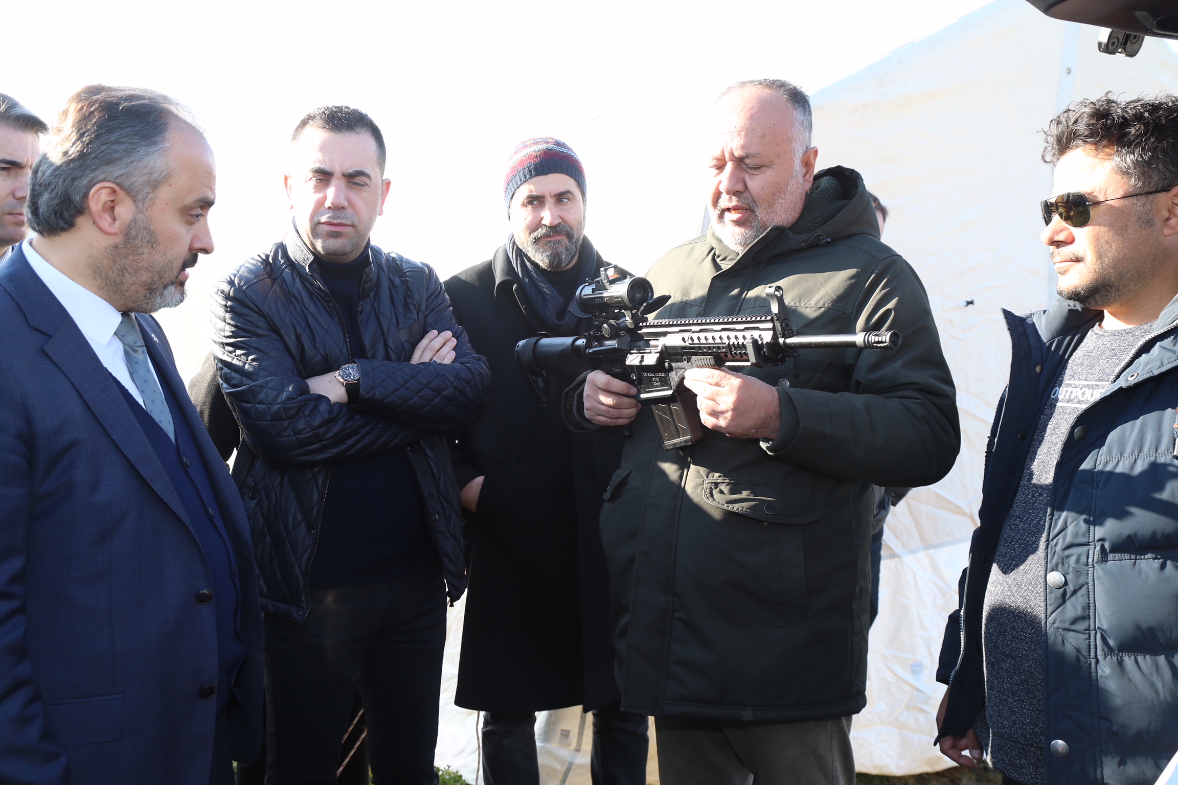 -YÖNETMEN ERHAN BAYTİMUR VE OYUNCULARLA SOHBET EDİP, ÇEKİMLERİN BİR BÖLÜMÜNÜ İZLEYEN BAŞKAN AKTAŞ, İLK KEZ BU FİLMDE KULLANILAN MİLLİ PİYADE TÜFEĞİ MPT-76’YI DA İNCELEME FIRSATI BULDU.